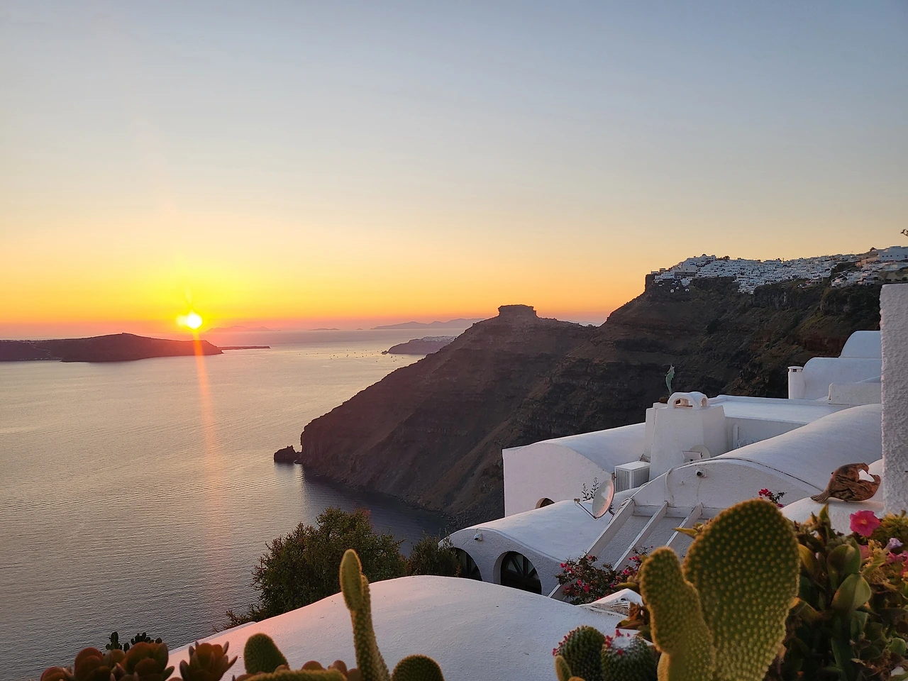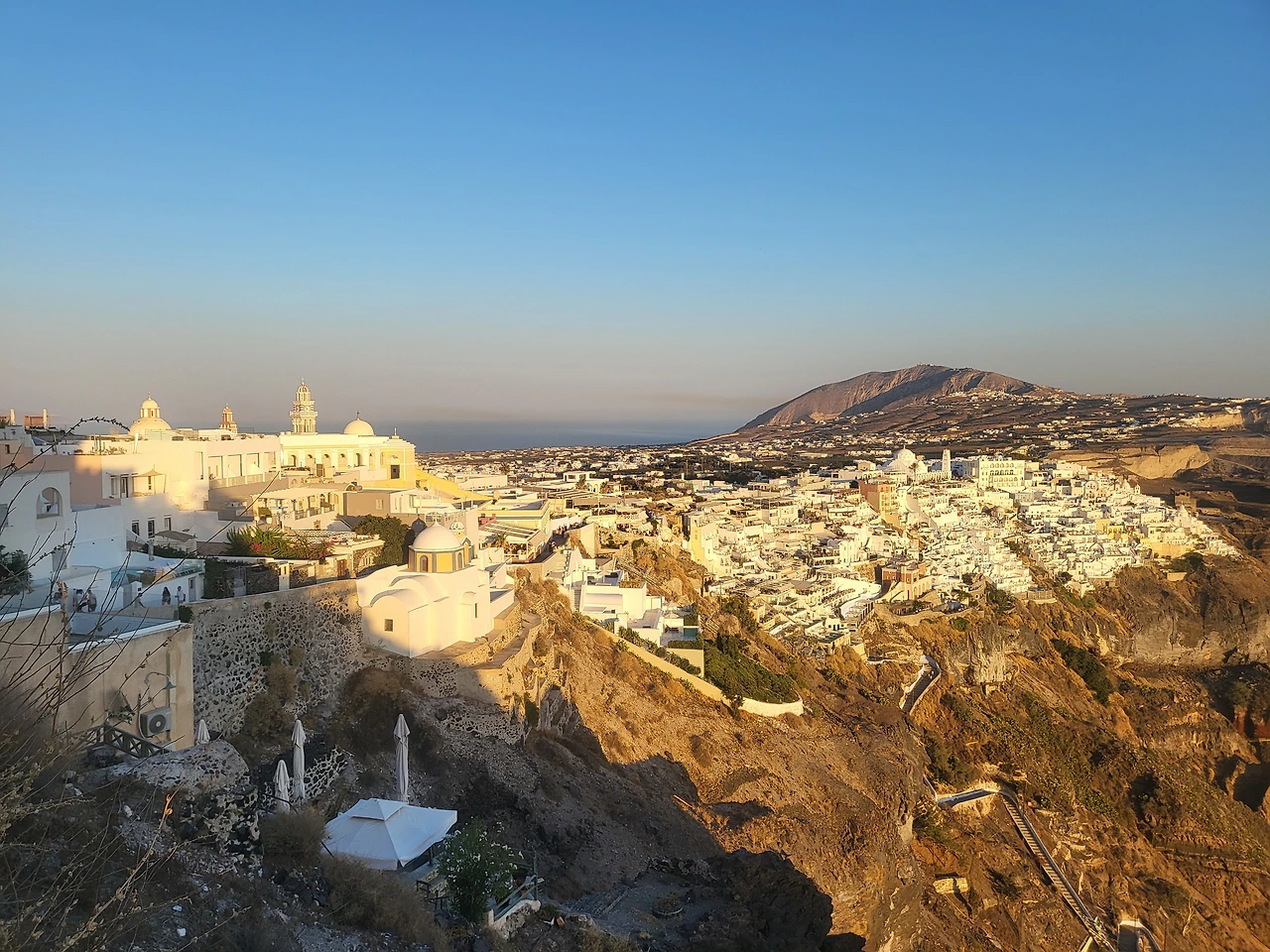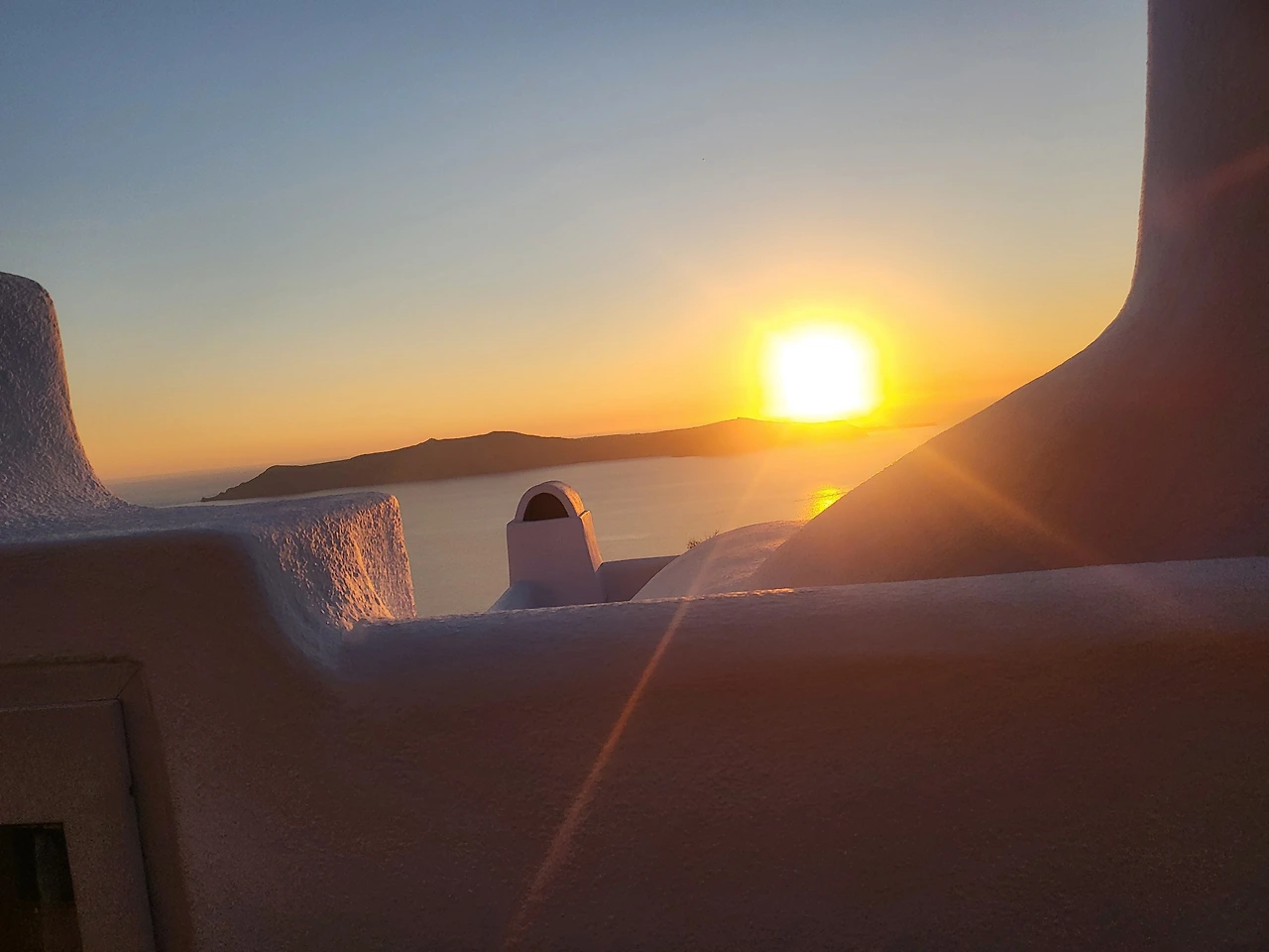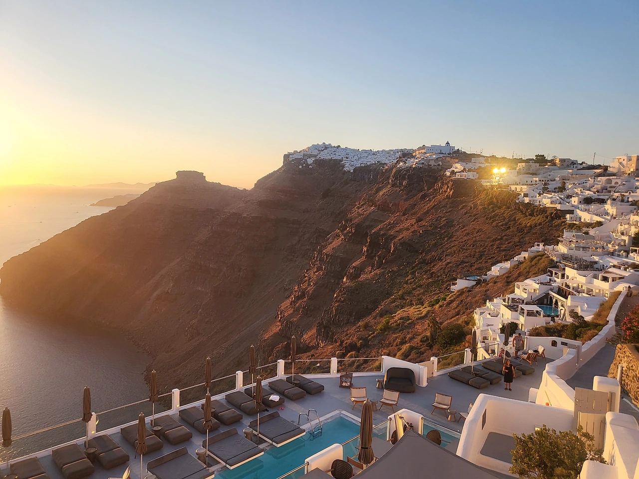 서쪽 전망대는 약간 널찍한 공간으로 일몰을 아름답게 볼 수 있다. 전망대 아래 위쪽은 모두 프라이빗 풀이 있는 숙소이다. 그러니까 이쪽에 숙소를 잡으면 숙소에서 일몰을 볼 수 있다는 것. 그러니 신혼여행으로 사람들이 산토리니를 그렇게 외치는 모양이다.