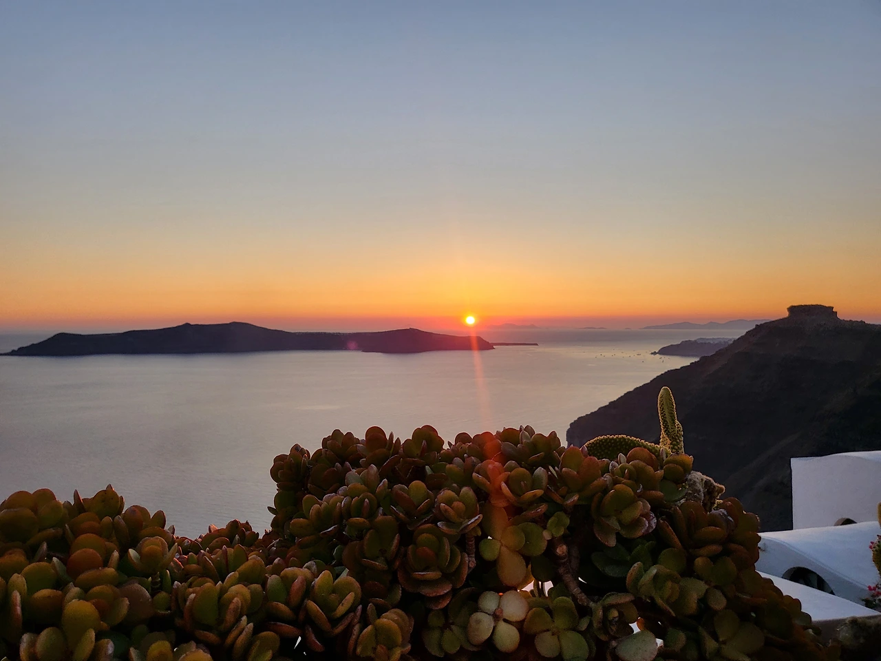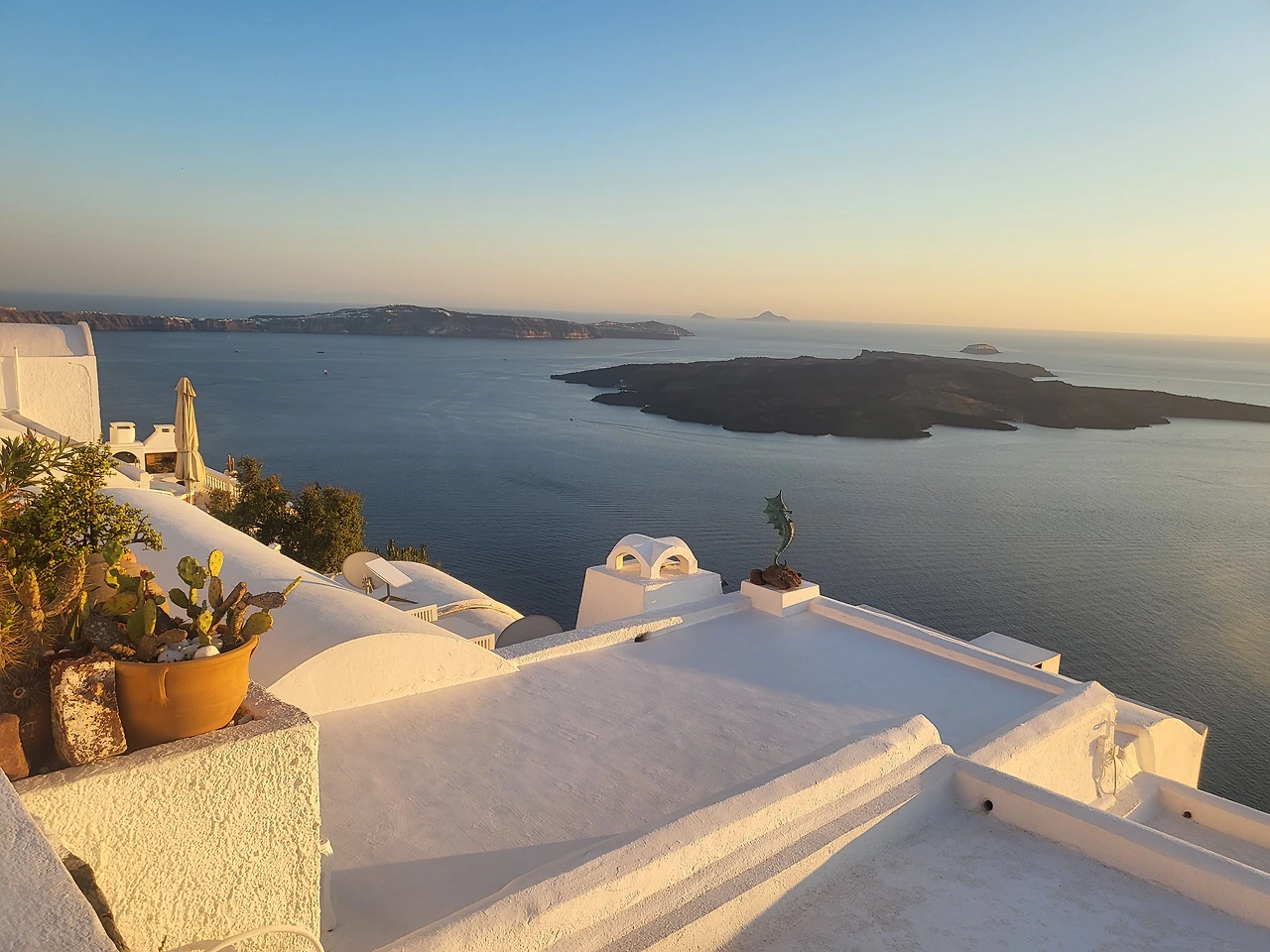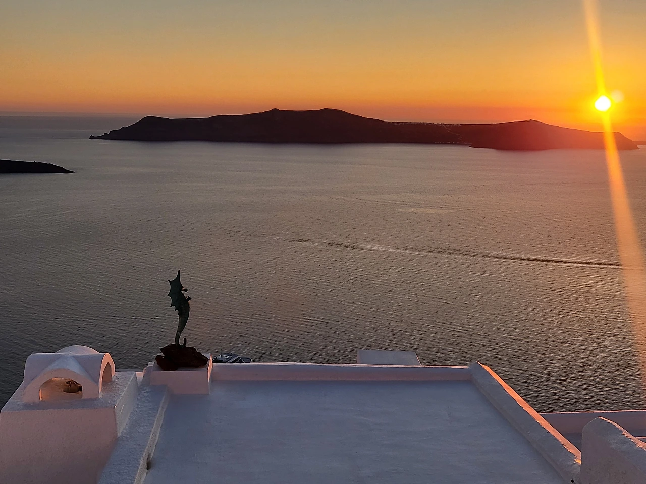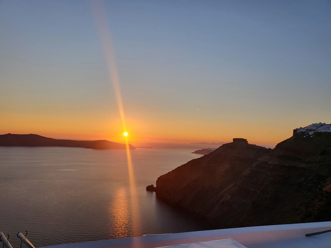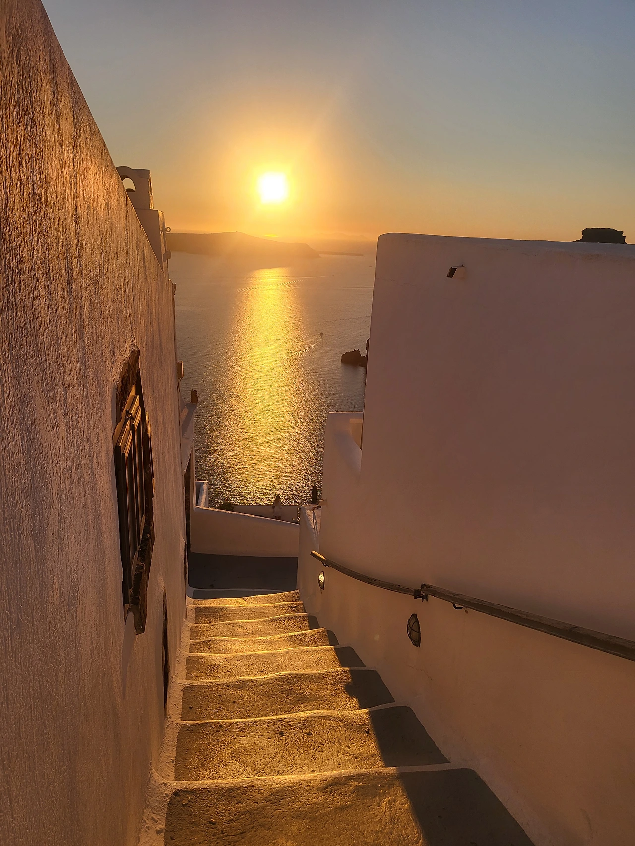 서쪽 전망대는 약간 널찍한 공간으로 일몰을 아름답게 볼 수 있다. 전망대 아래 위쪽은 모두 프라이빗 풀이 있는 숙소이다. 그러니까 이쪽에 숙소를 잡으면 숙소에서 일몰을 볼 수 있다는 것. 그러니 신혼여행으로 사람들이 산토리니를 그렇게 외치는 모양이다.