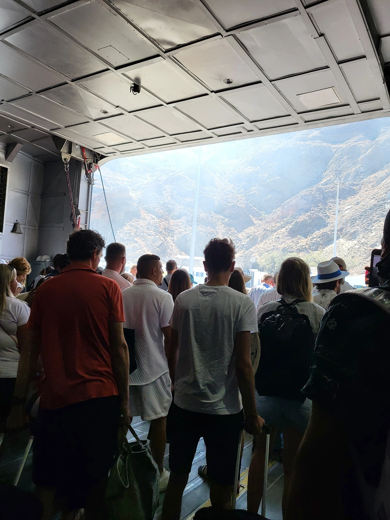 오전 8시 배를 타기 위해 7시에 숙소에서 택시를 타고 나왔다. 항구는 그리 멀지는 않지만 이른 아침부터 무거운 여행가방을 끌고 오기엔 멀다. 웹 체크인을 끝냈지만 확인 차 표를 보여주었더니 직원이 종이 티켓을 인쇄해 준다. 이 많은 사람들이 배를 타고 그중 다수가 산토리니에서 내린다. 배 뒤쪽이 열리고 사람들이 우르르 몰려 타면서 각자의 여행 가방을 지정된 곳에 두고 자리를 찾아간다. 나도 그렇게 그리스에서의 첫 번째 페리를 탔다.