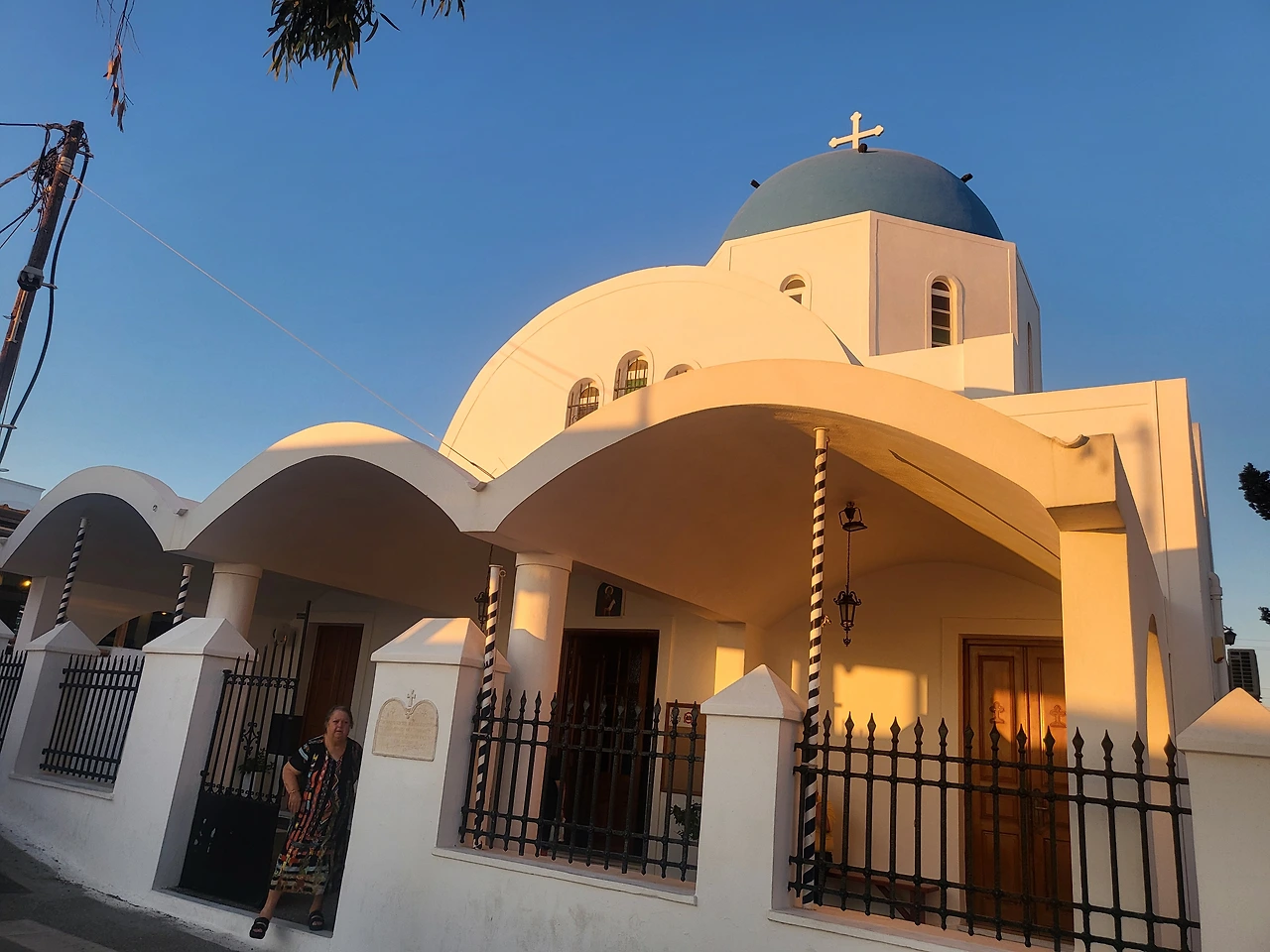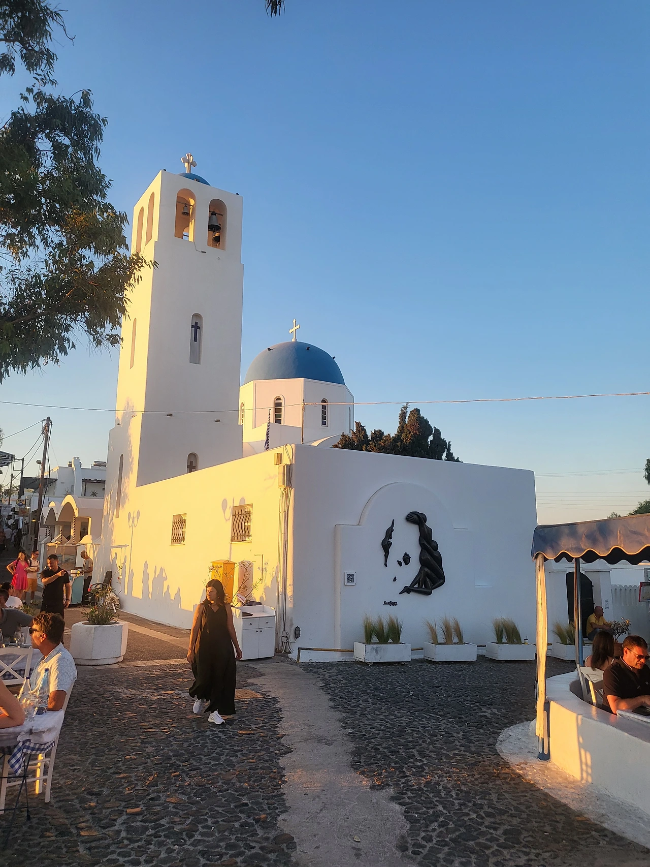 햇빛이 조금씩 부드러워지기 시작했다. 아직 해가 지려면 삼십 여분 정도 기다려야 하지만 사람들은 속속 이곳으로 몰려들었다. 시간이 조금 남아서 주변을 잠깐 산책했다. 하얀 벽에 파란 돔이 있는 교회는 정말 사진에서 금방 튀어나온 것만 같았다.