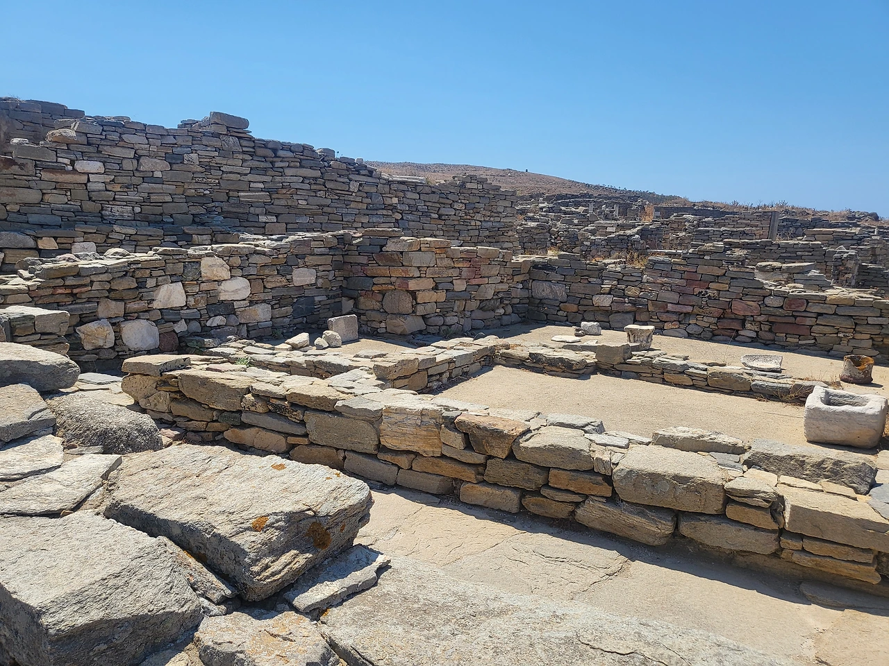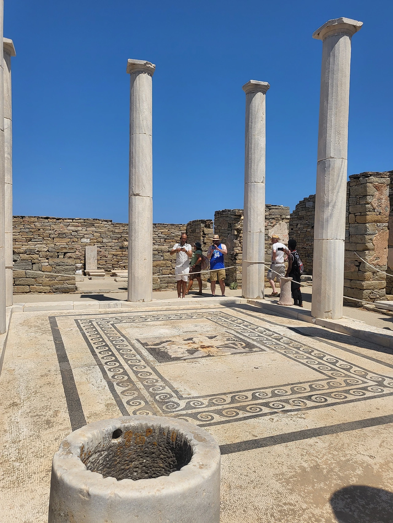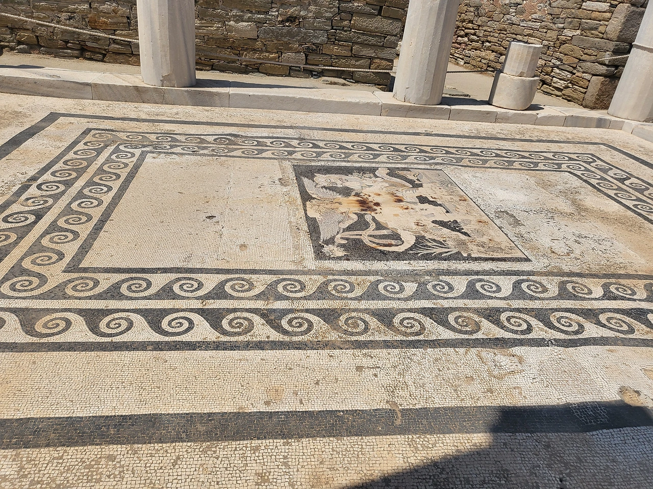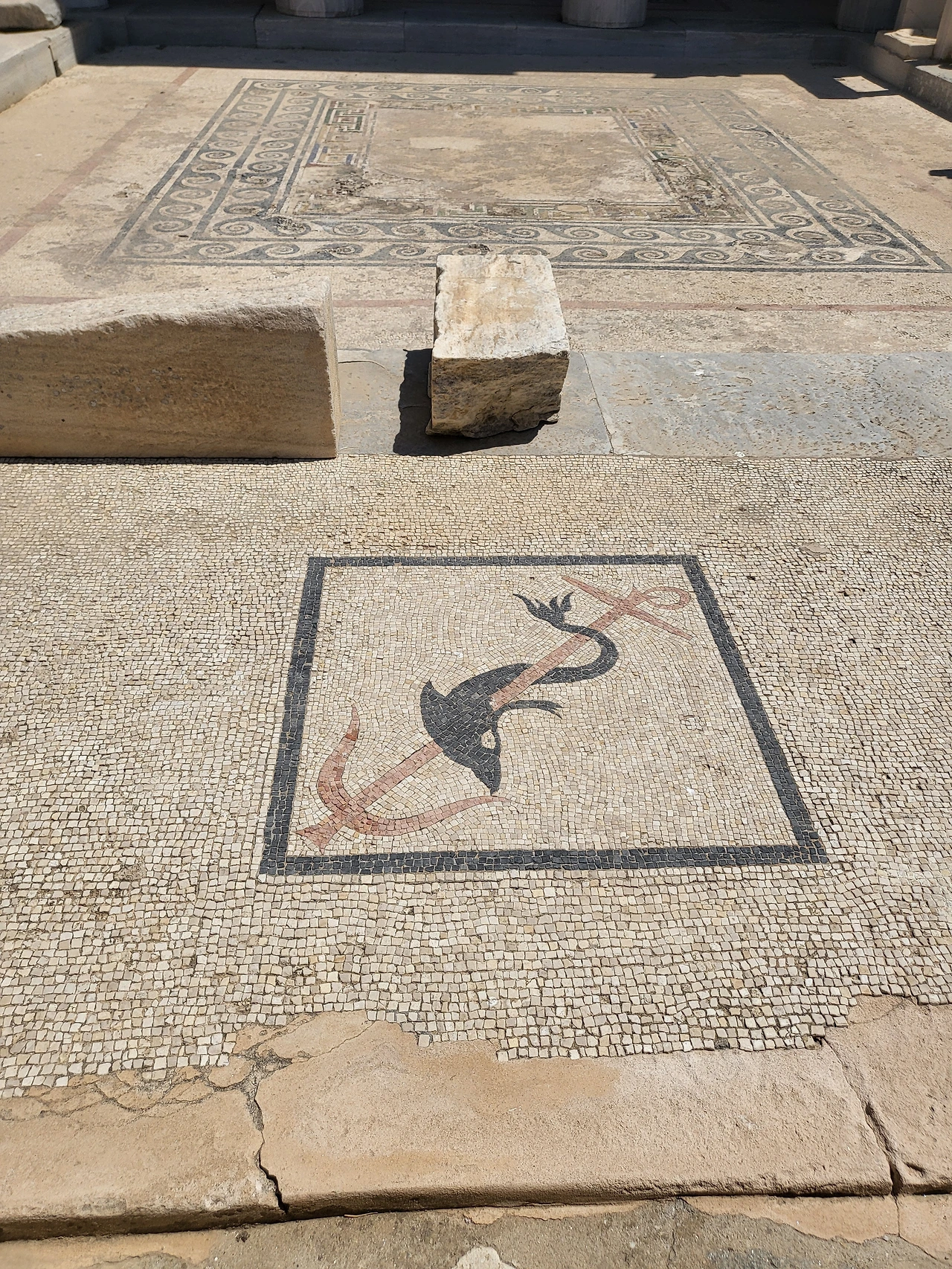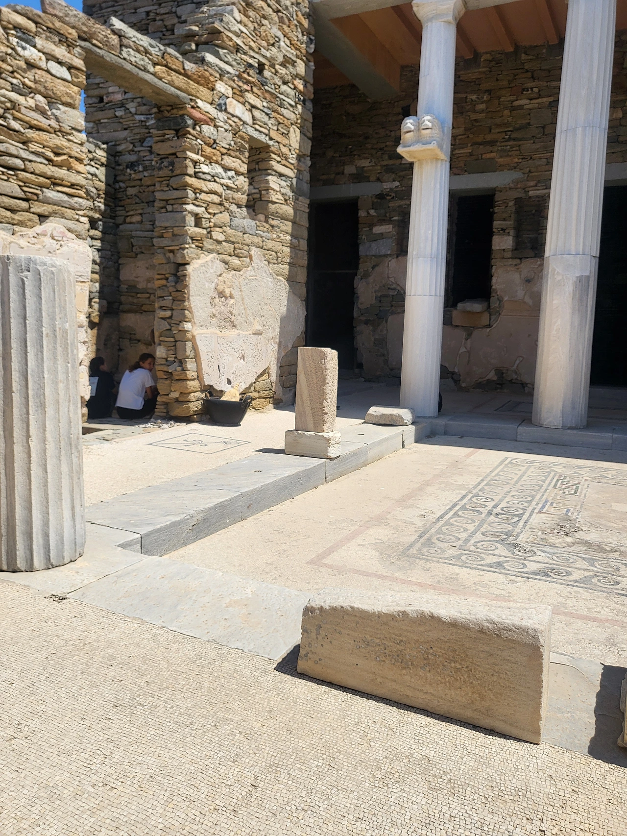고고학 박물관을 나와 이제 반대편으로 간다. 이쪽엔 이곳에 살았던 사람들의 거주지 유적, 디오니소스 극장과 섬을 조망할 수 있는 섬 정상이 있는데, 정상에 다녀오기엔 시간이 빠듯할 듯하여 극장까지만 다녀오기로 했다. 주거지 유적에는 예쁜 모자이크가 남아있기도 해서 보는 즐거움이 있다.