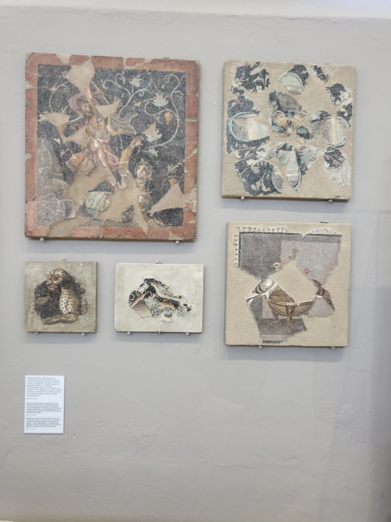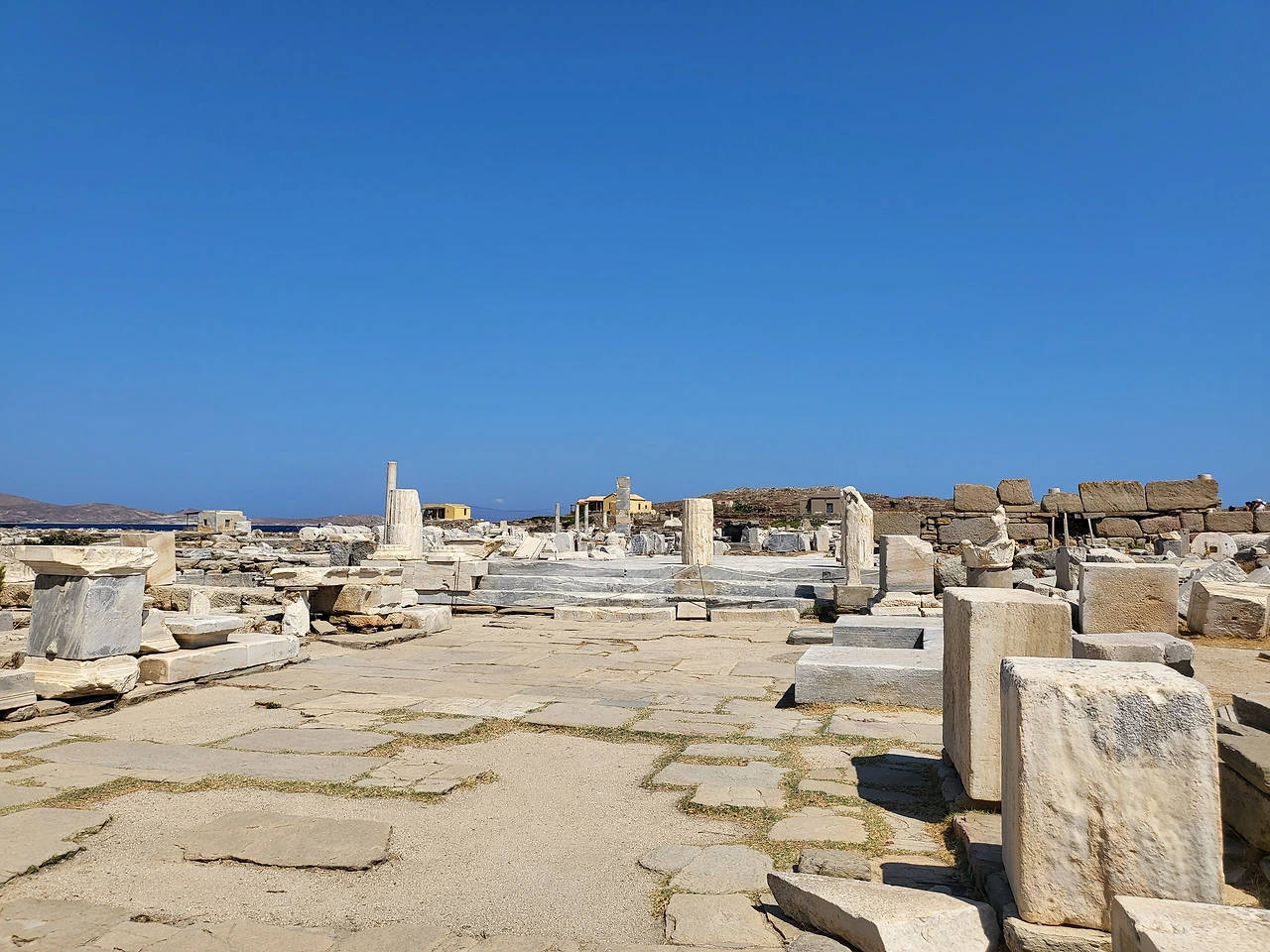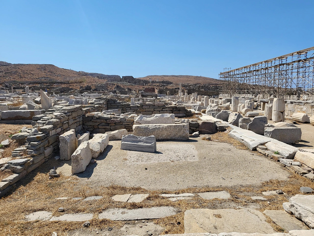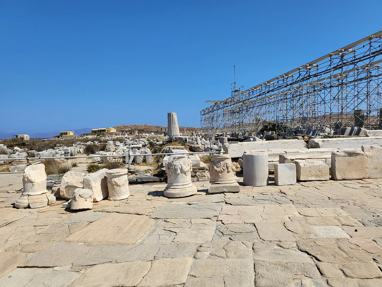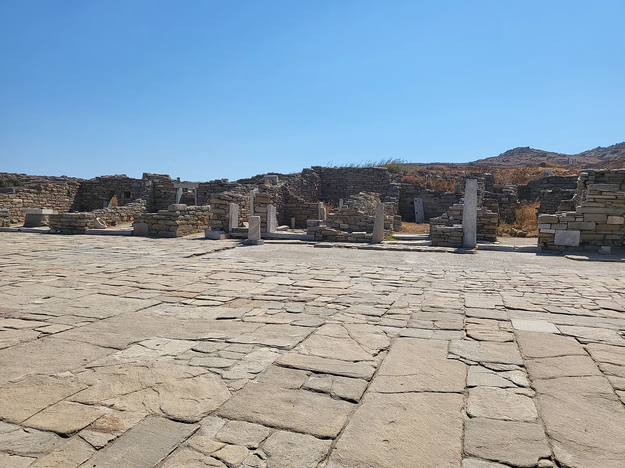 고고학 박물관을 나와 이제 반대편으로 간다. 이쪽엔 이곳에 살았던 사람들의 거주지 유적, 디오니소스 극장과 섬을 조망할 수 있는 섬 정상이 있는데, 정상에 다녀오기엔 시간이 빠듯할 듯하여 극장까지만 다녀오기로 했다. 주거지 유적에는 예쁜 모자이크가 남아있기도 해서 보는 즐거움이 있다.