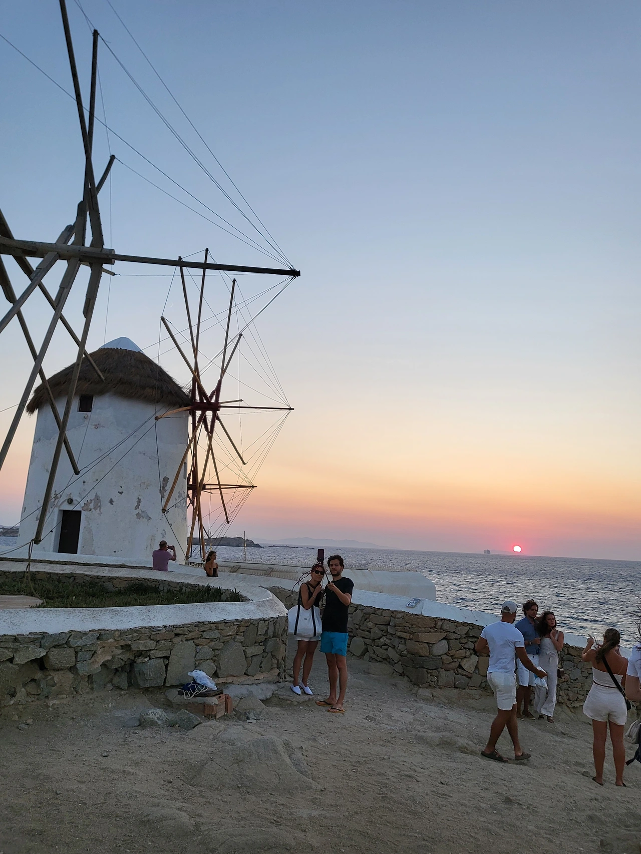 해질 무렵이 되어간다. 풍차 언덕에서 바라보는 일몰이 그렇게 멋지다고 하니 그리로 가보는 걸로. 벌써 많은 이들이 일몰을 보기 위해 모여들고 있었다. 바람은 세찼지만 여름 바닷바람이라 적당히 시원하고 좋았다. 그리스의 여름 일몰은 언제 어느 곳에서 보아도 환상적이다. 풍차와 함께 한 석양은 미코노스의 마지막을 장식하기에 딱 좋은 풍경이었다. 또 언제 즐길지 모를 풍경을 한참이나 눈에 담아본다. 어린 왕자가 해지는 풍경을 좋아한 것은 다 이유가 있었다.