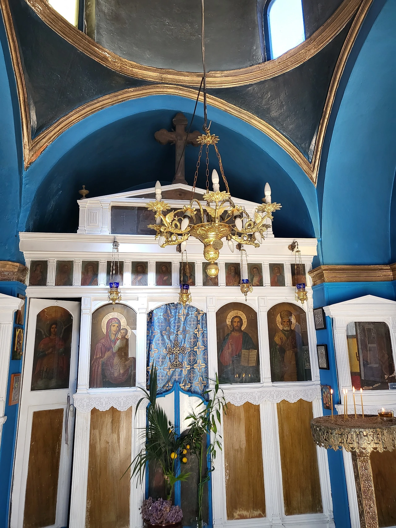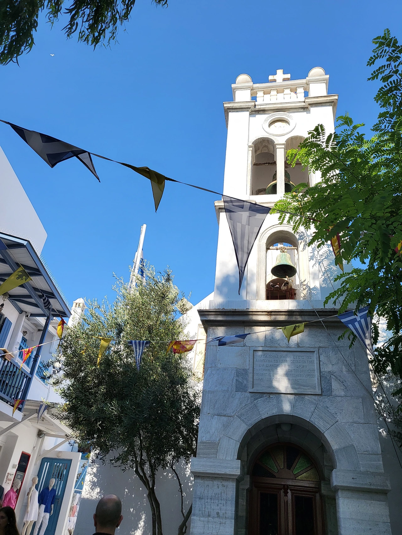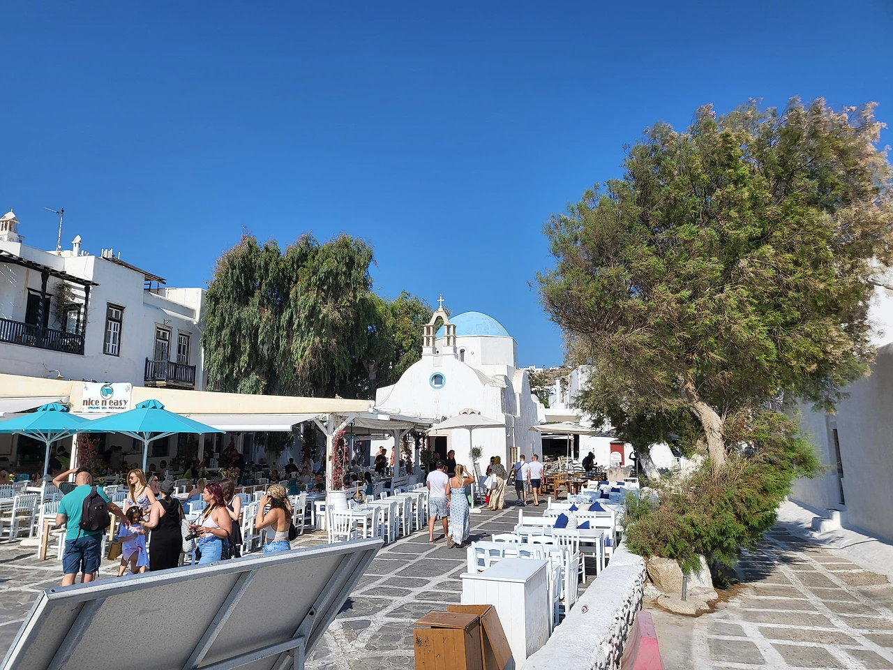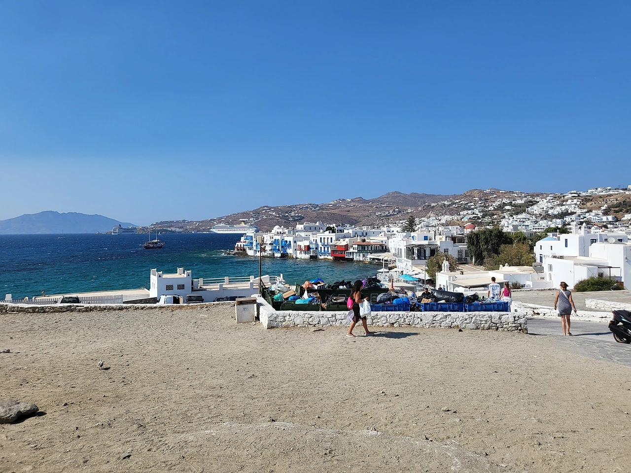 이제 미코노스 구시가지 탐방. 항구 입구에 있는 푸른 돔이 있는 교회의 내부에도 들어가 보고, 구시가지 유적지의 하얀 교회를 지나 보았고, 어쩌다 보니 리틀 베네치아도 지나고 있었다. 저 언덕 위로 미코노스의 풍차들이 보였다.