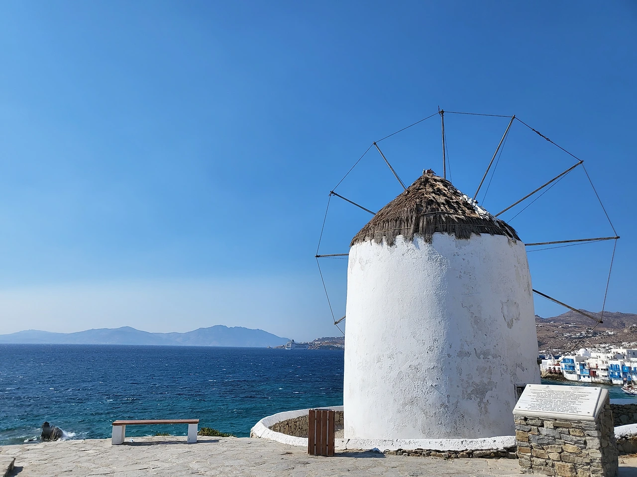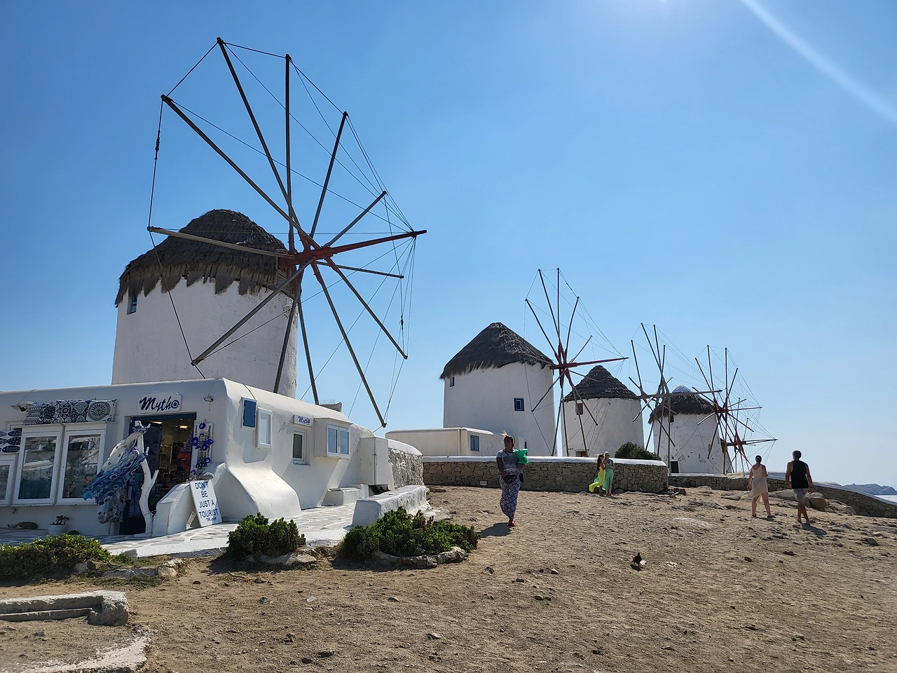 델로스 섬을 다녀오고 나서 미코노스는 그저 산책하는 곳이 되었다. 사실 그렇게 골목골목 산책하는 것이 미코노스 구시가지에서 할 수 있는 가장 재미있는 일일 것이다. 물론 파라다이스 비치라든가 섬의 다른 해변을 찾아가 즐거운 시간을 보내는 것도 좋겠지만, 내가 파티를 좋아하거나 시끌벅적한 것을 즐기는 사람도 아니라서 그냥 목적 없이 걷는 이 산책이 나쁘지는 않다. 그렇게 걷다 보니 어느새 풍차 아래에 도착했다.