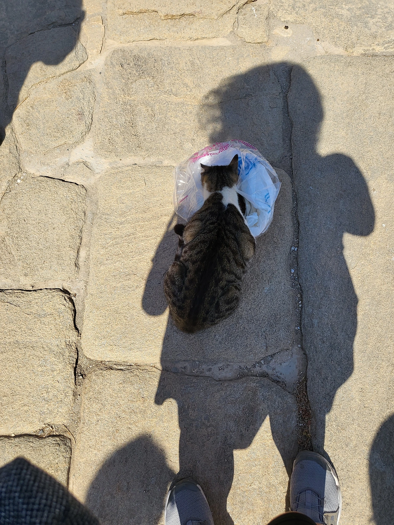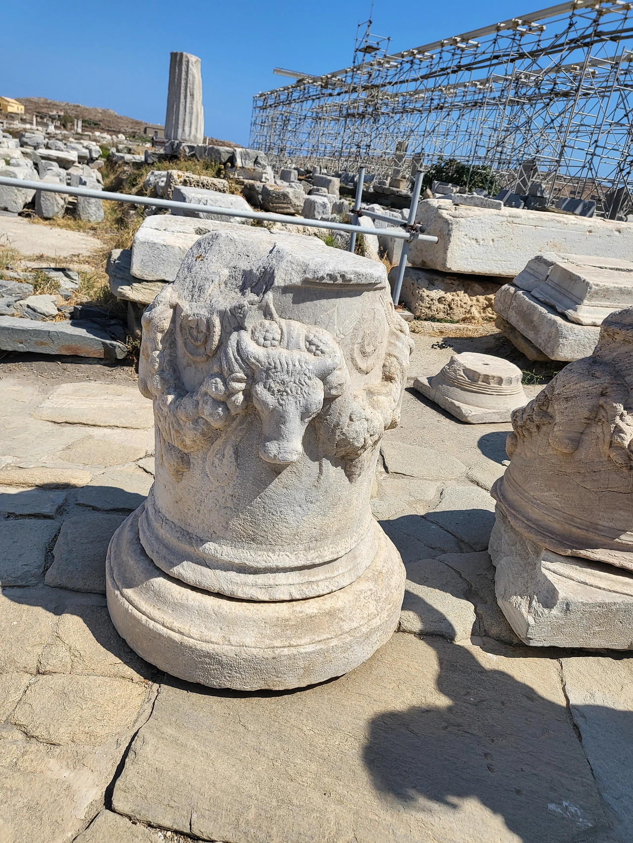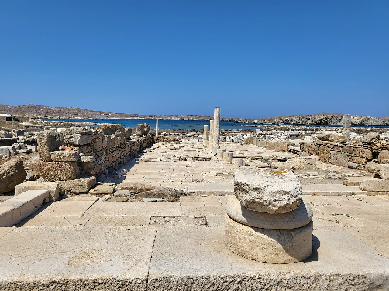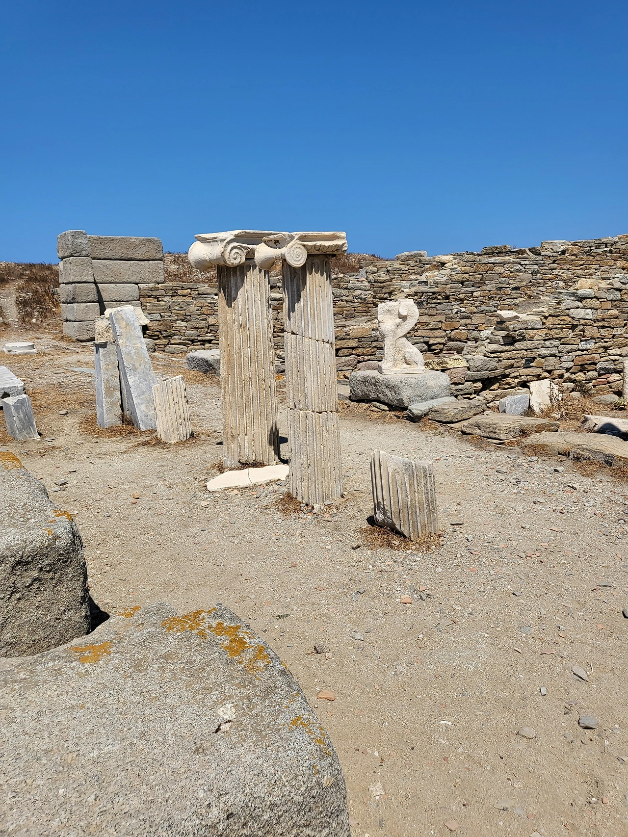 지금은 폐허로 남은 유적밖에 없지만 남아있는 기둥들과 터만 보아도 이곳이 얼마나 번성한 도시였는지 상상이 된다. 기본적인 설명을 듣는 동안 어디선가 고양이 한 마리가 가이드에게로 온다. 익숙한 듯 가이드는 고양이 간식을 주고 설명을 계속한다. 아고라 유적에서 둘러보는 델로스 섬은 황폐하지만 매력적이다.