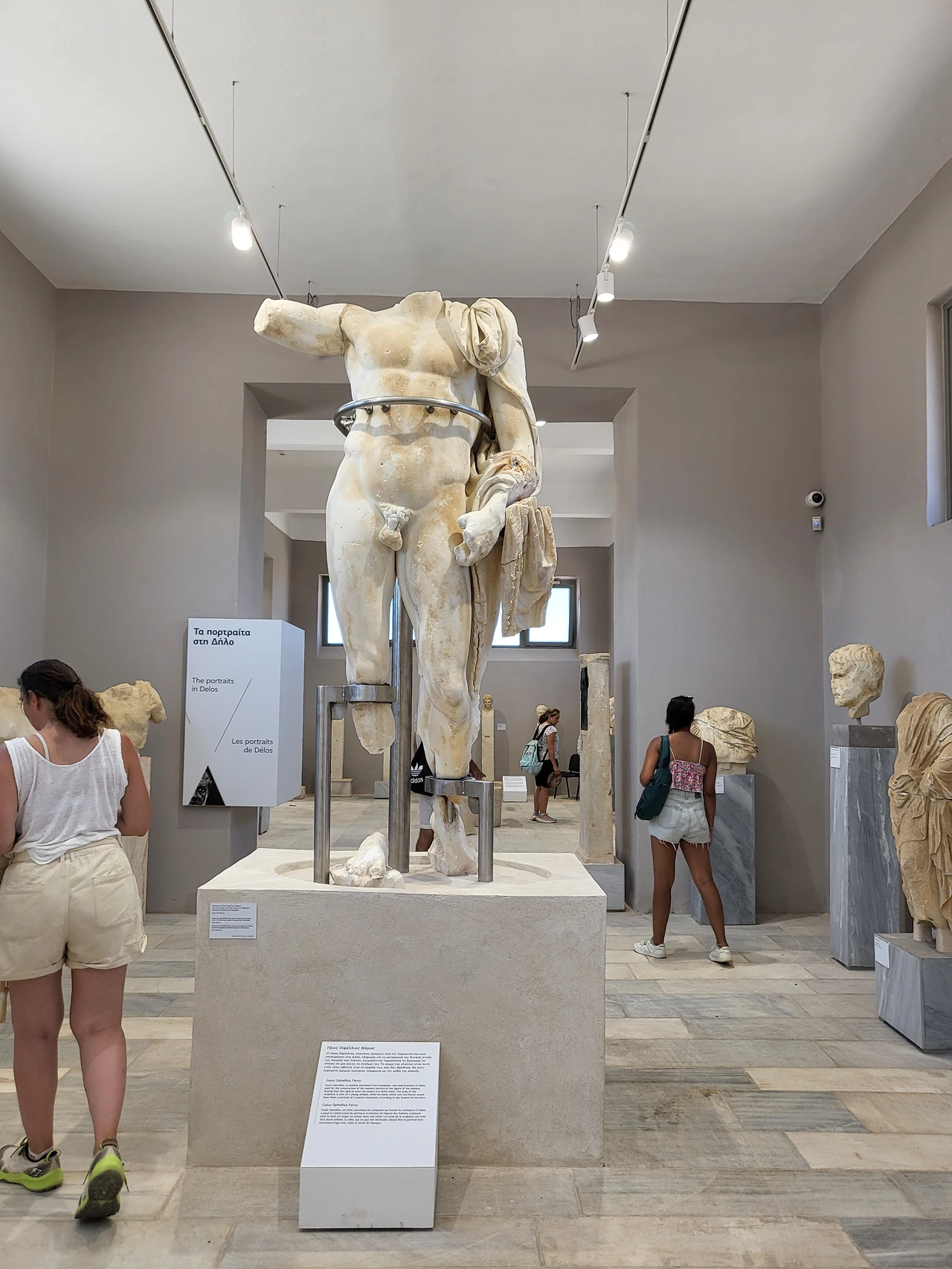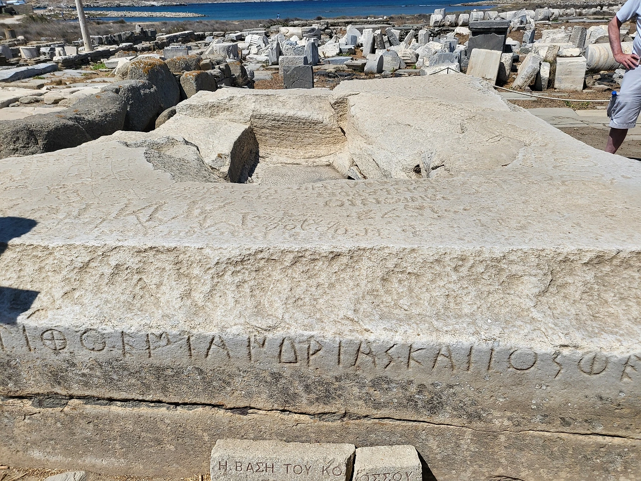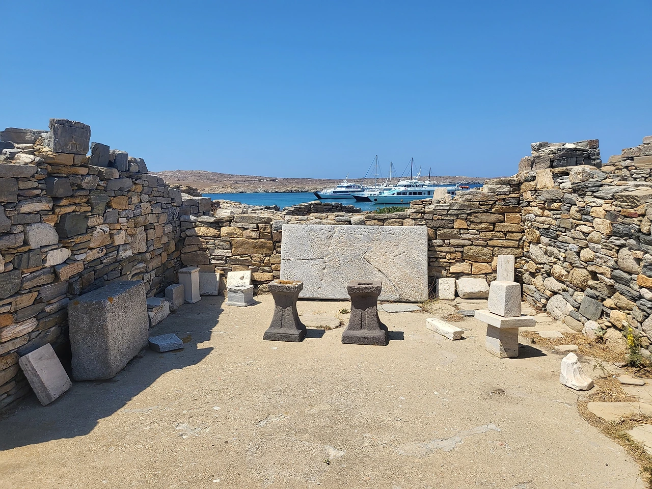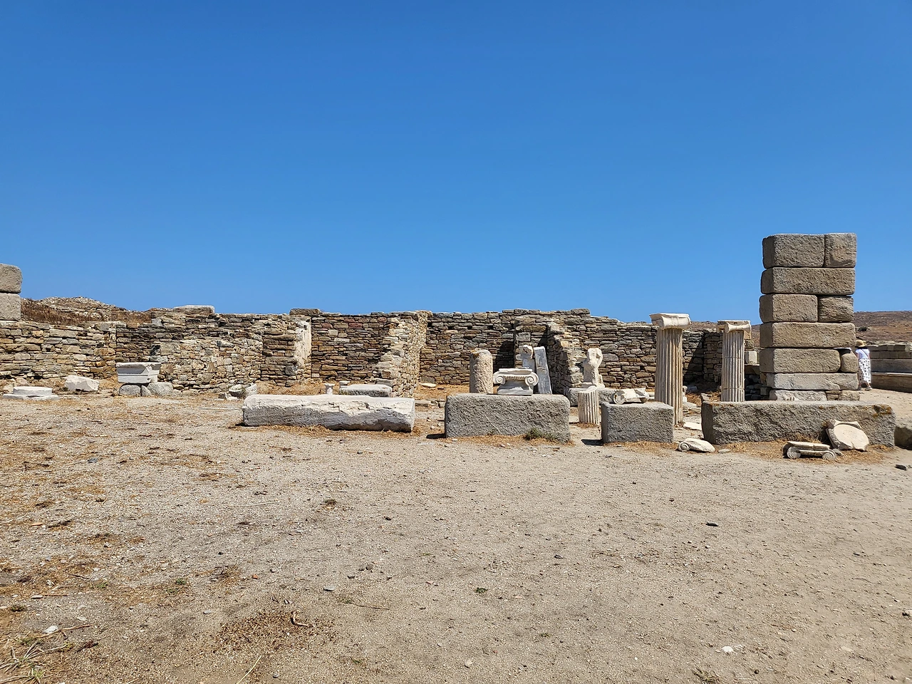 약 이십 여분 후 델로스 섬에 도착한다. 델로스 동맹의 동맹자금창고로 이 섬이 사용된 이유는 이곳이 아폴론신과 아르테미스 여신의 탄생지로 그리스에서 가장 신성한 곳으로 여겨진 탓이다. 그래서 기원전 5세기 경에는 이 섬에서의 출생과 사망이 금지되었다고 한다. 로마 제국 시대에 델로스는 자유무역항으로 선포되면서 세계적 무역도시로 성장했다고 한다. 델로스에는 당시 세계에서 가장 큰 규모의 노예 시장이 세워졌었고 엄청나게 번영했었던 것으로 알려져 있다. 그러나 지금은 아무도 살지 않는 무인도에 수원지도 없는 섬이다.