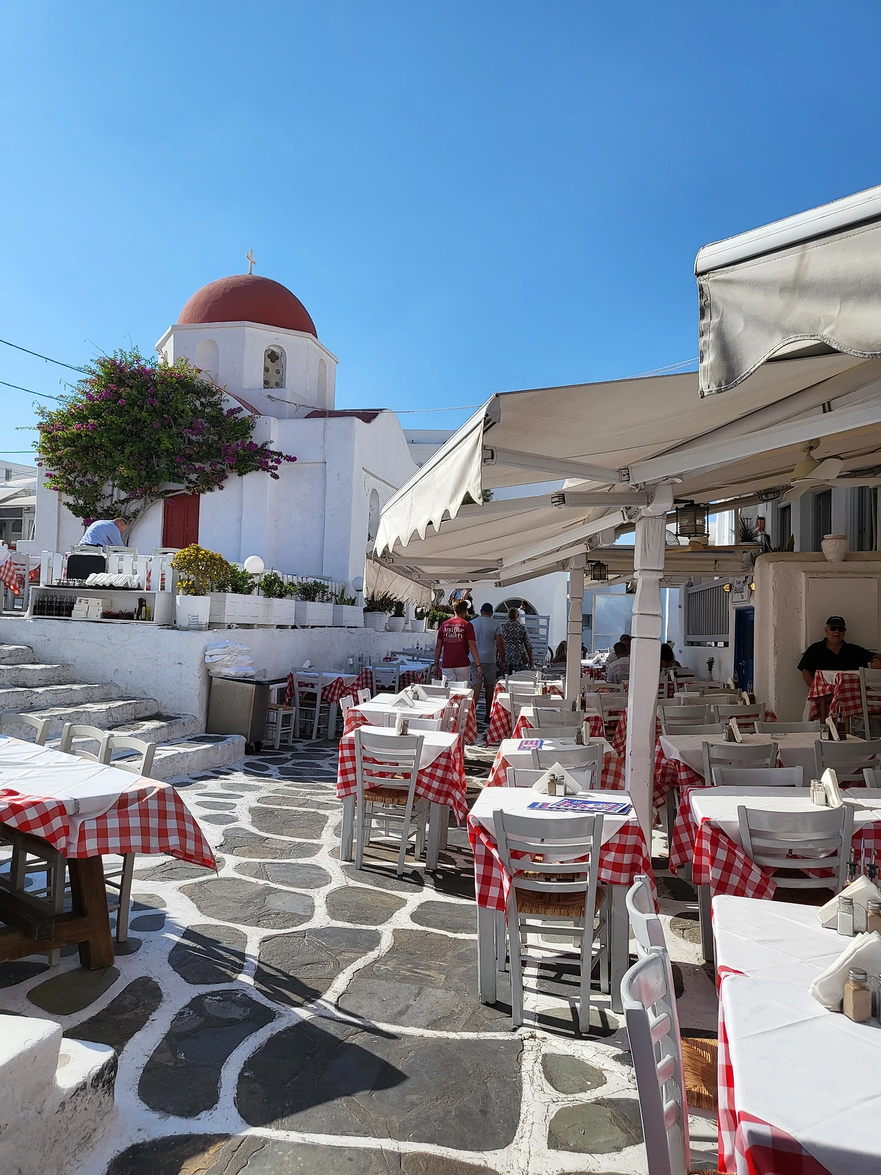 배를 타고 미코노스로 귀환했다. 햇빛 아래를 돌아다녀서 그런지 배가 고프다. 항구 바로 앞, 구글 평점이 좋은 레스토랑으로 들어갔다.
