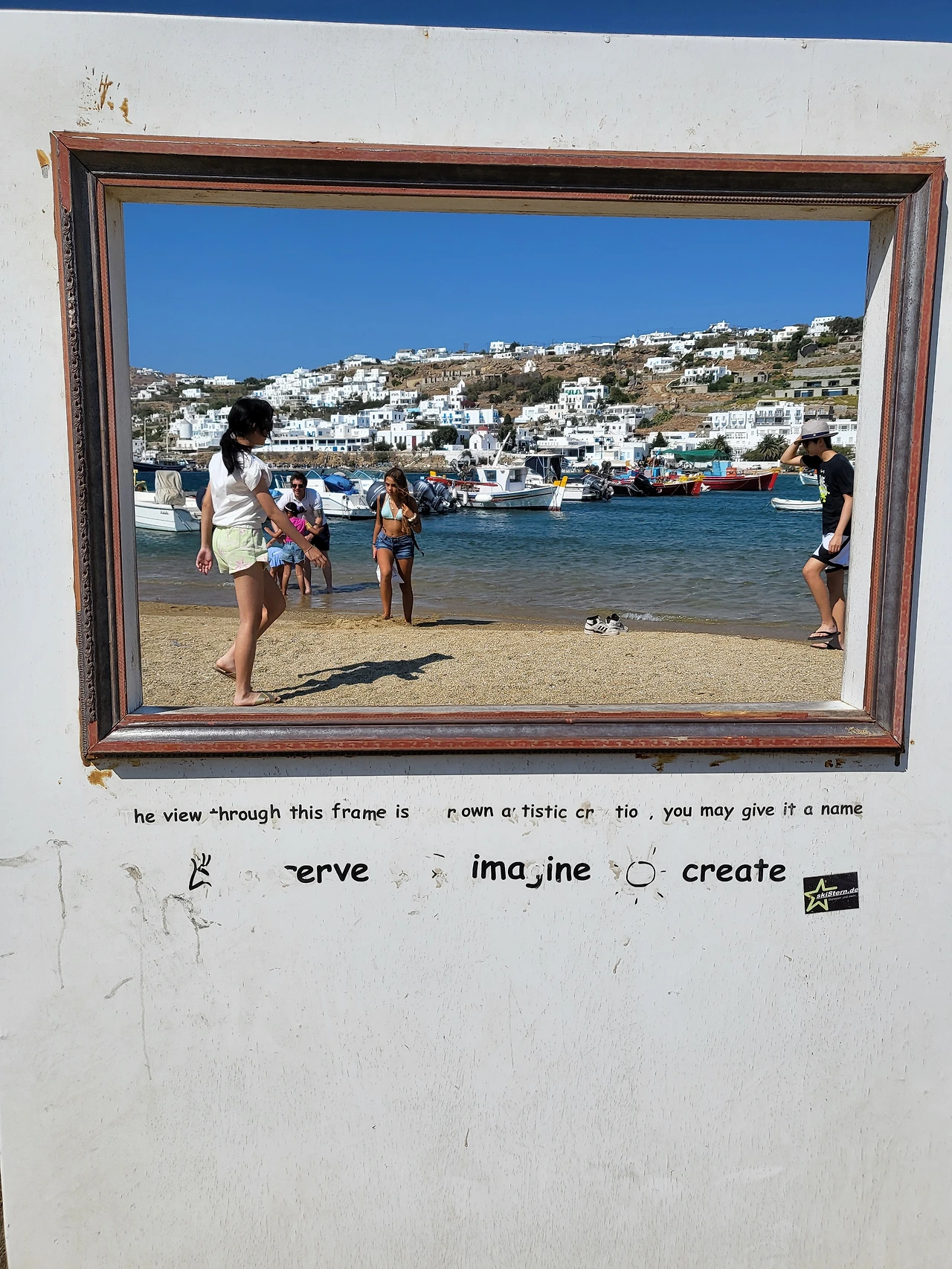 이번 그리스 여행 날씨는 매일이 맑음. 오늘도 파란 하늘 아래 반짝이는 햇살, 지중해의 바람이 느껴지는 아침이다. 어제 장 봐두었던 먹거리로 가볍게 아침 식사를 하고 오늘 일정 시작. 오늘은 태양신 아폴론과 달의 여신 아르테미스 이 두 쌍둥이 신들의 탄생지, 델로스 동맹의 동맹금고가 있었던, 지금은 무인도인 델로스 섬 투어를 떠난다. 투어 아닌 자유여행으로 배표만 끊고 갈 수도 있지만, 설명도 들을 필요가 있어서 앱으로 투어를 신청했다. 앱의 투어 예약증에 더해 배표를 받아야 해서 항구 앞에 있다는 Get Your Guide키오스크를 찾아갔다. Sea Bus 키오스크와 공용으로 사용하는 곳에서 직원에게 앱을 보여주며 필요한 것을 물어보았더니 키오스크의 반대쪽 접수처로 오라고 한다. 돌아가서 다른 직원에게 배표와 타야 하는 배를 확인하고 돌아서려는데, 처음 나와 얘기했던 직원이 대뜸 한국인이냐고 확인했다. 보통 중국인이나 일본인이냐고 묻는데 이 젊은 여직원이 한 번에 한국인이냐 물어서 어떻게 알았냐고 하니, 아까 전 앱에서 한글을 봤다고. 앱에 자동 번역된 한글을 보고 한글인 것을 알았다며 한글을 읽을 줄 알아서 물어봤다며 환하게 웃는다. 그러고 나서 '안녕하세요'하면서 우리말로 인사해 주길래 나도 우리말로 '고맙습니다'라 하고 다시 그리스어로 감사인사를 전했다. 아침부터 유쾌한 만남이었다.