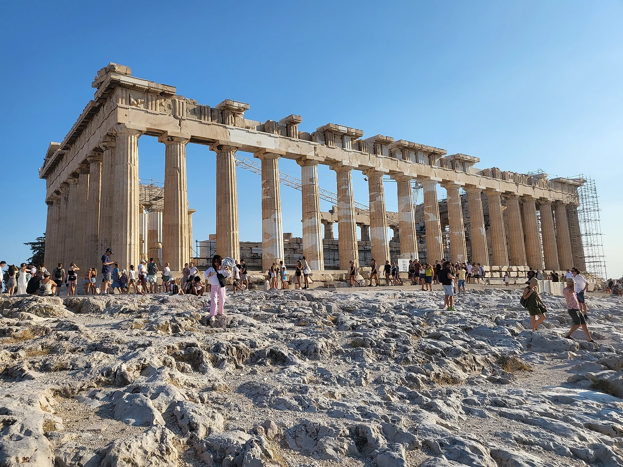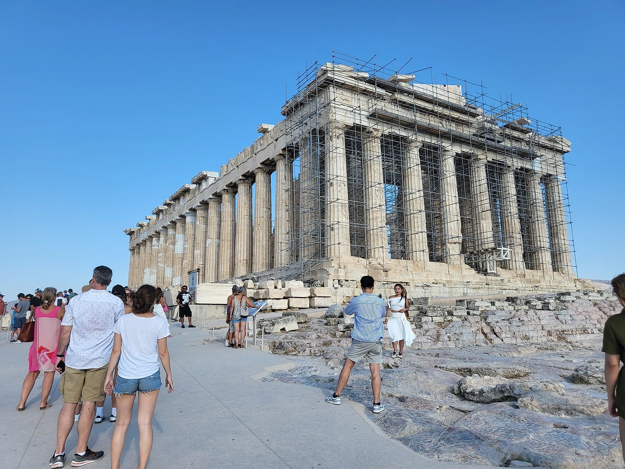 프로필라이아를 지나면 비계로 보강되어 안쓰러워 보이지만 그래도 당당함을 잃지 않는 파르테논 신전이 보인다.