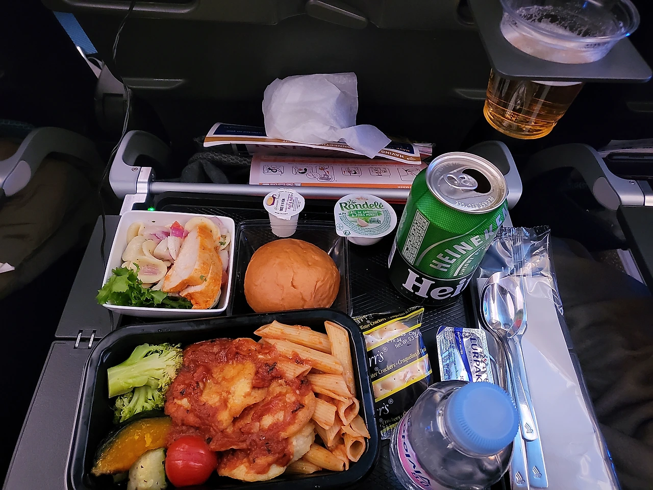 비행기는 정시 출발했다. 여섯 시간 반을 가운데 열 가운데 자리에 앉아서 가는 것은 고역이었다. 그리고 왼쪽에 앉은 체격 좋은 남자분으로 인해 왼쪽은 거의 옹송그린 상태로 왔더니 몸이 더 피곤했다. 비행기 타기 전 마티나 라운지에서 과식했더니 기내식은 통 손이 안 갔다.
