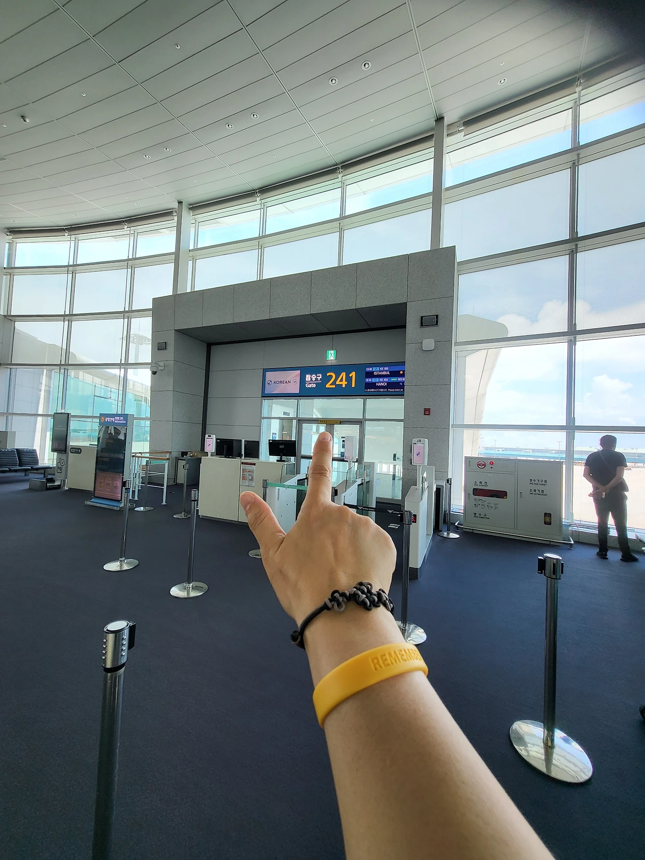 지방에 사는 사람이 인천 공항에서 출국하게 되면, 비행기 타기 전 대략 6시간 이상 먼저 준비해야 한다. 아침 일찍 떠나는 버스인 데다가 긴 하루가 될 것이라서 그냥 밤을 새웠다. 거의 네 시간은 걸리는 공항 리무진을 타는 시점부터 여행은 시작된다. 공항에 도착하고 나서도 체크인하고 짐을 부치고 출국 수속까지 하염없는 기다림의 시간이 이어진다. 그 시간에 쇼핑하는 사람들도 많지만, 내 경우에는 신용카드 혜택으로 쓸 수 있는 공항 라운지에서 식사를 한다. 국적기를 타고 가기 때문에 기내식 생각해서 많이 먹지는 않아야 하는데 생각보다 라운지의 음식이 괜찮은 편이다. 라운지 음식을 신나게 먹고 게이트를 찾아간다. 라운지는 251번 게이트 근처에 있고 나의 탑승구는 241. 식사를 끝내고 소화도 시킬 겸 게이트까지 걷는다. 출국장을 나서서 왼쪽으로 조금 가면 라운지이고 241번 게이트는 거의 오른쪽 끝에 위치해 있다.