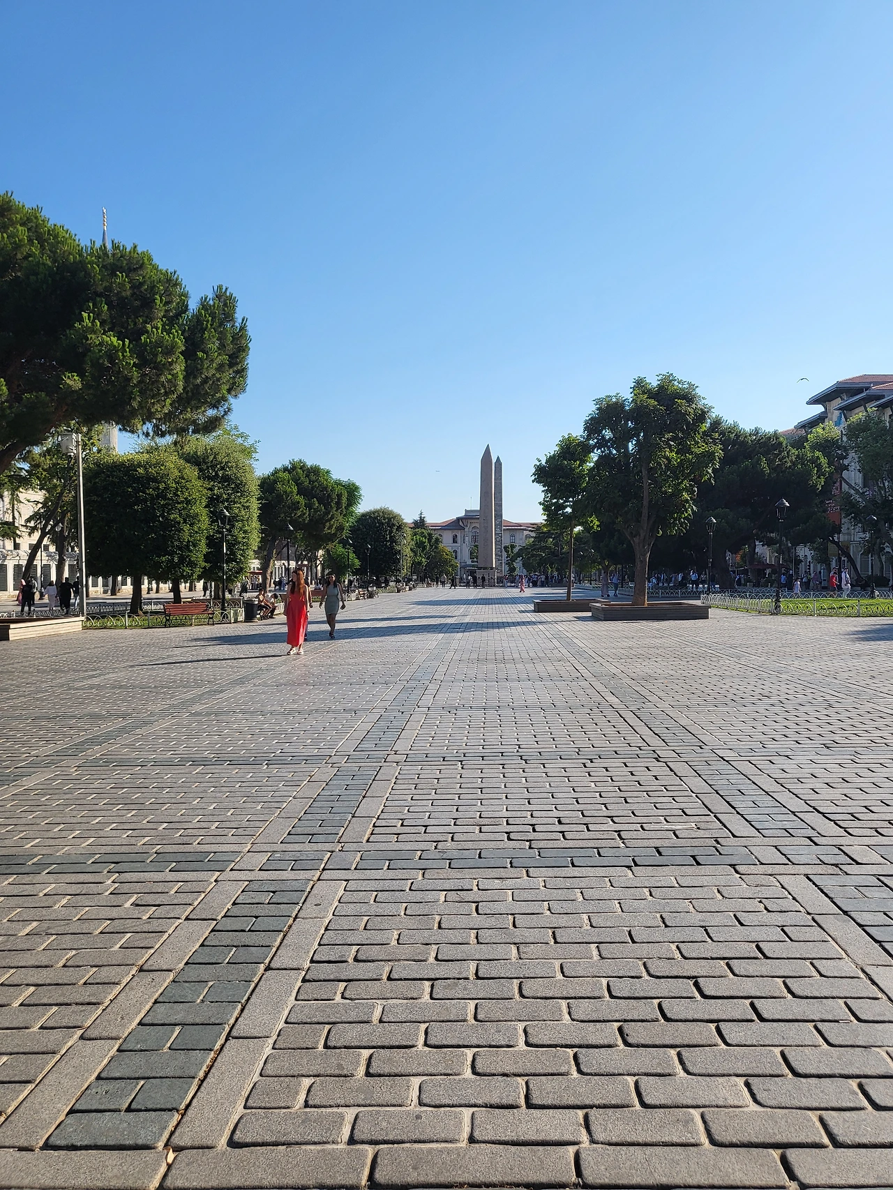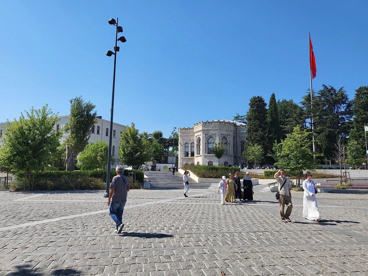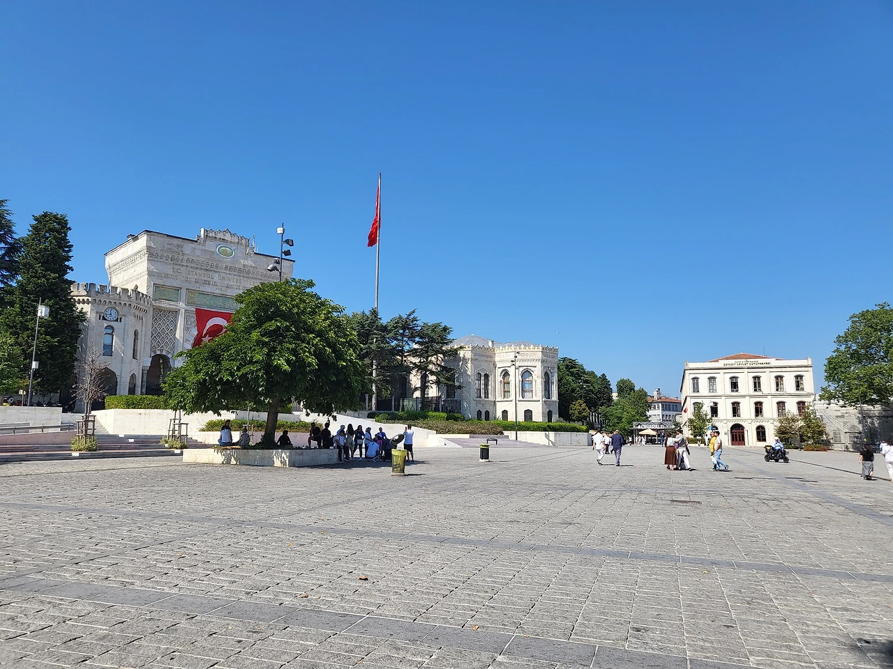 대학 옆으로 난 길을 따라 베야지드 광장으로 내려왔다. 넓고 깨끗한 베야지드 광장 옆으로 트램 라인이 있다. 어제 이용한 그 트램 라인이다. 그렇다면 저 트램길을 따라가면 술탄 아흐멧 광장으로 연결된다. 트램 라인이 다니는 곳인 데다가 베야지드 광장 부근에는 현지인이든 관광객이든 사람들이 많다.