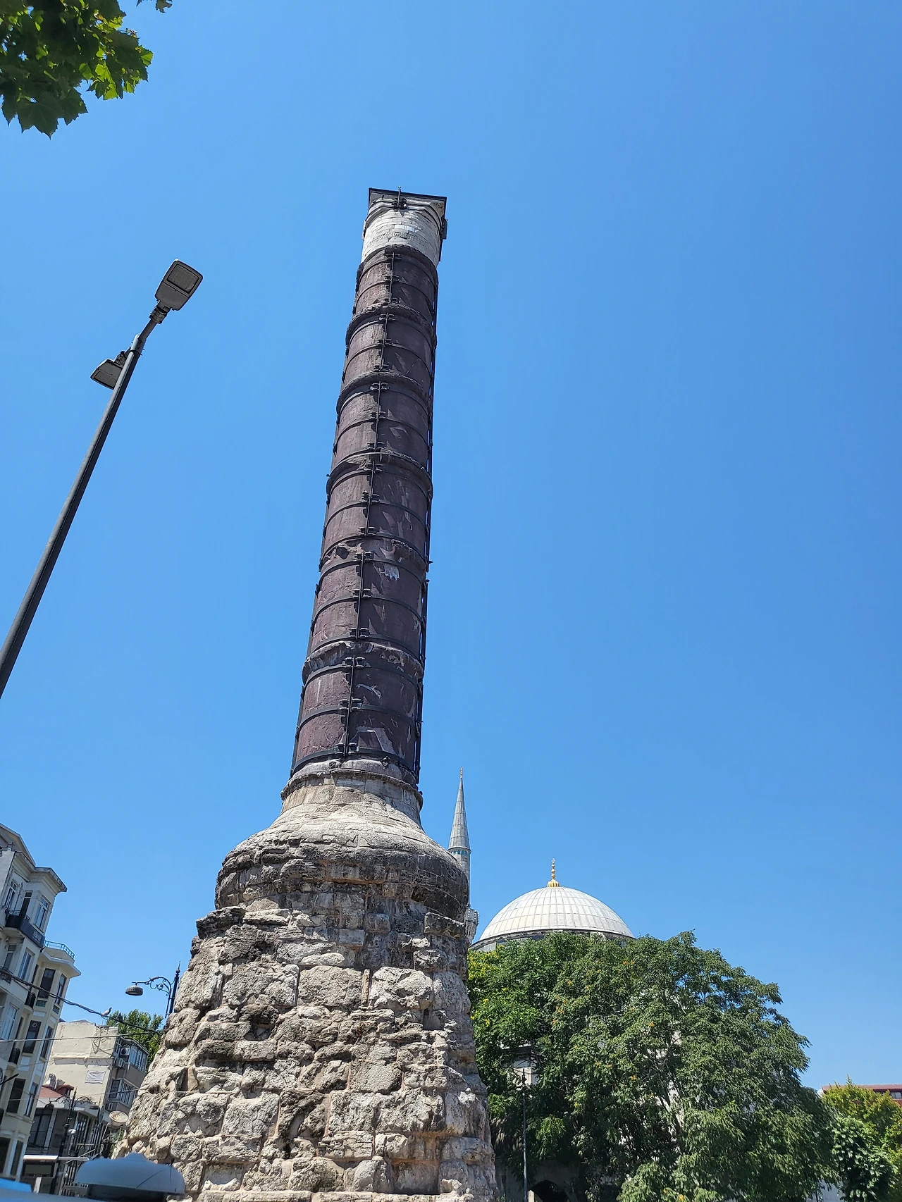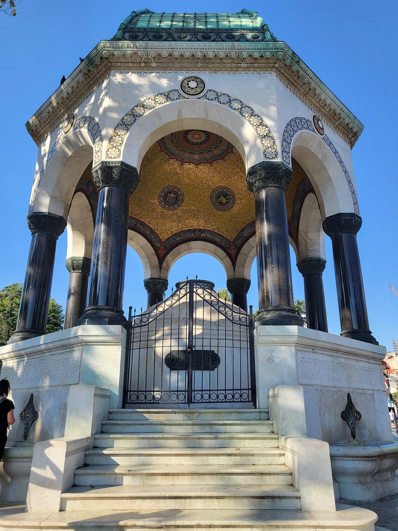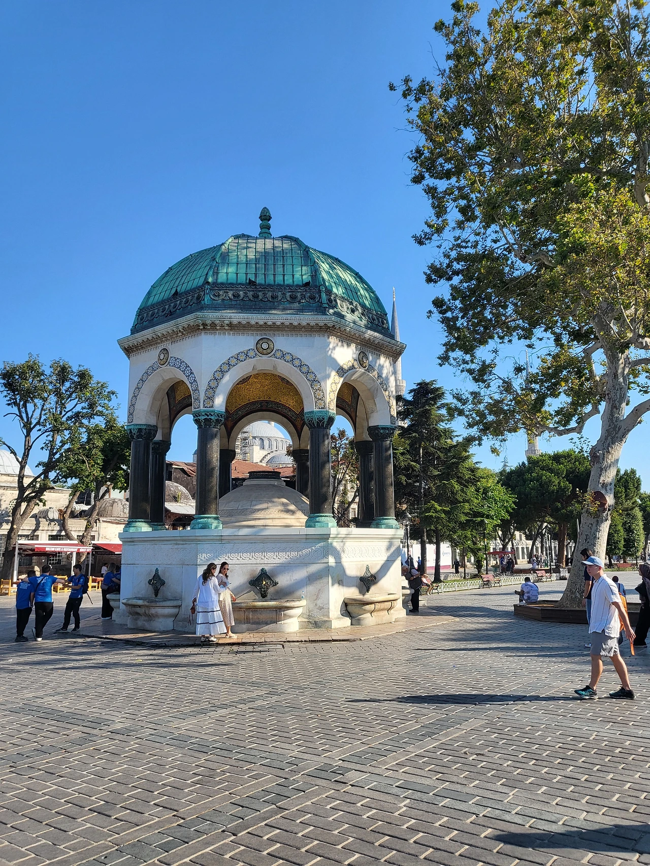 그렇게 천천히 걷다가 내 눈에 들어온 스타벅스. 커피가 마시고 싶기도 하고 더운데 땡볕에 돌아다녔더니 조금 피곤하기도 해서 에어컨 빵빵한 카페가 필요했다. 다행히 스타벅스에서는 아이스 아메리카노를 판매하고 있었다. 아이스아메리카노 한잔을 들고 시원한 카페의 어느 자리에 앉아 있었다. 옆자리에 누가 앉았든 별 신경 안 쓰고 스마트 폰으로 놀기. 혼자 여행을 다녀도 절대로 심심할 틈이 없다. 더위에 지쳤을 때 스타벅스는 천국이었다. 한참을 쉬고 나서 술탄 아흐멧 광장 쪽으로 내려왔다. 카이저 빌헬름 분수와 오벨리스크, 똬리 튼 뱀 기둥이 있는 술탄 아흐멧 광장에 들어서니 마음이 편하다.