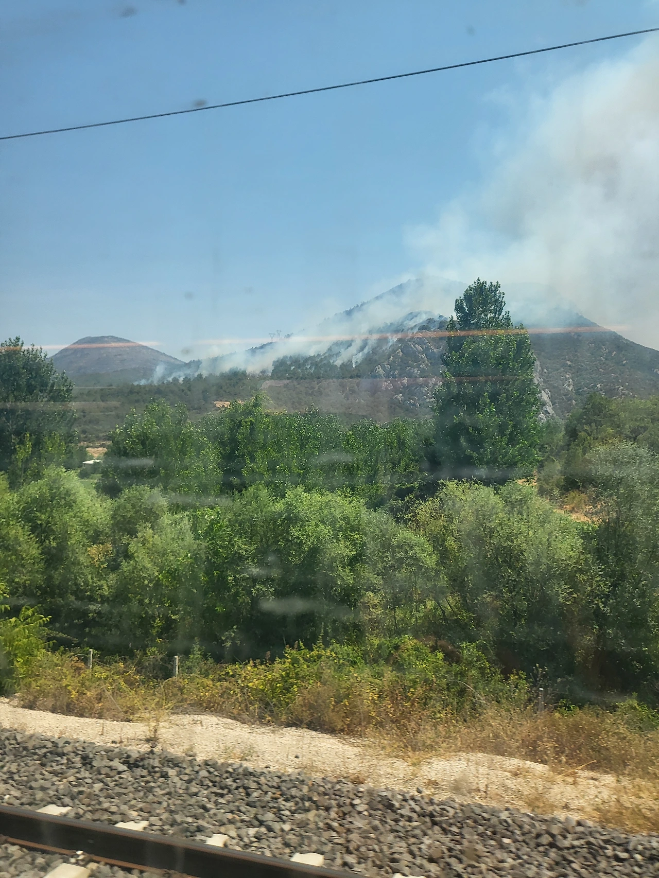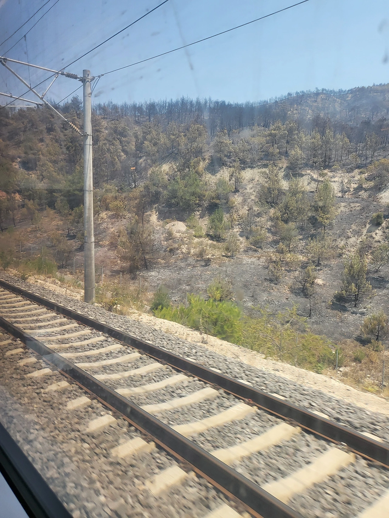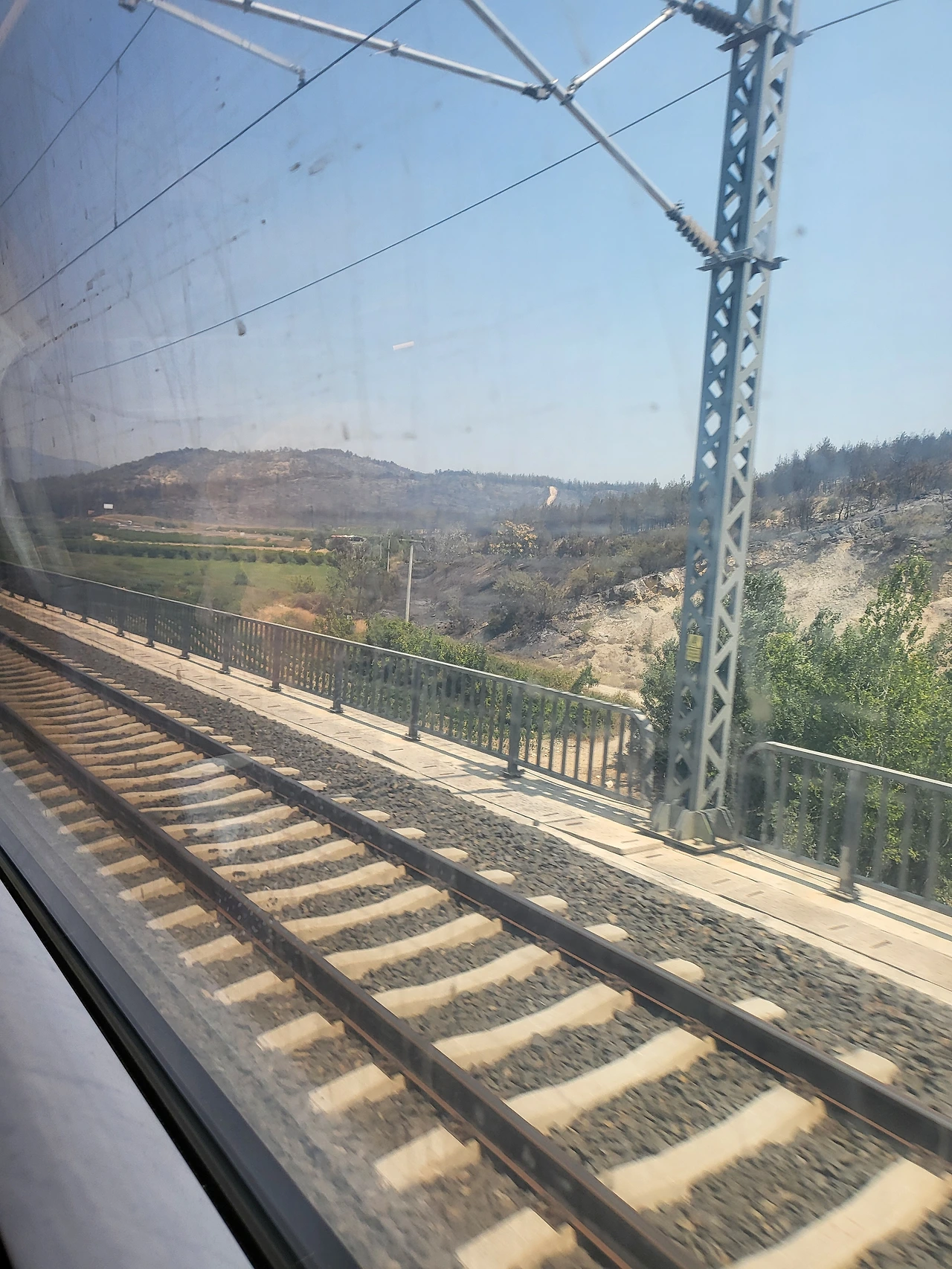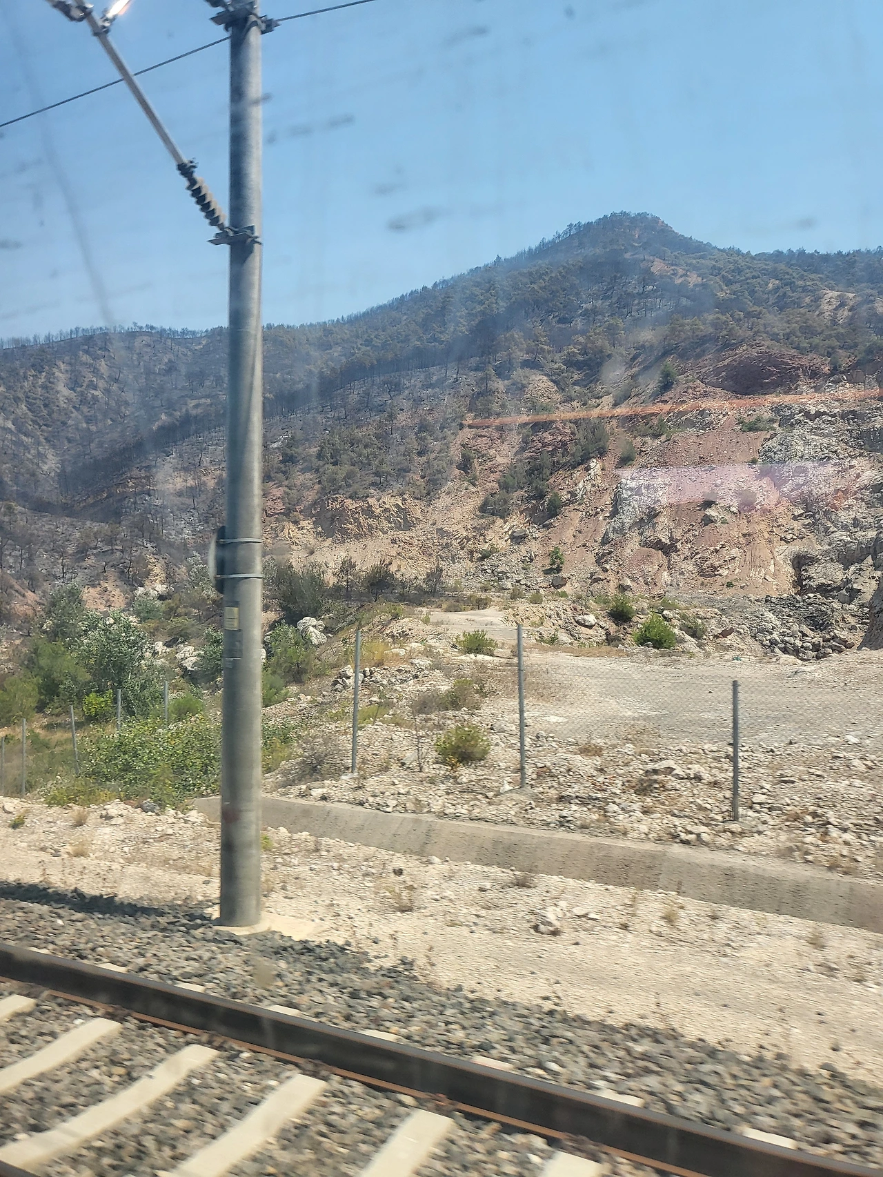 차창 밖으로 펼쳐지는 풍경은 농촌 풍경이 더 많고, 또 독특한 지형도 펼쳐진다. 그런데 군데군데 산불이 난 흔적이 보인다. 우리나라처럼 튀르키예도 산불 피해가 심하다. 그렇게 가는데 아직까지 꺼지지 않은 불이 피어오르는 산도 있었다.