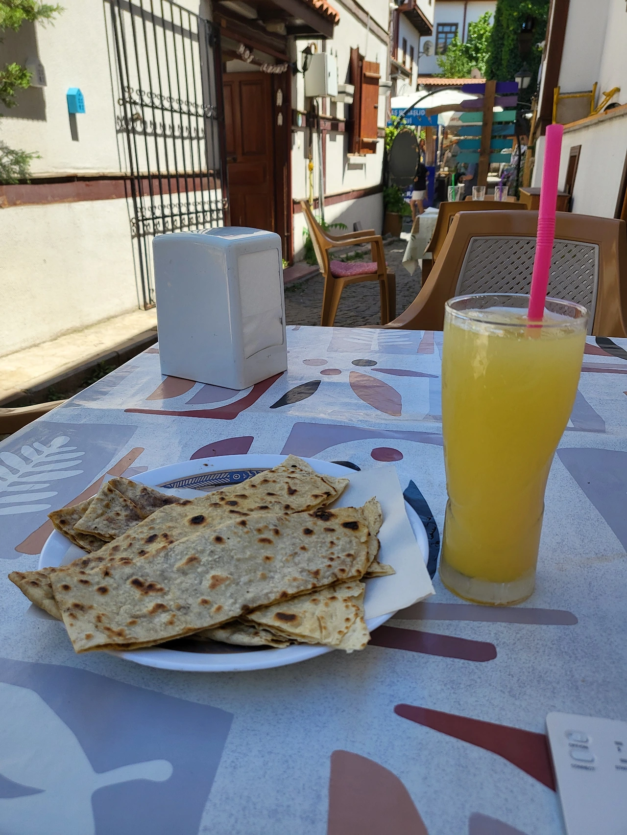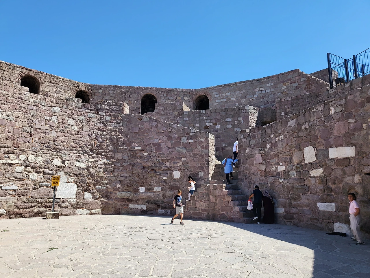 늦게 관광을 시작한 탓인지 벌써 점심때가 가까워졌다. 그리 배가 고프지는 않은 상황인지라 구글맵으로 음식점을 검색하니 튀르키예식 부침개인 괴즐레메 가게가 추천되었다. 앙카라 성으로 올라가는 길에 자리한 괴즐레메 가게에서 가지가 들어간 괴즐레메와 레모네이드를 시키고 자리에 앉으려는데 주문을 도와준 관광객 아저씨가 내게 어느 나라에서 왔는지 물었다. 한국에서 왔다고 하니 자기 딸이 한국을 너무나 좋아한다고 잠깐 만나줄 수 있느냐고 얘기했다. 내가 유명인도 아니고 그냥 한국사람일 뿐인데 뭐지. 그래도 아이들과 인사를 나누기는 했다. 애들도 나도 쑥스러워서 뭐라고 이야기는 많이 나누지는 않았지만. 그래도 그 아이들 중 하나인, 한국을 너무나 좋아하고 나중에 한국인 '오빠'와 결혼하겠다는 열다섯 살 여자아이는 나가면서 내게 한국어로 인사해 주었다. 이것도 재미있는 경험이라고 할 수 있을까?