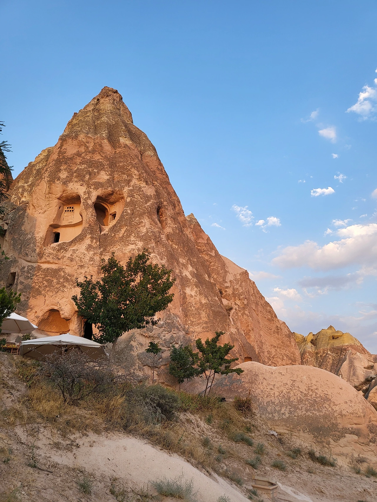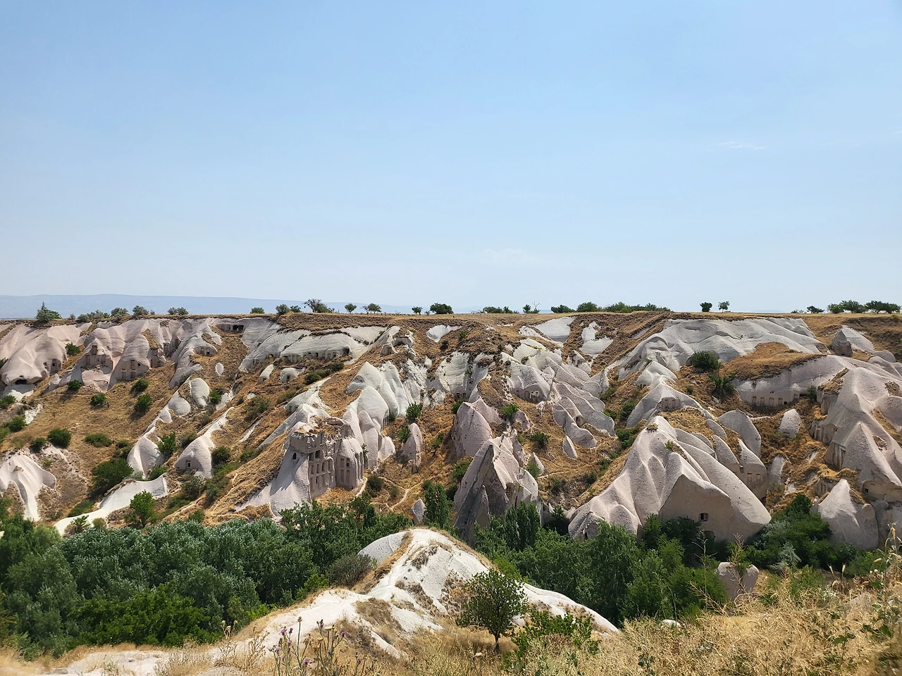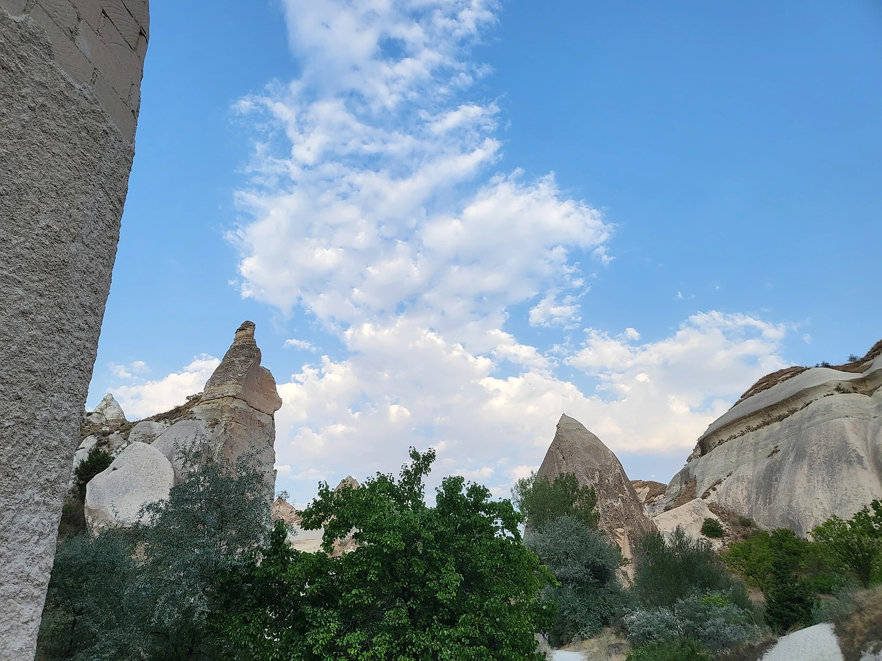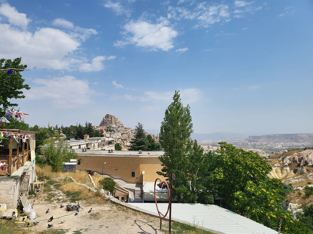 숙소로 돌아왔는데 아직 버스를 타기까지 약 한 시간 정도 남았다. 숙소에 물어보니 2층 조식 카페에서 시간을 보내도 된다고 한다. 2층 카페에 에어컨은 없지만 바람이 불어와서 덥지는 않았다. 공기는 뜨겁지만 바람 부는 그늘이라 딱 괜찮은. 그리고 괴레메의 풍경을 볼 수 있는 테라스가 있어서 조식 카페에 앉아 시간을 보내는 것도 나쁘지 않다.