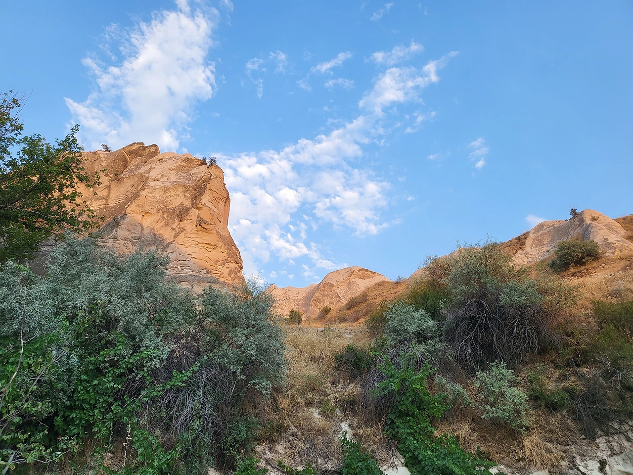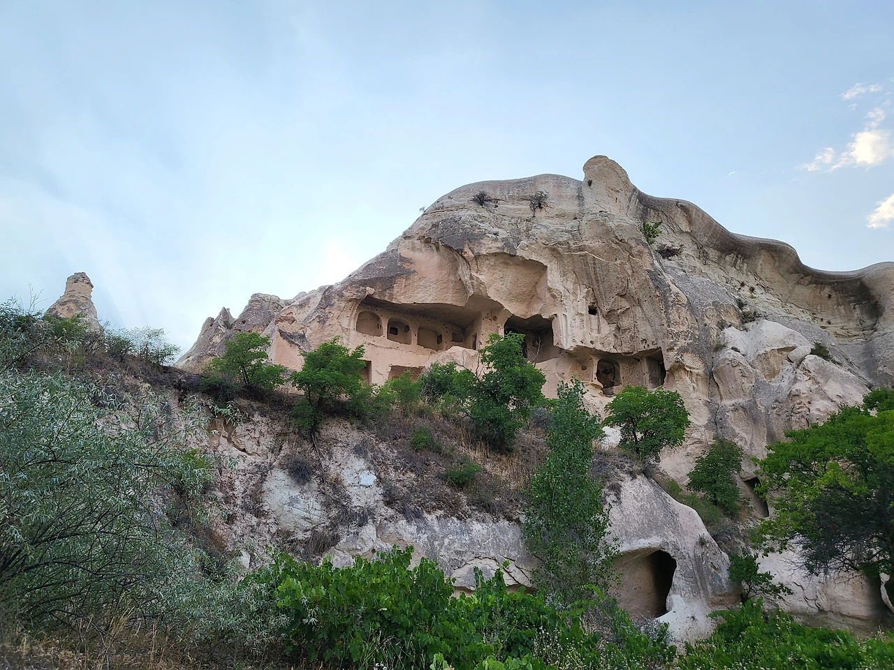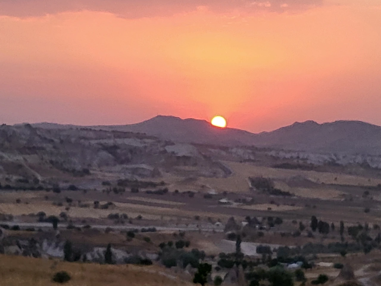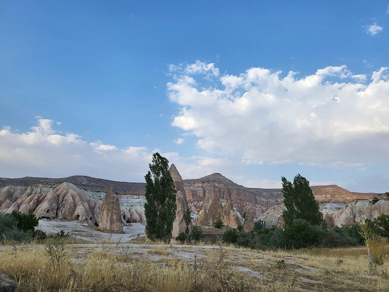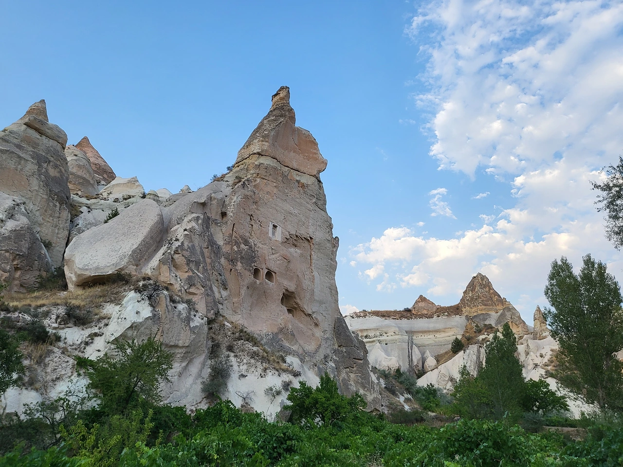 숙소로 돌아왔는데 아직 버스를 타기까지 약 한 시간 정도 남았다. 숙소에 물어보니 2층 조식 카페에서 시간을 보내도 된다고 한다. 2층 카페에 에어컨은 없지만 바람이 불어와서 덥지는 않았다. 공기는 뜨겁지만 바람 부는 그늘이라 딱 괜찮은. 그리고 괴레메의 풍경을 볼 수 있는 테라스가 있어서 조식 카페에 앉아 시간을 보내는 것도 나쁘지 않다.