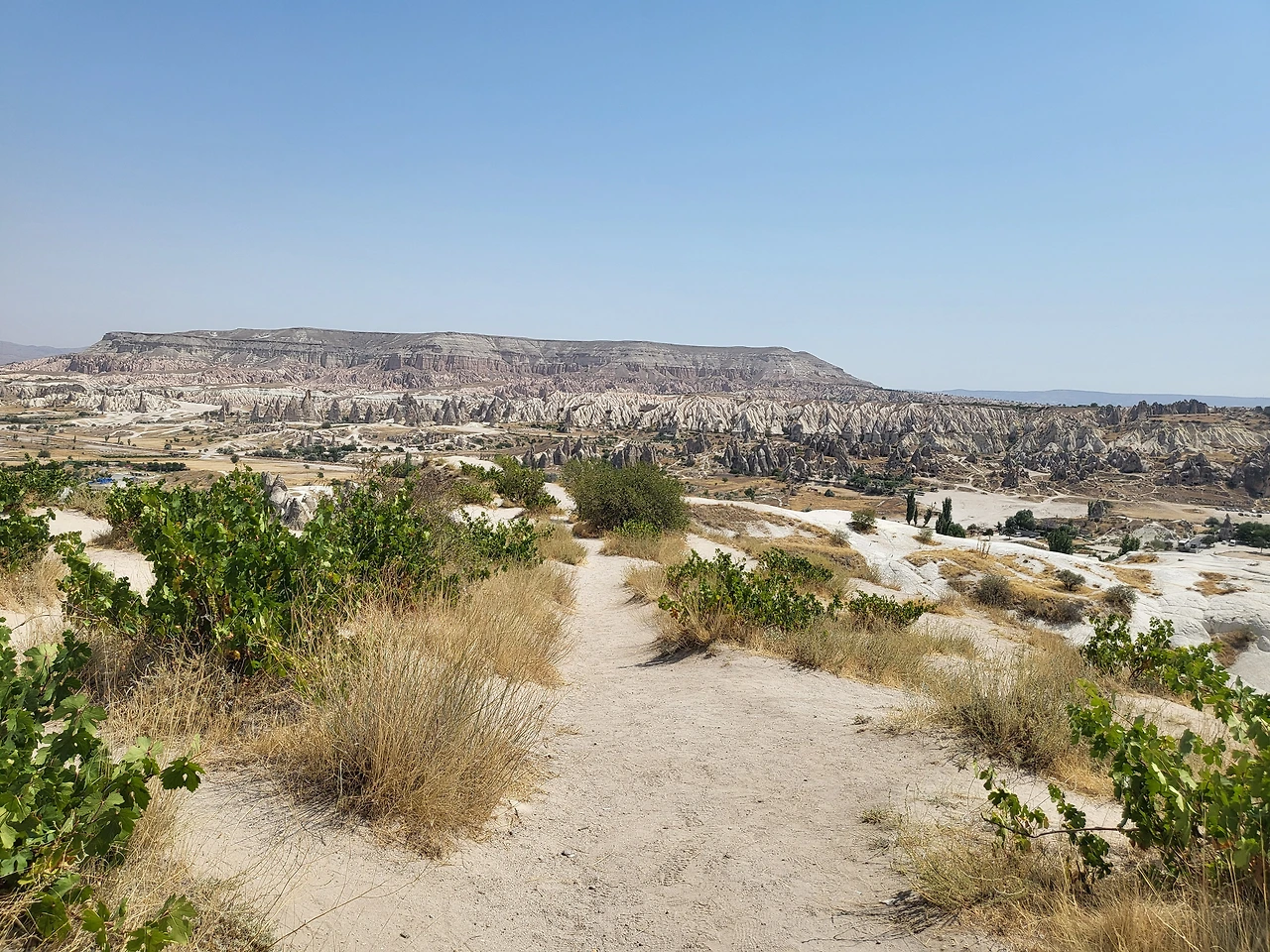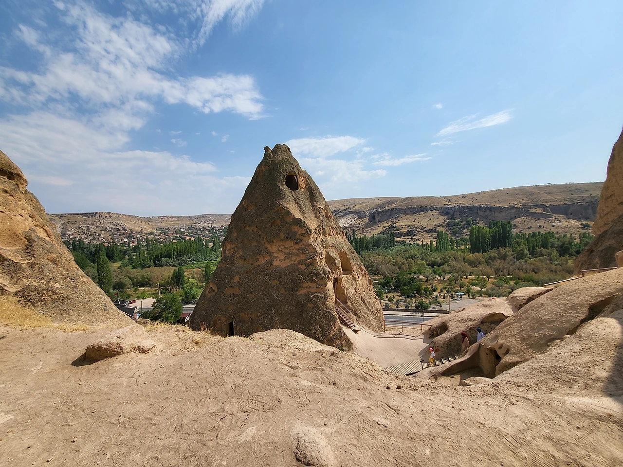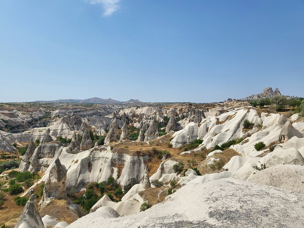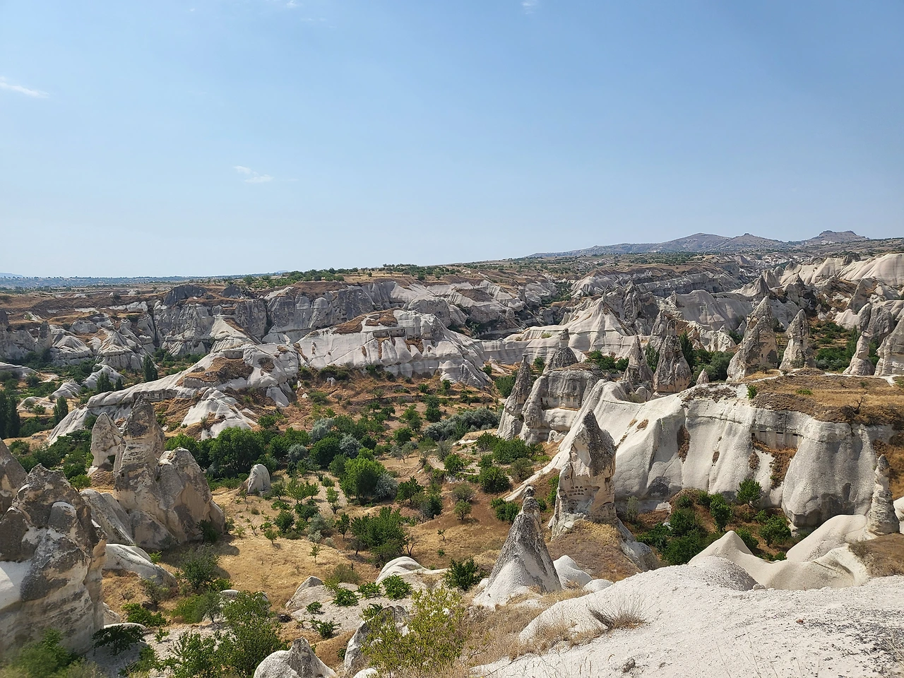 다음날 조식을 먹고 짐을 꾸린 후 체크 아웃을 했다. 짐은 숙소에 맡겨놓고, 전망대로 향했다. 땡볕에 걸어가는 길이 쉬운 것은 아니었지만 그래도 습하지는 않아서 괜찮은 편이다. 아무 생각 없이 위로 올라가는데 뒤쪽에서 아저씨가 소리쳐 부른다. 이 전망대 30리라의 입장료가 있었다. 입장료를 지불하고 전망대로 올라오니 괴레메 시내와 멀리까지 한눈에 들어왔다. 그리고 남근석을 닮은 바위들이 솟아있는 러브밸리까지 눈에 들어왔다. 이쯤에 들어서니 예전에 처음 이곳에 왔을 때 숙소가 이 부근의 동굴호텔이었던 것으로 기억이 났다. 그러나 지금은 대부분 커다란 동굴 호텔이 있어서 내가 한때 머물렀던 그곳이 어디인지는 알 수가 없다. 전망대에서 사진을 찍으며 시간을 보내고 있는데 한국인 가족을 만났다. 초등학생으로 보이는 아이와 함께 온 부부였다. 이번 여행에서 이렇게 아이와 함께 온 부모님들을 종종 만났다. 힘들어하지만 그래도 자신이 하고 싶은 것을 하고 있다는 것에 대한 자부심도 있었다고 해야 할까. 아무튼 그렇게 아이를 데리고 다니는 부모님들이 정말 대단해 보였다.