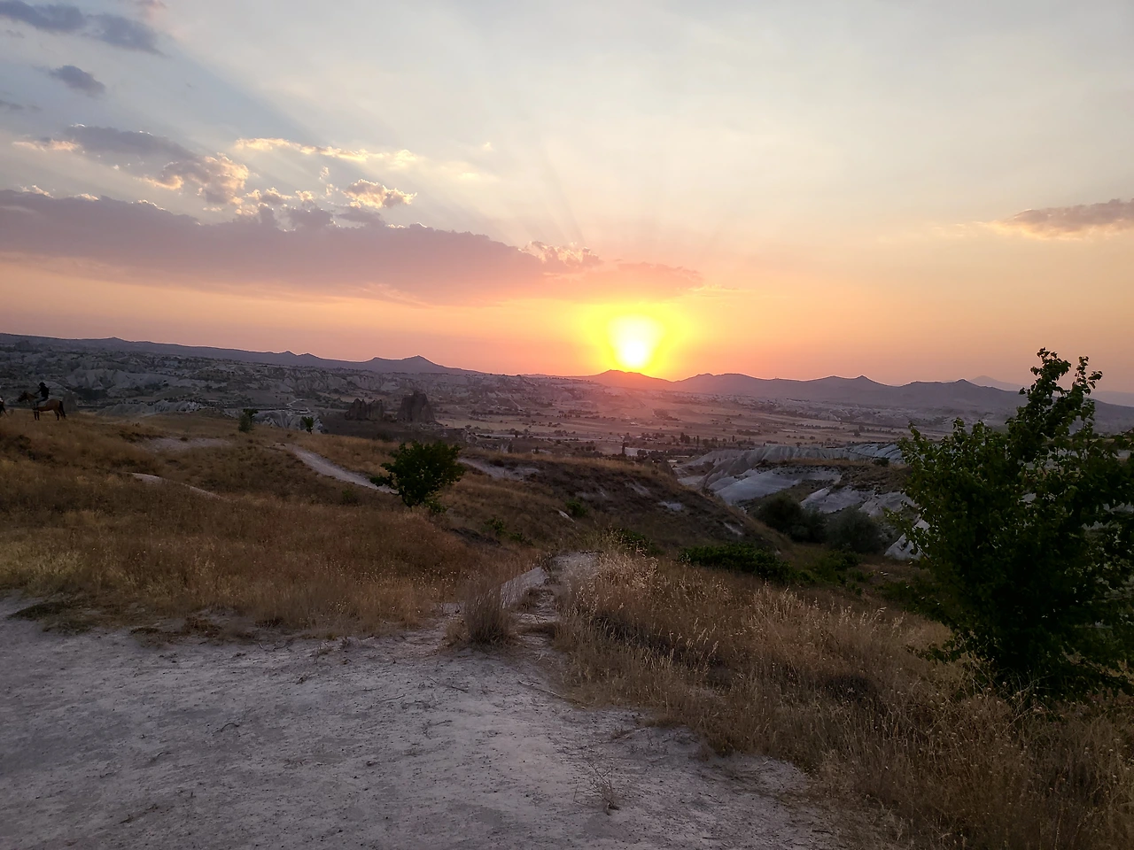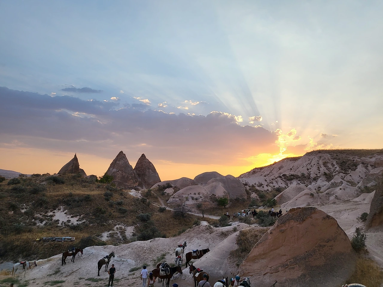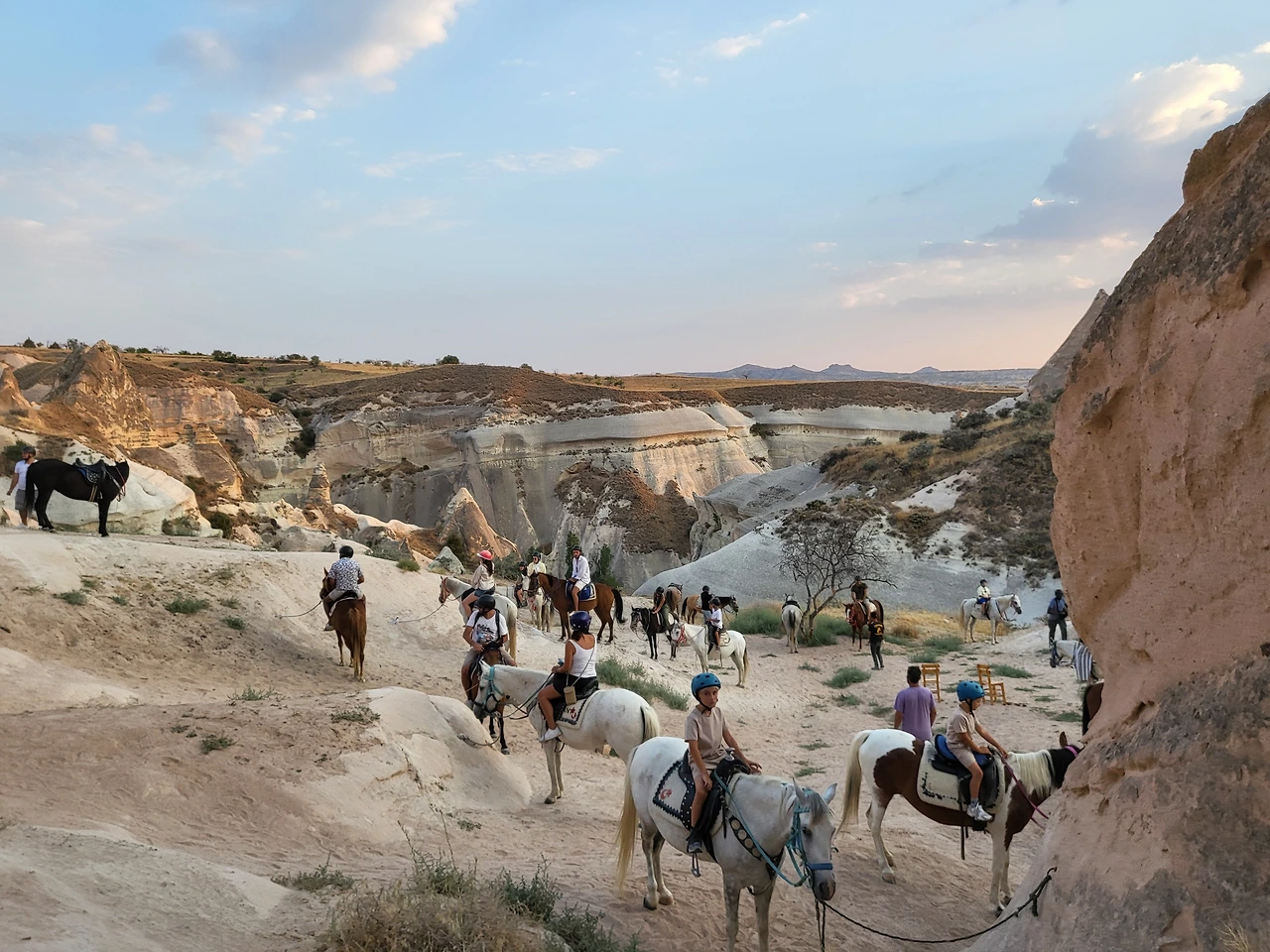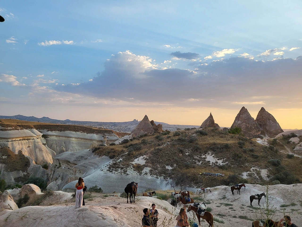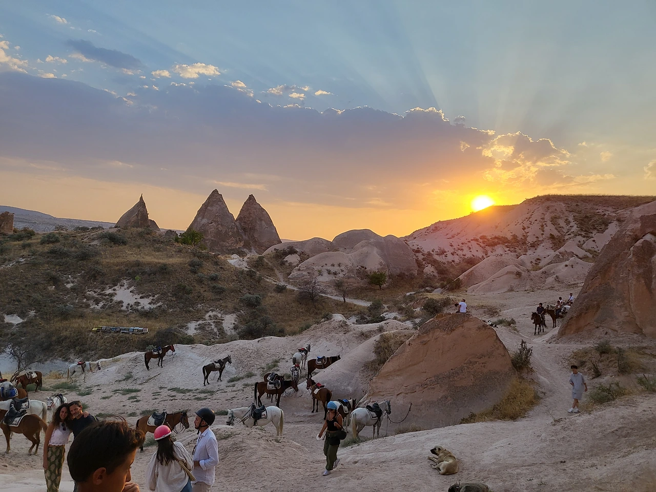 그린 투어가 끝나고 오토가르에 도착하자마자 나를 기다리고 있었던 레드투어 버스 기사이자 투어가이드. 그의 뒤를 따라 레드투어에 참여했다. 승마 투어와 길이 같기 때문에 레드투어에 참여하다 보면 말똥을 심심찮게 보게 된다. 투어가이드의 서두르는 행동을 따라 뒤쫓아가기 바빴다. 그가 서둘렀던 것은 해질 무렵이 다 되어가기 때문이었다. 레드 투어에서는 지는 해를 뒤로 두고 공중 부양 사진을 찍기 때문에 사람들에게 인기 있는 상품이기도 하다. 예전엔 숙소에서 투어 인원을 모집하고 인솔해서 갔었고 공중부양 사진도 그렇게 찍었는데 그것이 지금까지 이렇게 이어지고 있었던 모양이다.