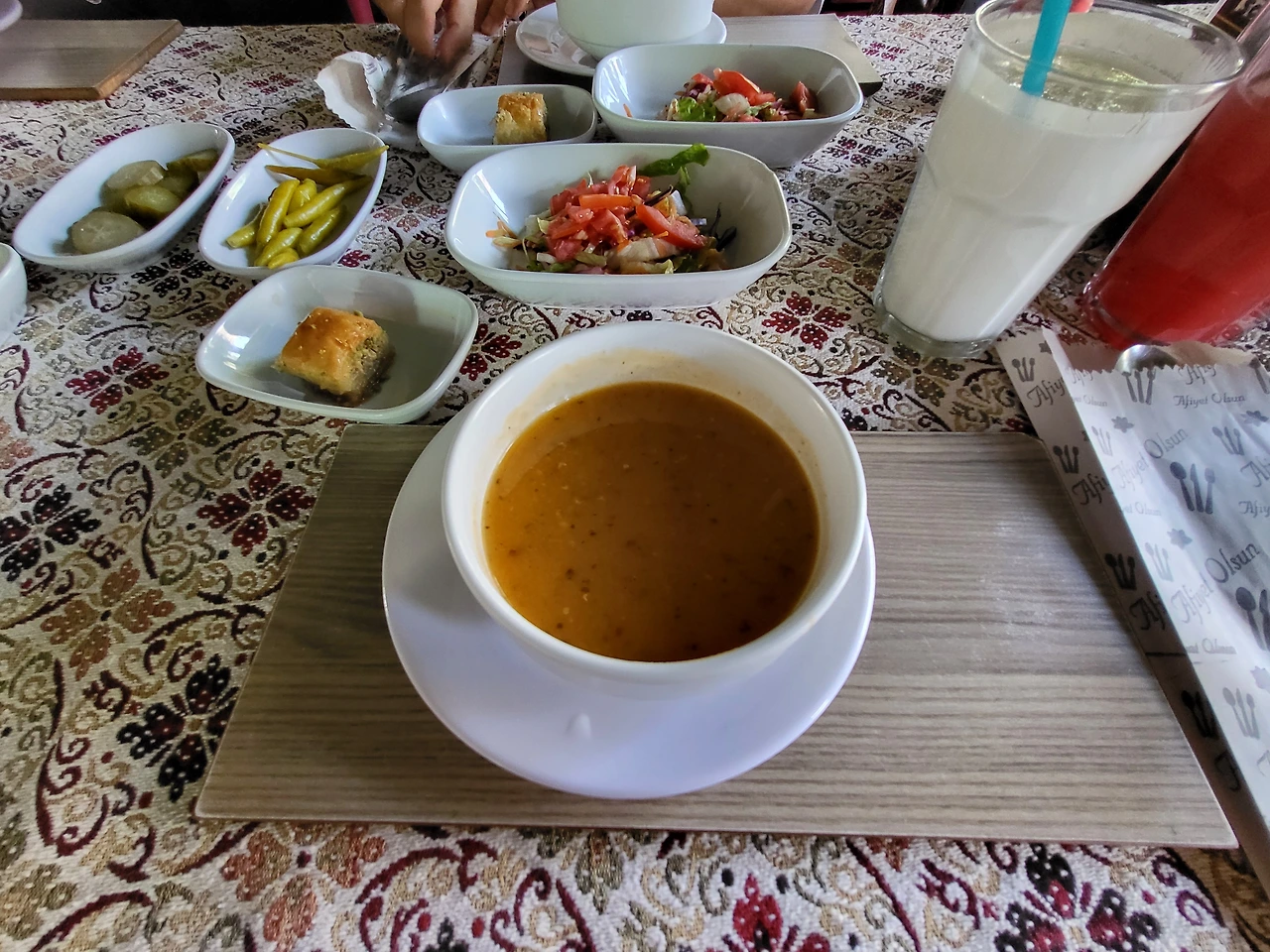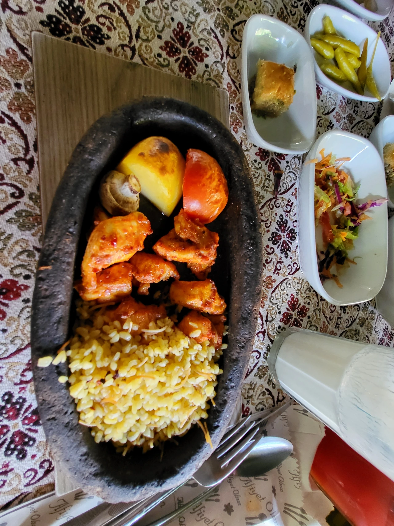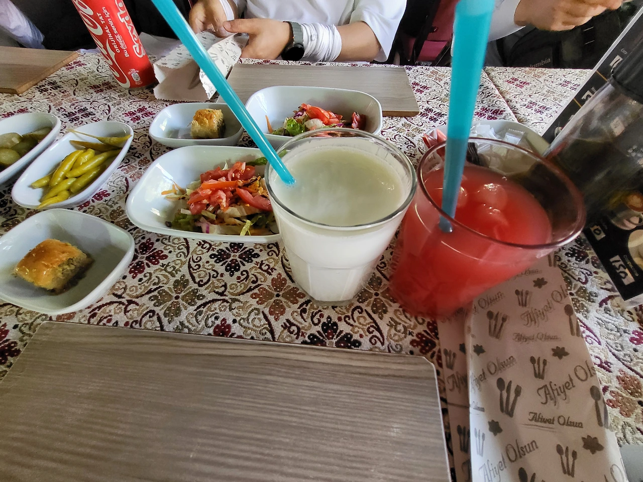 데린쿠유 지하도시를 다녀와서 으흘랄라 계곡 근처의 식당에서 점심 식사. 예전에는 계곡을 살짝 거닐다가 계곡 안에 마련되어 있는 식당에서 이와 비슷한 식사를 했었는데, 이제는 계곡을 트래킹 하는 길에는 식당이나 카페 자체가 없어졌다고 한다. 자연보호의 개념이 가장 크겠지만 그래도 조금은 아쉬웠다.