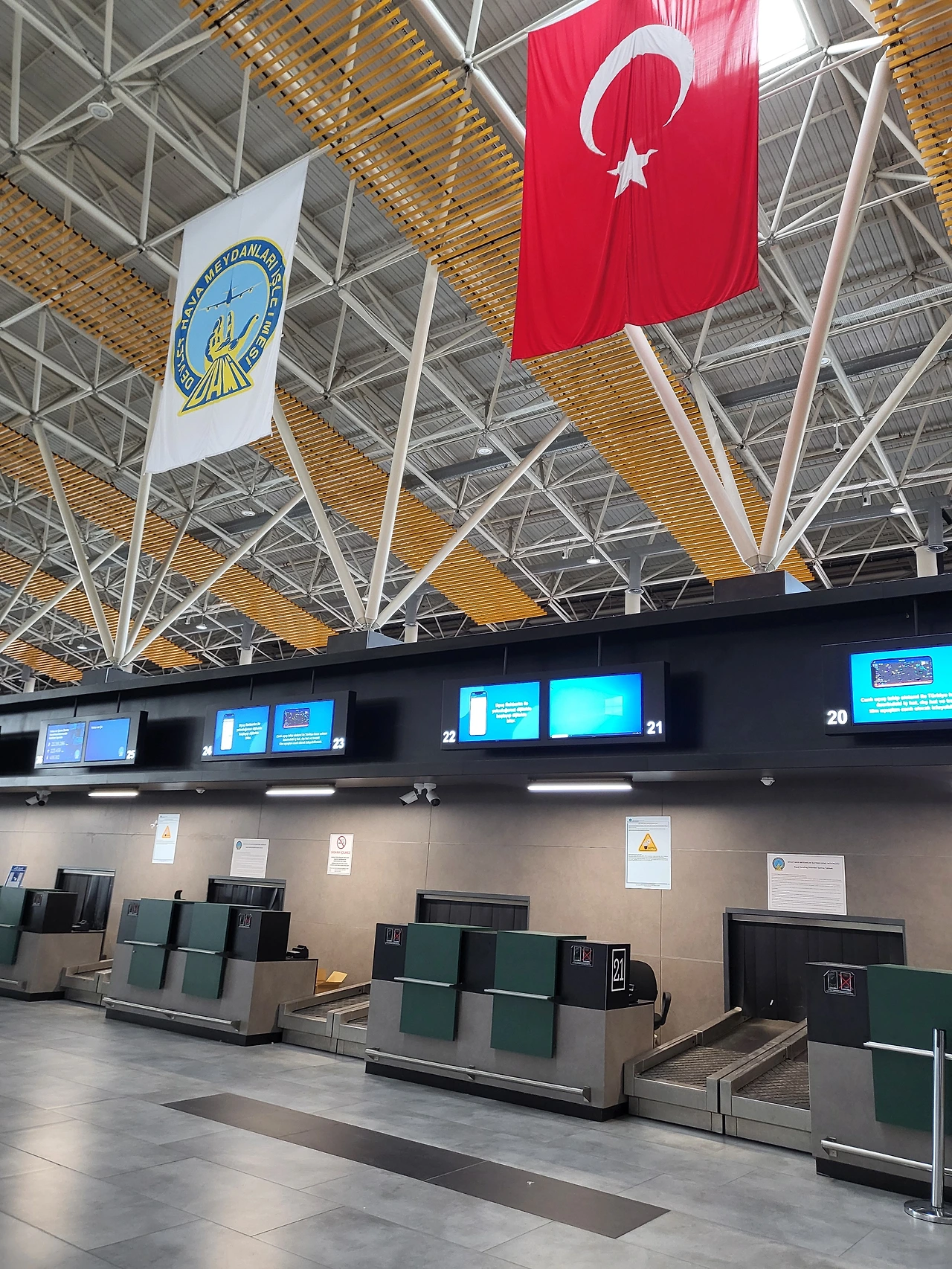 공항에 도착하여 내가 타야 할 페가수스 항공의 카운터를 찾아가 체크인을 하고 짐을 부쳤다. 보안 검색대를 통과하고 비행기 게이트를 보니 204번, 바로 앞에 있는 게이트였다. 그래서 게이트 앞에서 기다리는데 게이트 화면이 갑자기 다른 화면으로 바뀌고 정지해 있었다. 다운된 것은 아니었다. 단지 200번대 게이트에서 비행기 탑승이 되지 않는 것이다. 비행기로 바로 연결되는 통로가 있는 게이트가 모두 닫혔다. 그래서 게이트가 바뀌었다. 1층에 있는 108번 게이트로 바뀌었고, 그래서 서둘러 1층으로 내려왔다. 앙카라에서 말라티아로 갈 때에도 갑자기 게이트가 바뀌더니 이번에도 이렇게 게이트가 바뀌었다. 다음번에는 또 어떨까.