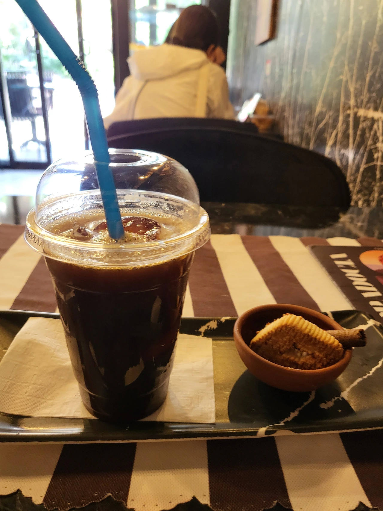 날은 여전히 더웠고 야외 박물관을 제외하면 따로 갈 곳도 없는 데다가 오후 4시 근처에는 공항카 셔틀버스를 타야 해서 평이 괜찮은 카페에 들어가 앉았다. 튀르키예에선 어디서나 아이스 아메리카노를 판매해서 다행이다. 아마 이제 유럽 어디서나 아이스 아메리카노를 팔지 않을까?
