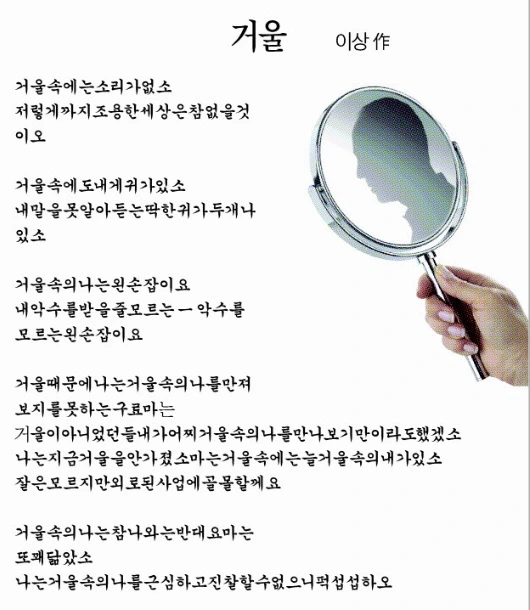 *제목은 우리나라 시인 이상 선생의 <거울>을 활용했다. 시의 전문은 다음과 같다.