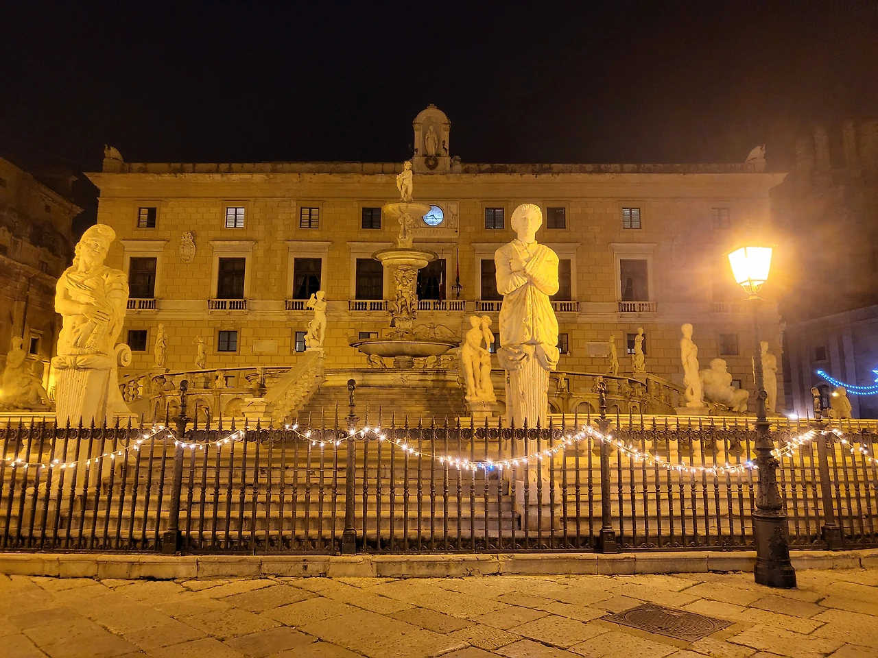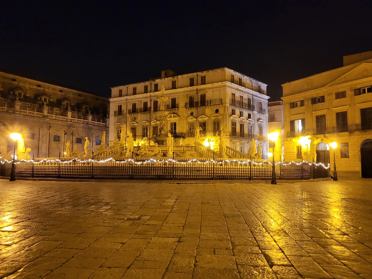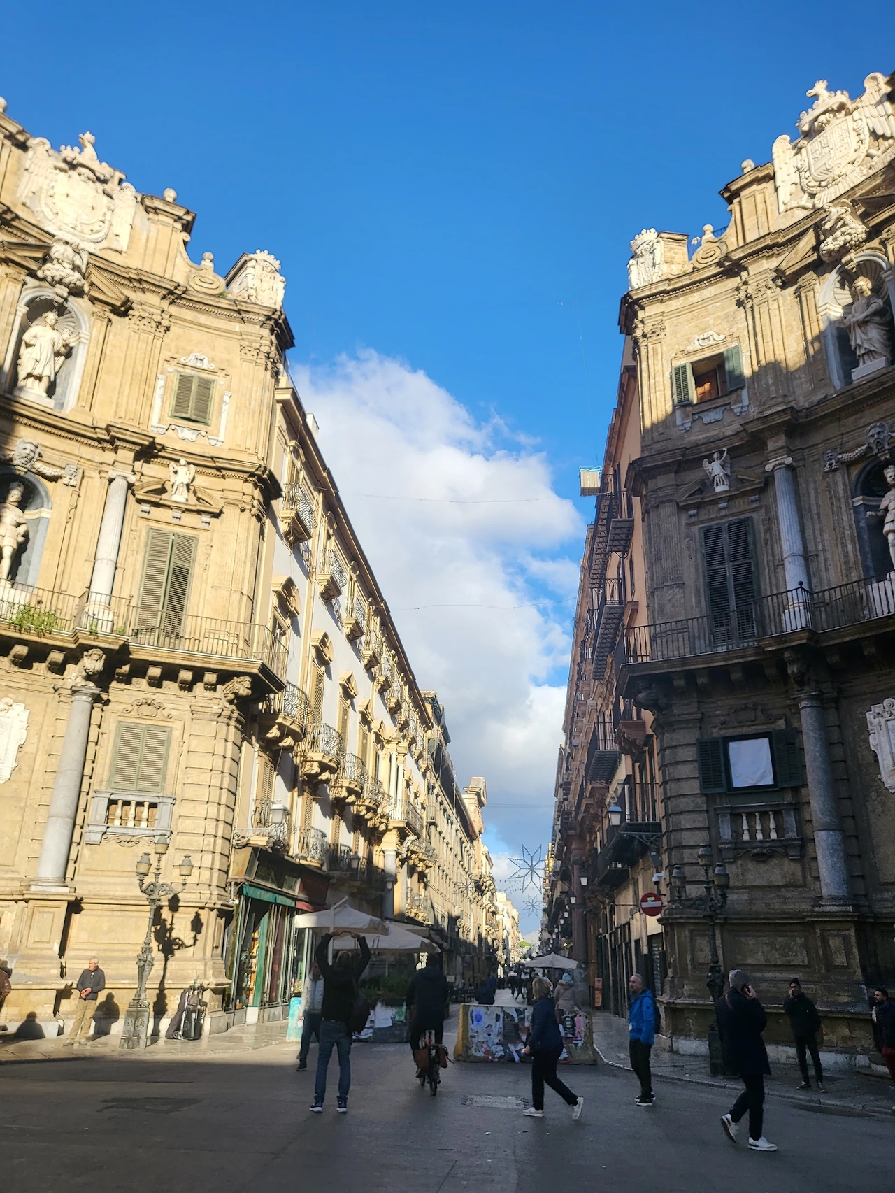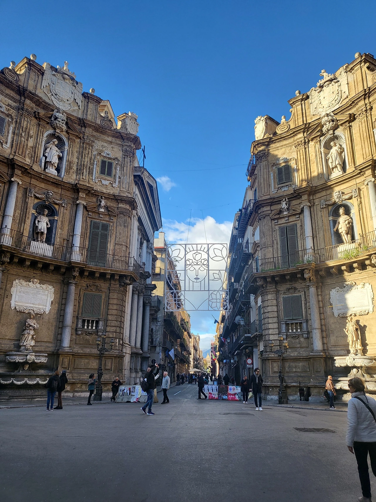오늘은 간단히 식사를 하고 체팔루로 간다. 낯선 이름으로 들리겠지만, 영화 <시네마 천국(1990)>을 본 사람들이라면 들어봤을 이곳이 다행히 팔레르모 근교이다. 숙소에서 기차역까지 그리 멀지 않아서 천천히 걸어보기로 했다. 숙소를 고를 때 도심으로 선택했었는데 정말 도심에 있었나 보다. 팔레르모를 소개할 때 빠지지 않는 콰트로 칸티와 프레토리아 분수가 도보 5분 만에 떡하니 나타났다. 콰트로 칸티(Quattro Canti)는 '네 개의 모서리'라는 뜻으로 팔레르모 도심 한가운데의 사거리를 일컫는 말이다.