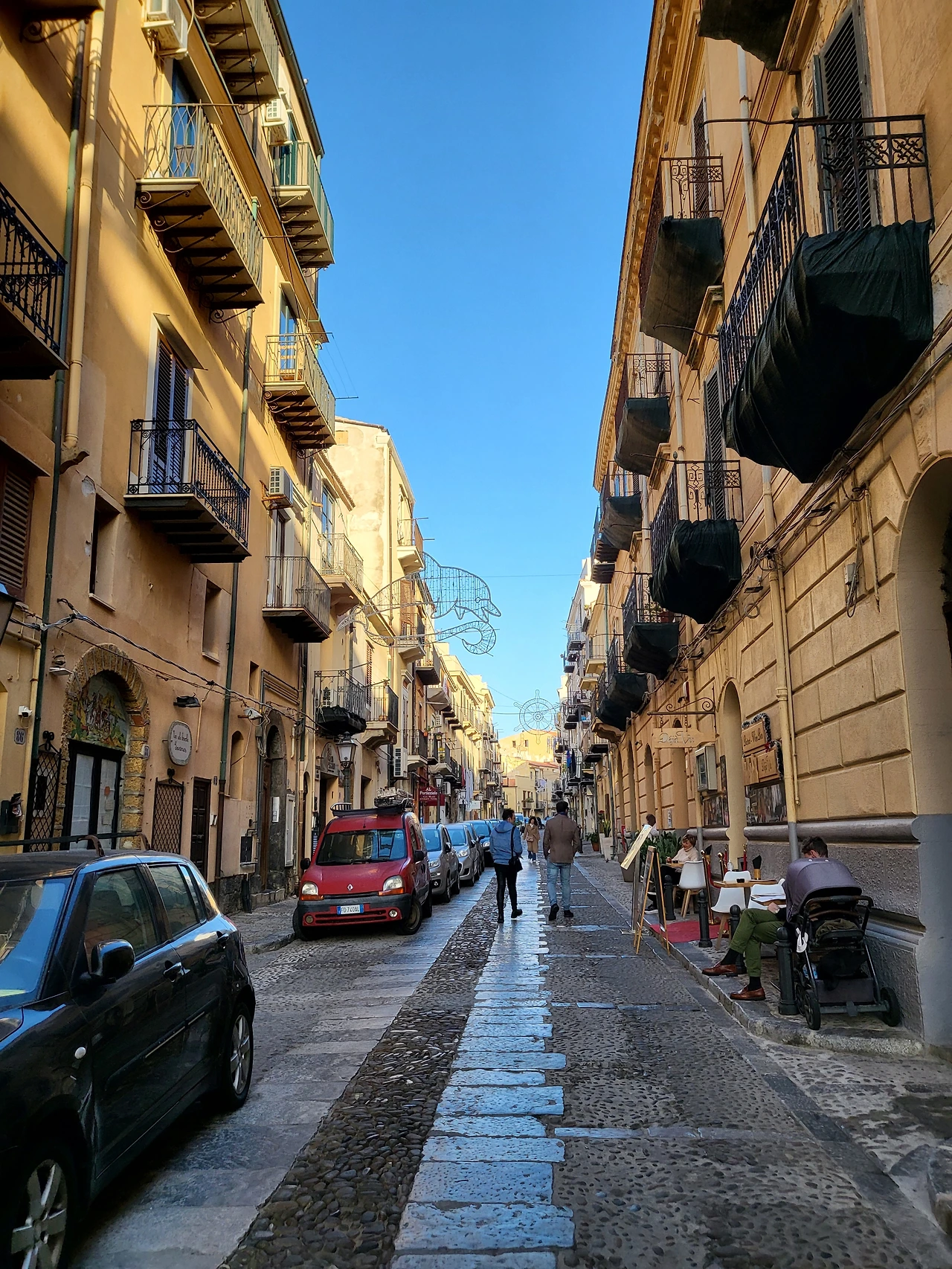 체팔루의 골목길은 다정하다. 곱게 포석이 깔린 길 양쪽으로 기념품을 파는 가게들과 사람들이 사는 집들, 음식점들이 열려있고, 골목에서 올려다본 하늘은 약간 구름이 끼어 있어도 온화한 느낌으로 펼쳐져 있다.