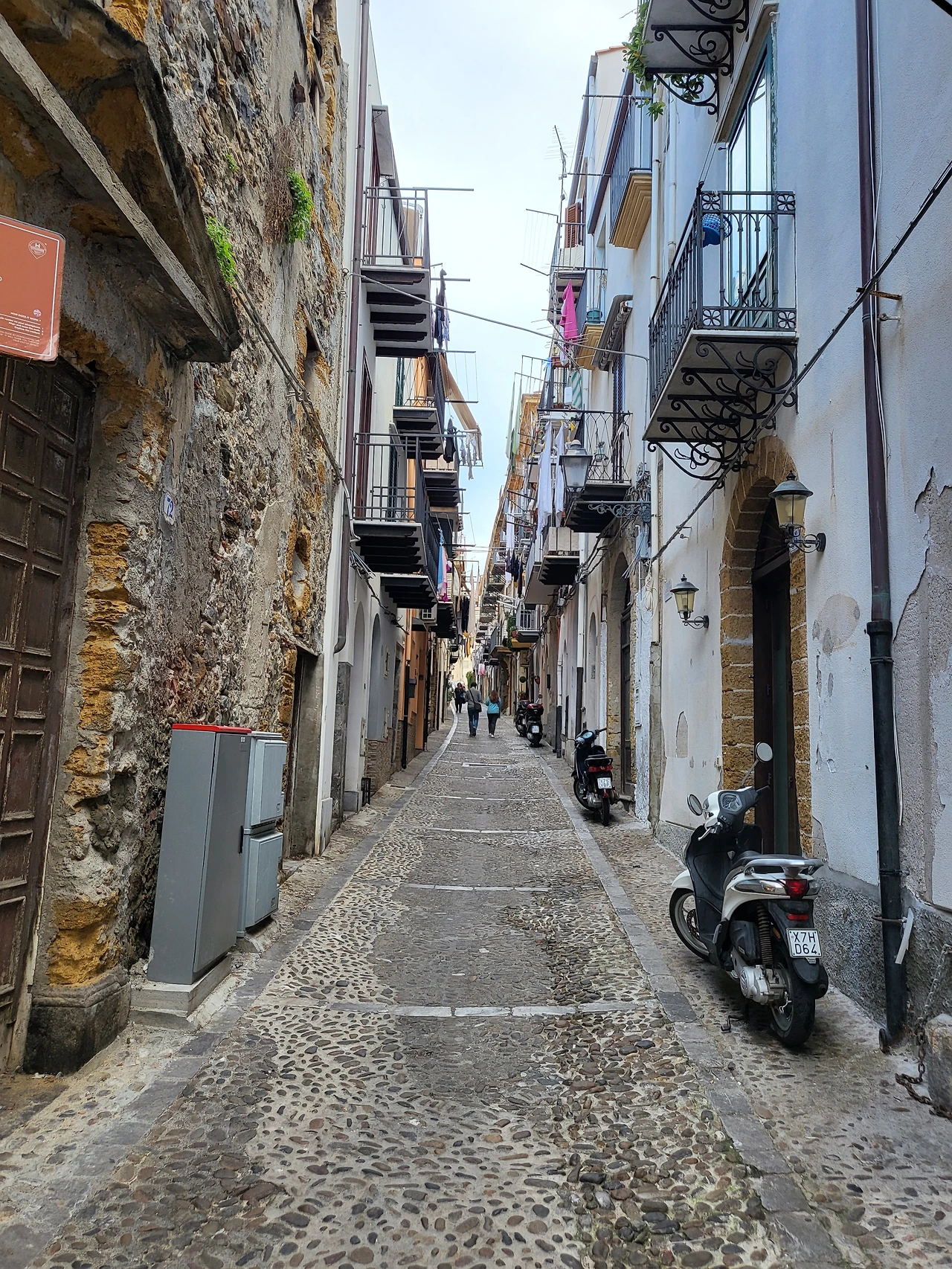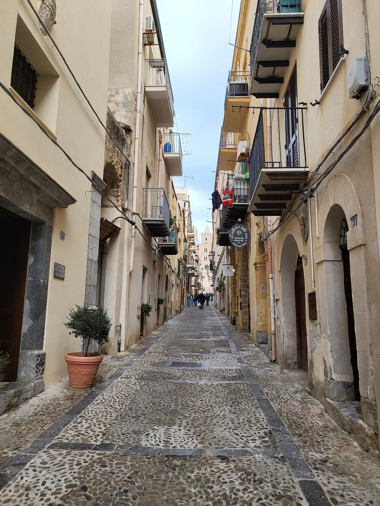 이제 바닷가에서 체팔루 대성당 쪽으로 향한다. 성당으로 가는 골목길 끝에 성당이 보인다. 골목길은 고요하고 다정스럽게 뻗어있었다.