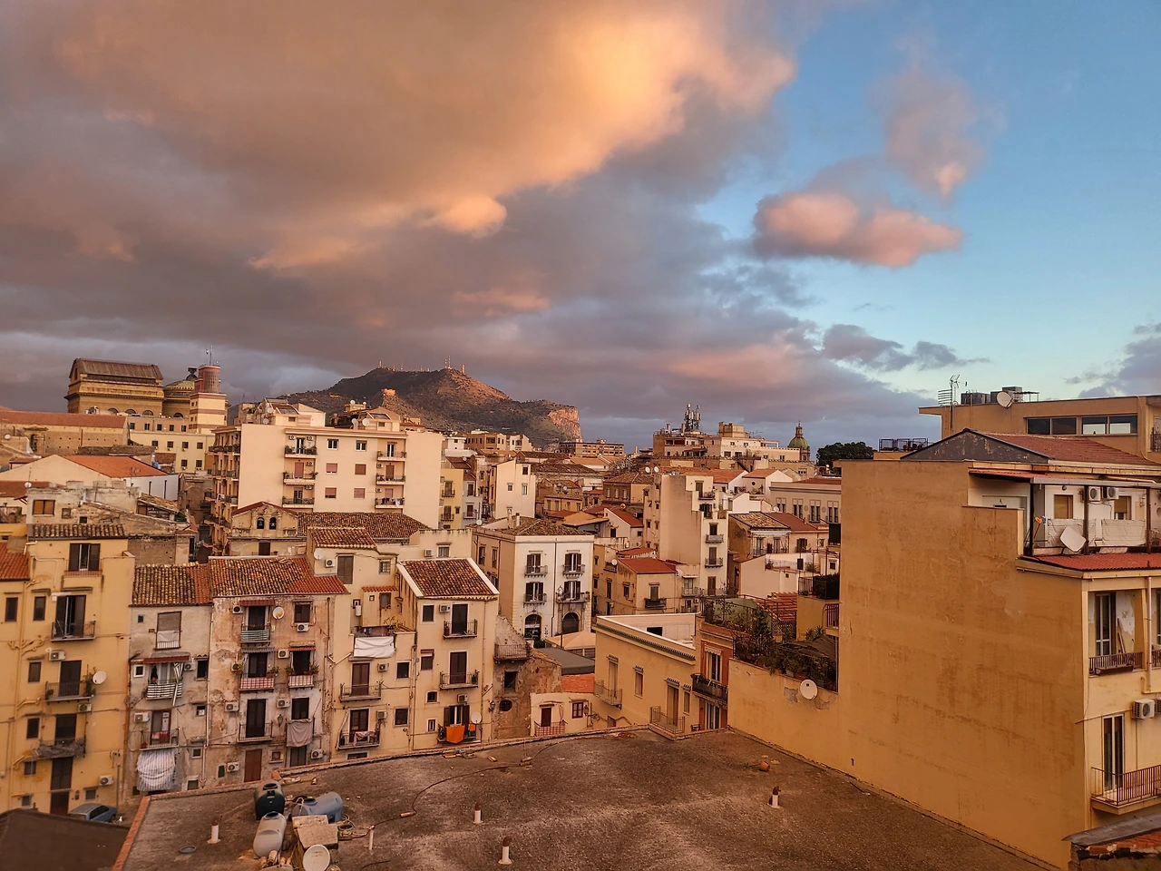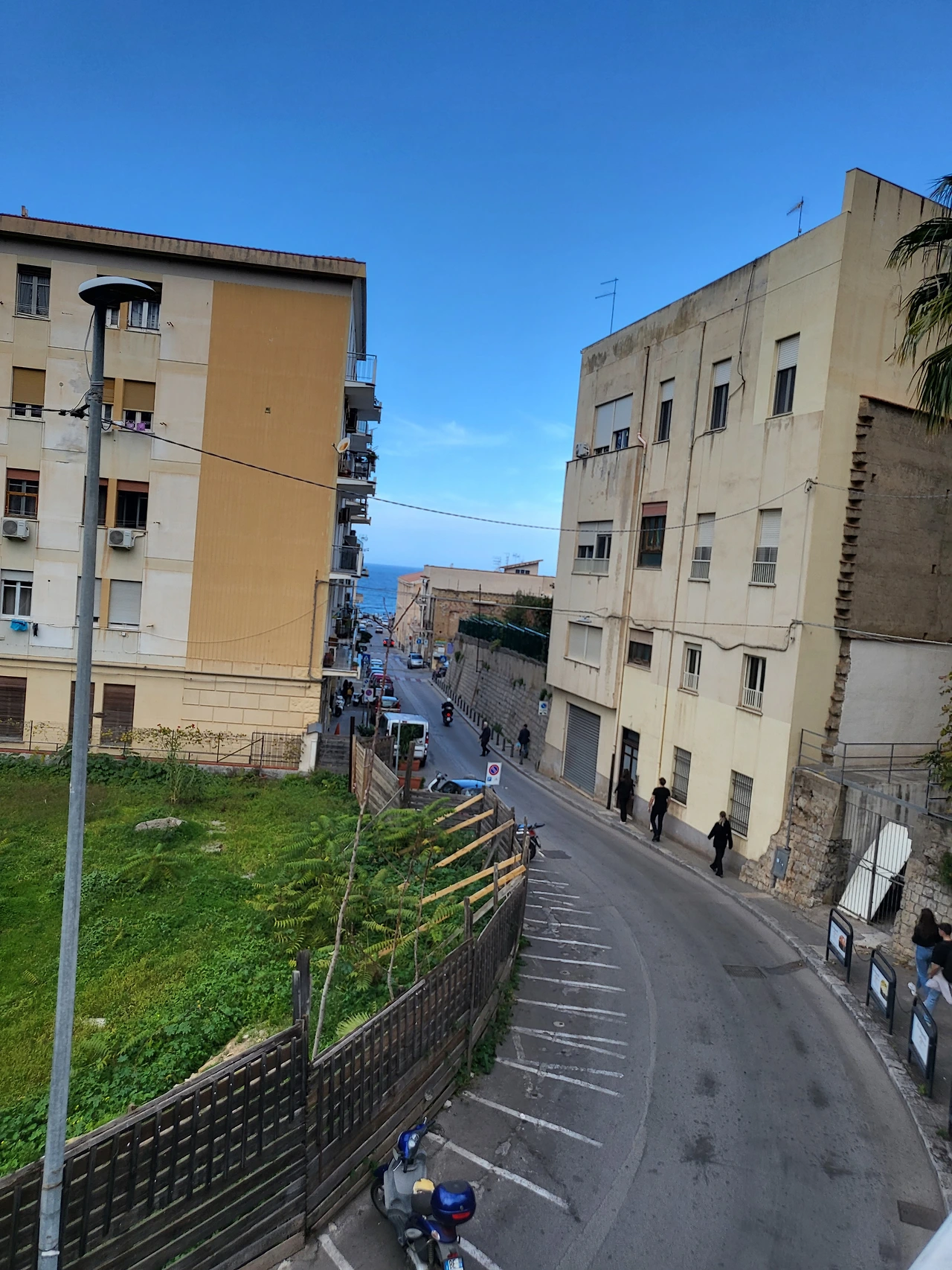 긴 비행시간이 끝나고 팔레르모에 도착했다. 숙소를 찾아왔을 때는 이미 밤이 깊어가고 있었다. 아직 주현절 전이라 이곳 사람들에게는 어쩌면 초저녁일지도 모르겠지만.숙소는 건물 꼭대기층에 위치한 아파트였다. 아마 5층이었던 것으로 기억하는데 우리나라 식으로는 6층이었던 듯하다. 비행시간에 지쳤던 것인지 숙소에서 기분 좋게 잠자리에 들었고 다음날 아침에 일찍 눈을 떴다. 방에서 거실 겸 부엌으로 가는 통로의 창문 너머로 팔레르모의 아침이 시작되는 모습을 볼 수 있었다. 다행히 푸른 하늘이 조금은 있는 것으로 보아 비는 올 것 같지 않다.
