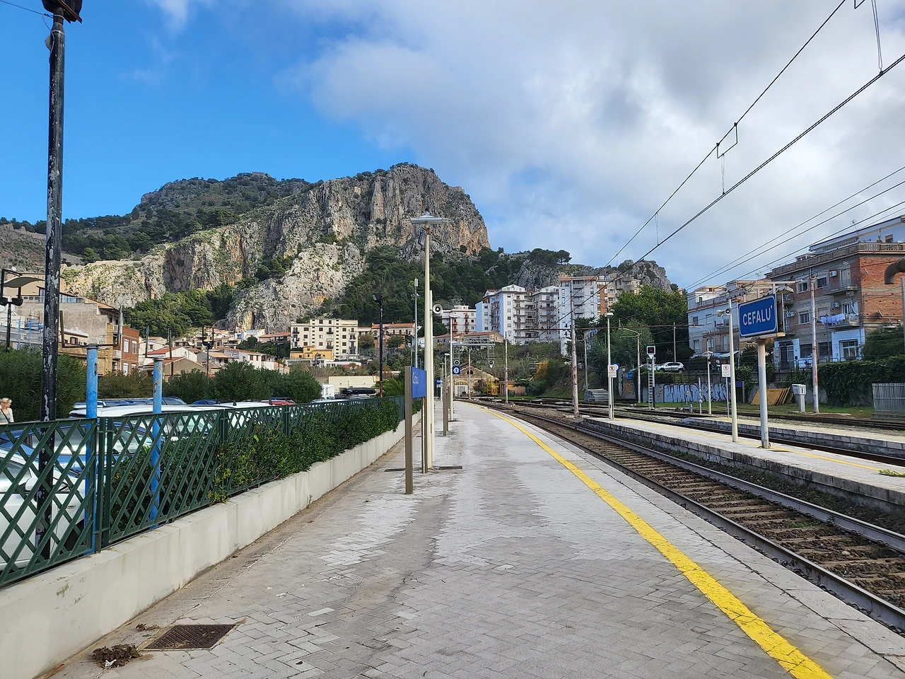 다시 기차역으로 돌아왔다. 이제 체팔루행 기차를 탄다. 체팔루행 기차를 탈 때는 반드시 진행 방향의 왼쪽에 앉아야 바다를 보며 갈 수 있다. 그것을 깜박하고 오른쪽에 앉았는데 오른쪽의 풍경도 나쁘지는 않았지만, 그래도 푸른 티레니아 해-시칠리아 북부 지중해-를 바라보며 가는 것이 더 낭만적일 것이다.체팔루까지는 약 한 시간 정도 걸린다. 기차 진행 방향 쪽에 우뚝 솟은 산 라 로카. 저곳을 먼저 올라가야 했었는데, 아무 생각 없이 바다에 끌렸던 탓에 라 로카는 다음을 기약하게 되었다.