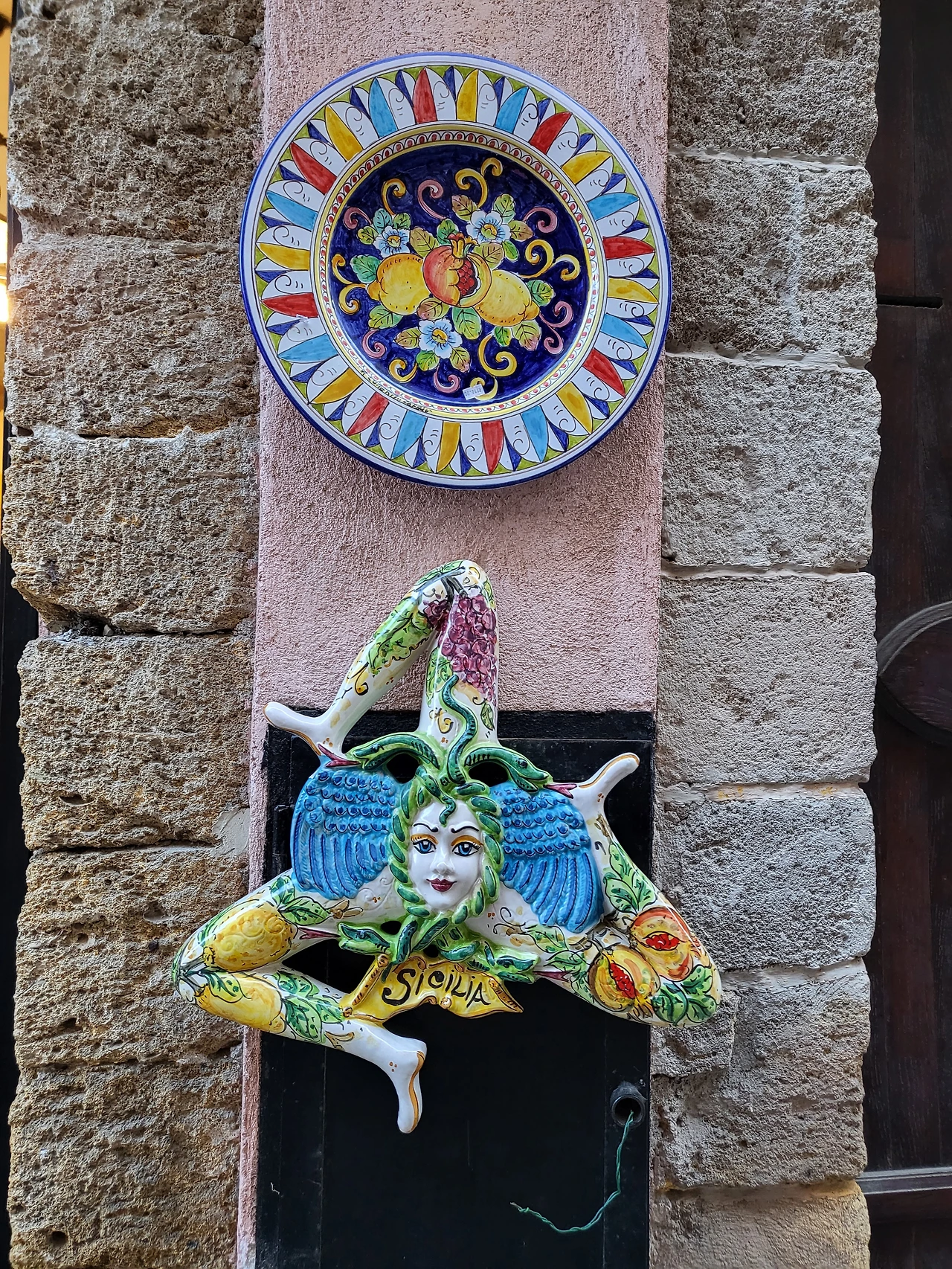 가는 길의 어느 기념품 가게에서 시칠리아를 상징하는 트리나크리아를 보게 되었다. 여자의 머리에 세 개의 다리가 있는, 어찌 보면 기괴해 보이기도 하다. 트리나크리아 가운데의 여자는 메두사. 왜 그녀가 이 상징에 들어가게 되었는지는 정확하게 알려진 바는 없다고 한다. 메두사가 영혼을 지배하는 괴물이라 여겼던 고대 그리스인들의 생각이었는지, 아니면 바다의 신 포세이돈과 사랑에 빠져 괴물로 변하게 된 메두사가 시칠리아를 지켜줄 것이라 생각했는지는 모르겠지만.