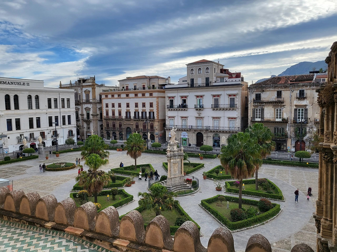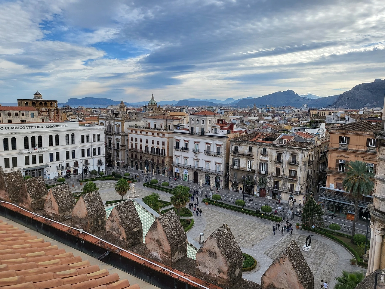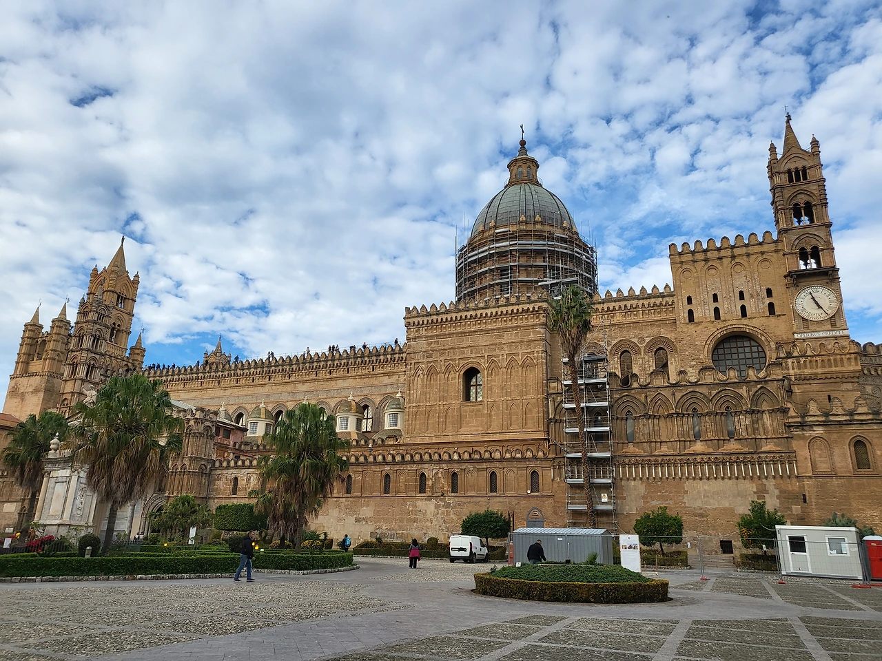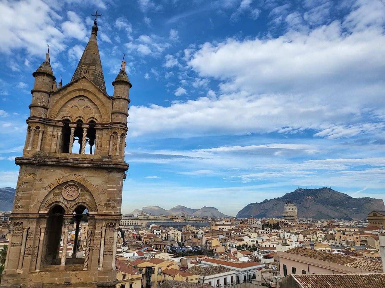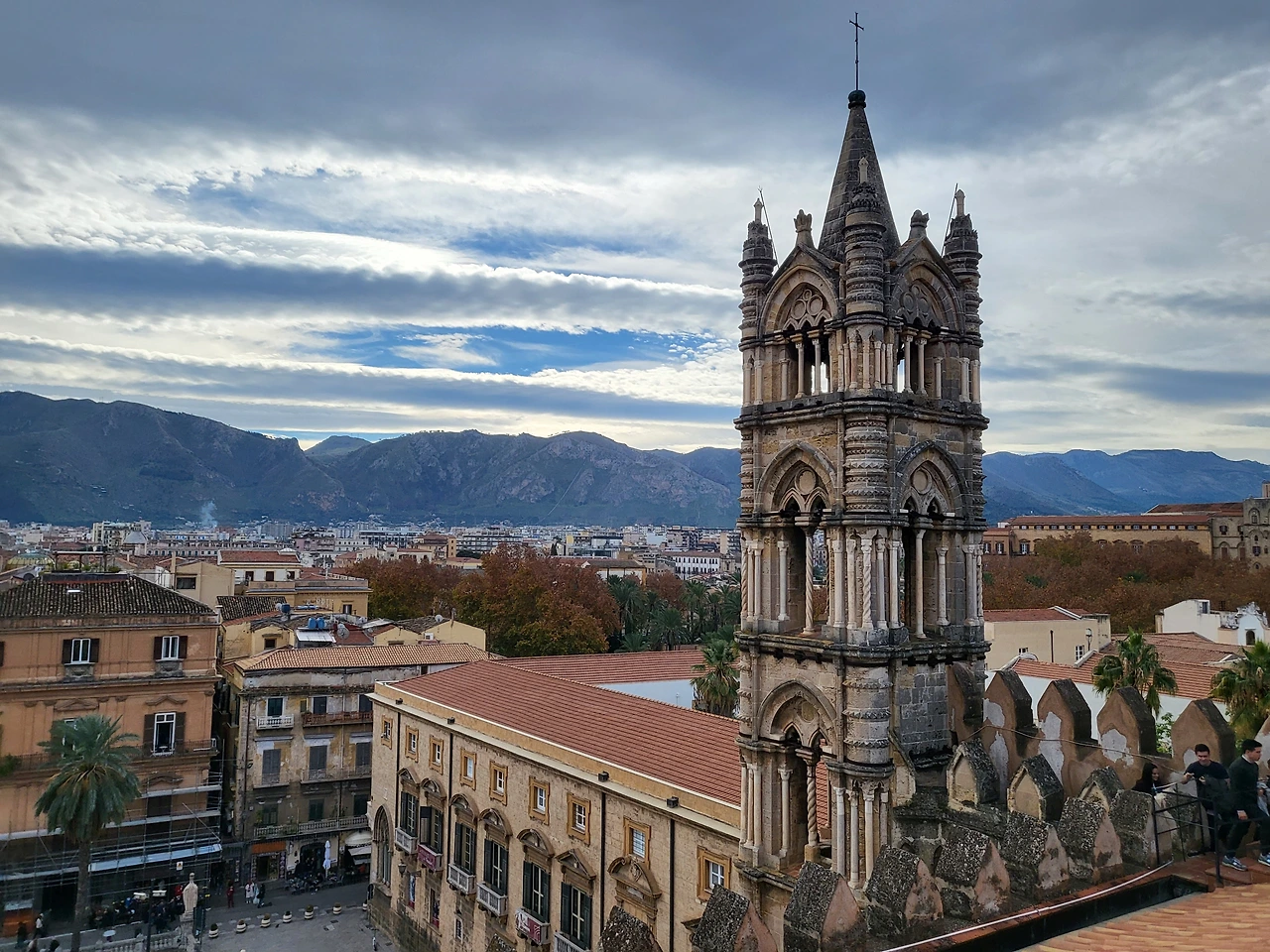 팔레르모 대성당은 독특한 양식을 지닌 성당이다. 약 600년에 걸쳐 지어진 건물이기에 다양한 건축 양식이 혼재한다. 비잔틴 양식으로 시작하여 바로크 양식과 고딕양식, 이슬람 양식까지도 존재하기에 건축 박물관이라 불리기도 한다. 대성당의 테라스에서 팔레르모 시내를 내려다보기 위해 티켓을 구매하여 테라스 쪽으로 올라간다. 지붕으로 올라가기 위한 계단은 한 명 정도만 지나갈 수 있기 때문에 안내인이 오르내리는 사람들을 질서 있게 통제하여 안전하게 지붕으로 올라갈 수 있다. 성당 지붕에 올라가면 팔레르모의 모습이 고스란히 내려다 보이고 그 장면 하나하나가 고풍스러우면서도 새롭다. 분명히 시칠리아는 현재 이탈리아에 속하지만, 과거에는 시칠리아 왕국 단독으로 존재했고 그만큼 부강했기에 본토와는 다른 새로운 느낌이 오히려 강했다.