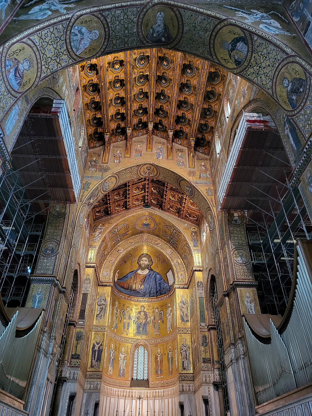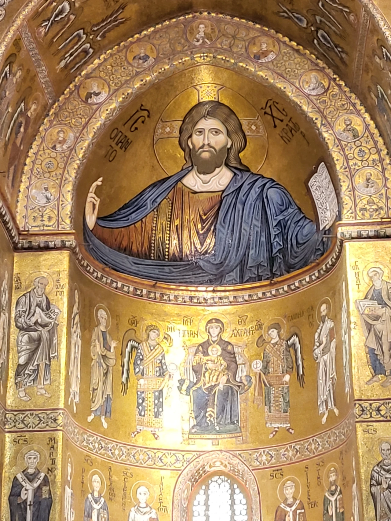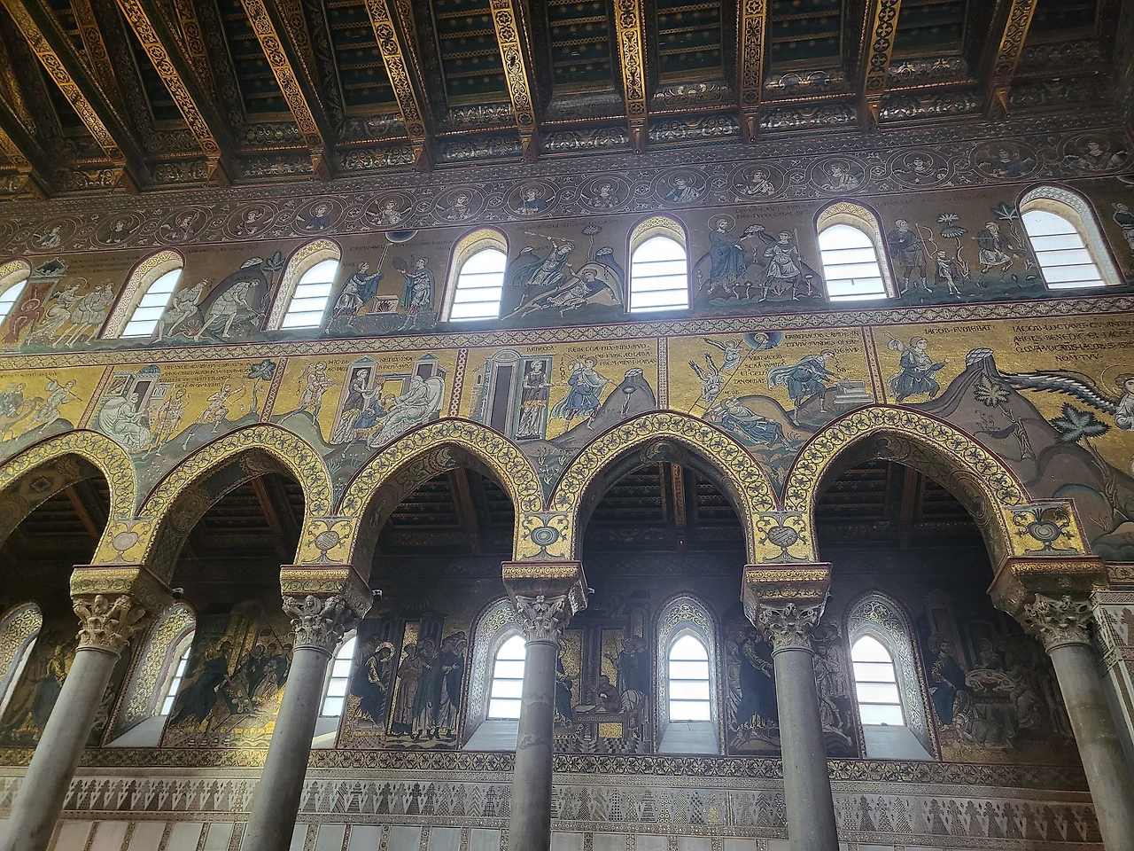 식사를 끝내고 나니 성당 입장 시간이 다 되었다. 몬레알레 대성당은 측면으로 난 문으로 입장하며, 모자이크화를 보고 본당만 둘러볼 경우 무료이다. 측면 문으로 입장하면 높은 천장에 화려한 황금빛 모자이크화가 빛을 발한다. 성당 중앙을 장식하는 예수 그리스도 모자이크화는 '그리스도 판토크라토르(Christ Pantokrator, 전능하신 그리스도)'라 불린다.
