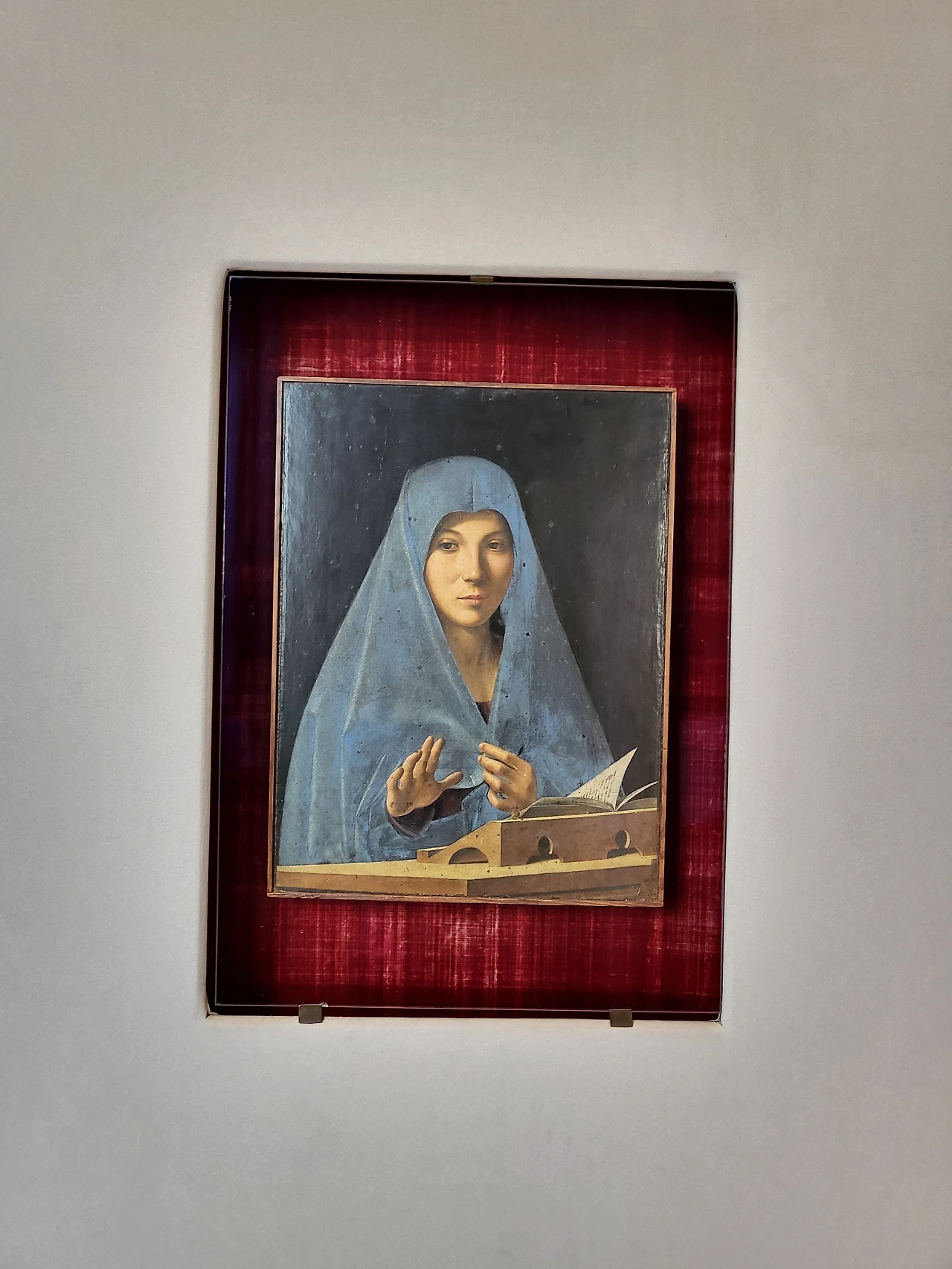팔레르모에서 사흘째 아침이 밝았다. 오늘은 도심에서 조금 떨어진 아바텔리스 궁전(Palazzo Abatellis)으로 간다. 시칠리아 주립 미술관으로 운영되는 이곳에는 유명한 그림이 있다. 시칠리아 메시나 출신 화가 안토넬로 다 메시나의 <수태고지(1475)>가 바로 그 작품인데, 이 그림의 '수태고지'의 도상이라고는 여인이 머리에 두르고 어깨를 가린 푸른 베일과 그녀의 앞에 놓인 성경 밖에 없다. 성모의 순결을 말해주는 백합도, 그녀의 성스러운 잉태를 알려주는 가브리엘 천사도 없다. 캄캄한 방의 어느 곳에서도 책장을 일으킬 바람은 없는데 그녀의 책장이 바람에 날리고 있다. 그 흔들림은 그녀로 하여금 옷깃을 바로잡고 시선을 성경에서 앞으로 돌리게 만들었던 모양이다. 아마도 그녀의 책장을 넘긴 것이 가브리엘 천사의 현현(顯現)이었는지도 모른다. 그녀의 모호한 표정은 신비로운 느낌을 담고 있어서 '시칠리아의 모나리자'라 불리는 모양이다.