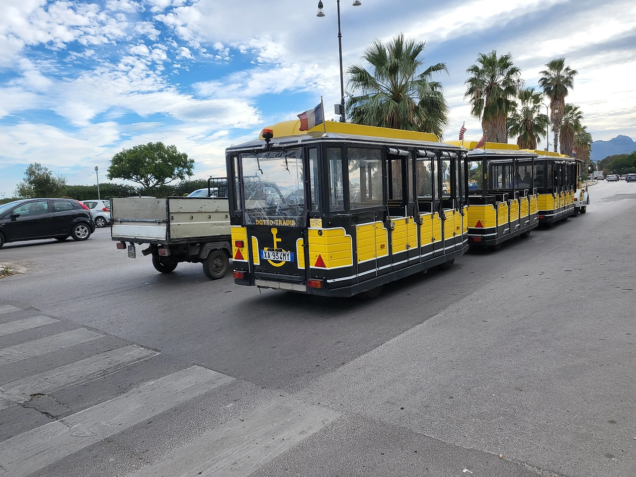 아바텔리스 궁전은 팔레르모 항구에 가깝다. 항구 쪽으로 나오면 넓은 길이 보이고 그 너머로 정박한 배들도 보인다. 시간이 한정된 여행자들을 위해 팔레르모 시내를 훑어볼 수 있는 꼬마기차가 천천히 달리고 있었다. 오히려 저것을 타고 팔레르모 시내를 둘러보는 것이 좋지 않았을까 하는 생각이 잠깐 들었다. 구름이 살짝 낀 하늘 아래 꼬마 기차는 귀엽게 달리고 있었다.