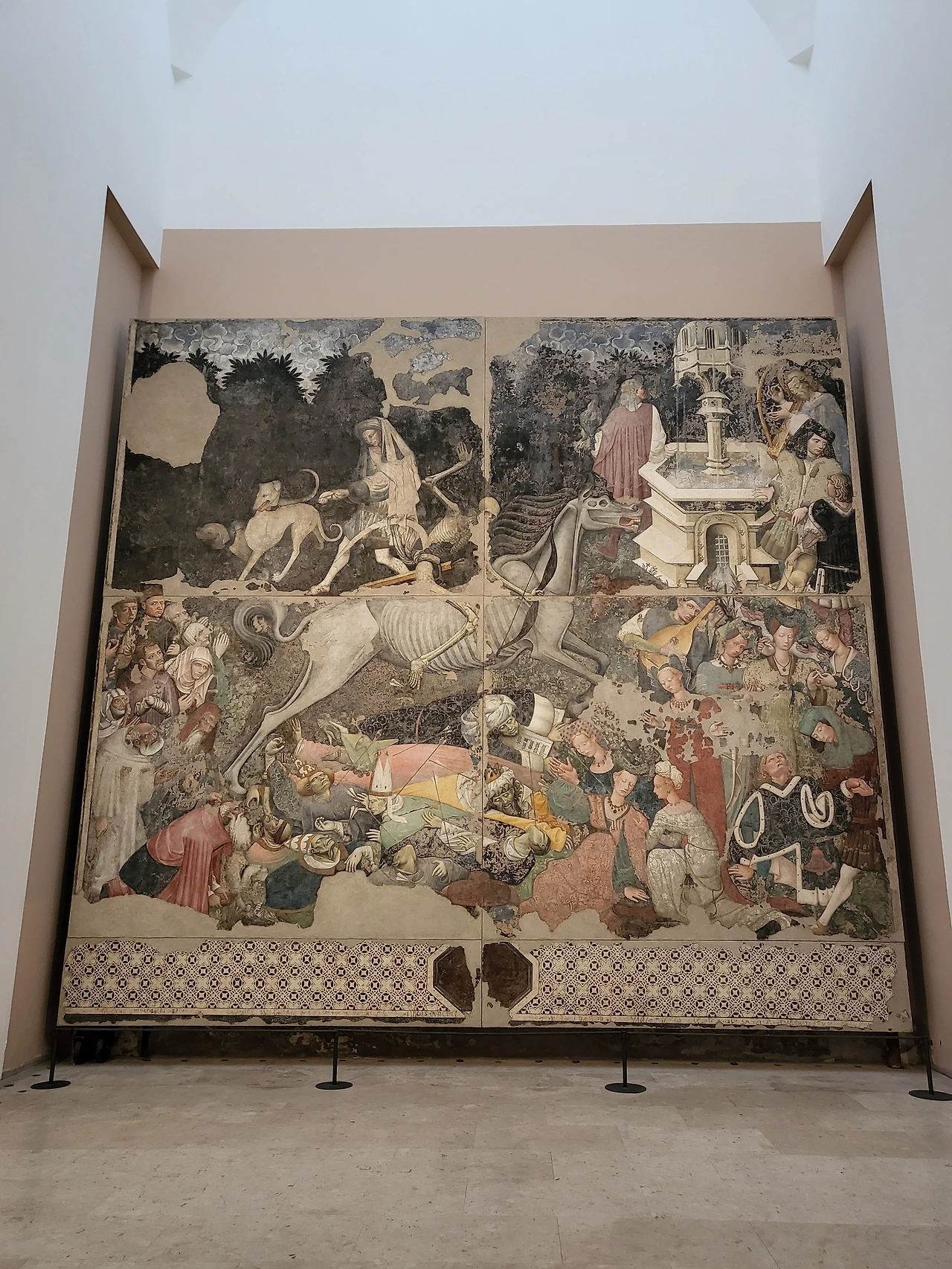 작자 미상의 <죽음의 승리(1450년 경)>는 병원 예배당 벽면 전체를 덮고 있던 작품으로 말을 탄 해골로 묘사된 '죽음'이 가난한 자들은 살려주고 부패한 성직자와 부자들을 죽음으로 단죄하는, 지극히 계시록적인 내용을 담아낸 그림으로 알려져 있다고 한다.