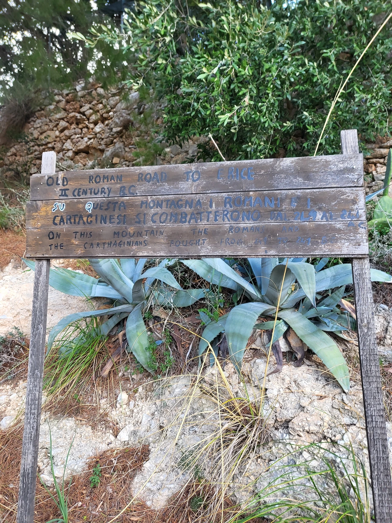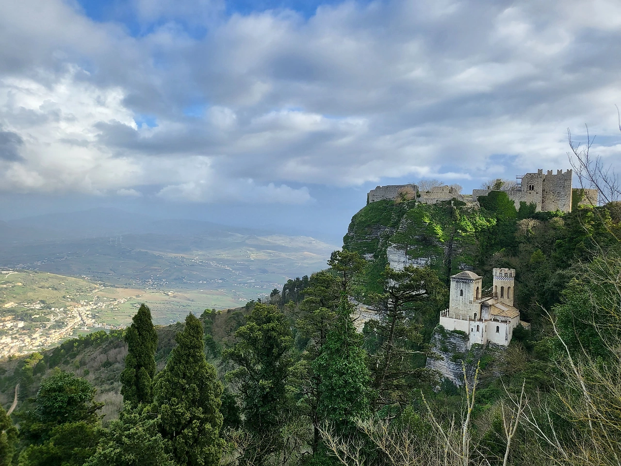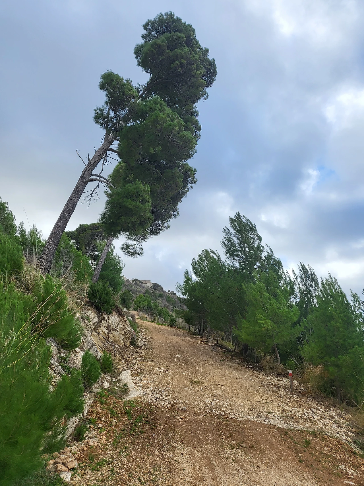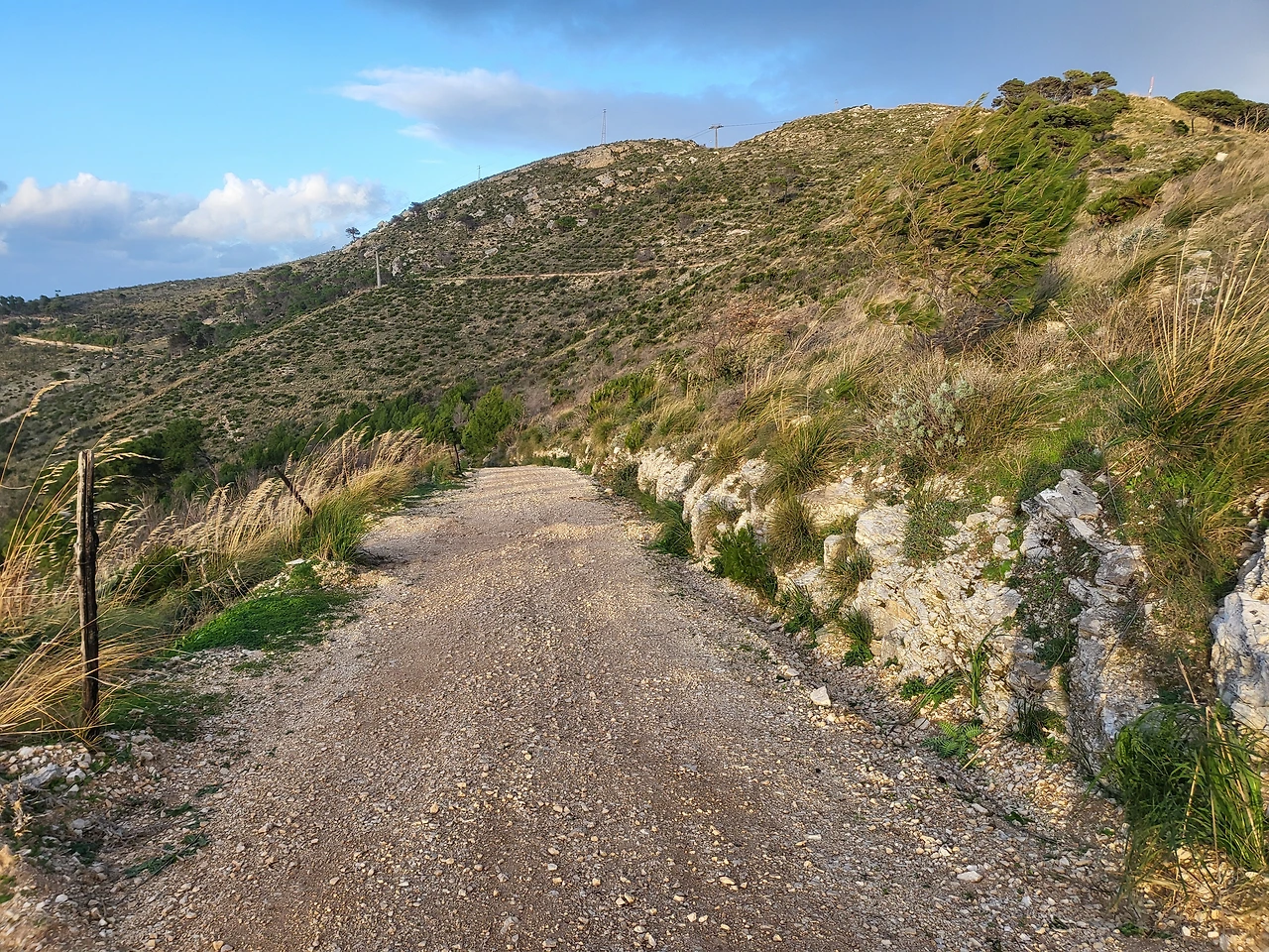 그런데 역까지 걸어가면서 드는 생각은, 오늘은 케이블카 운행을 하지 않겠다는 것이었다. 바람이 엄청나다. 게다가 오늘은 주현절이자 토요일이라 버스도 드문드문 있을 것이었다. 그래도 포기하지 않고 도착한 케이블카 역. 왜 슬픈 예감은 틀린 적이 없나...... 케이블카 운행 중단은 현실이었다. 이제 다음 방안을 생각해야 하는데, 택시를 타고 오르자니 가격이 만만치 않았다. 그렇다면 가장 믿을 만한 것은 만만한 두 다리. 걸어서 에리체까지는 두 시간 여의 산행이 필요하다. 신발을 고쳐 신고 에리체로 가는 산길을 택했다. 무모한 도전이었을지는 모르겠지만. 길은 그다지 험하지는 않은 산길이었다. 등뒤에서 불어오는 엄청난 바람 탓에 오르는 것은 내 의지에 더해 나머지는 바람이 대신해 주었다. 산길은 에리체로 가는 고대 로마의 길. 그 옛길을 따라 순례자처럼 타박타박 산을 오르는 동안, 등 뒤로는 트라파니의 모습이 점점 더 낮아지며 멀어지고 있었다.