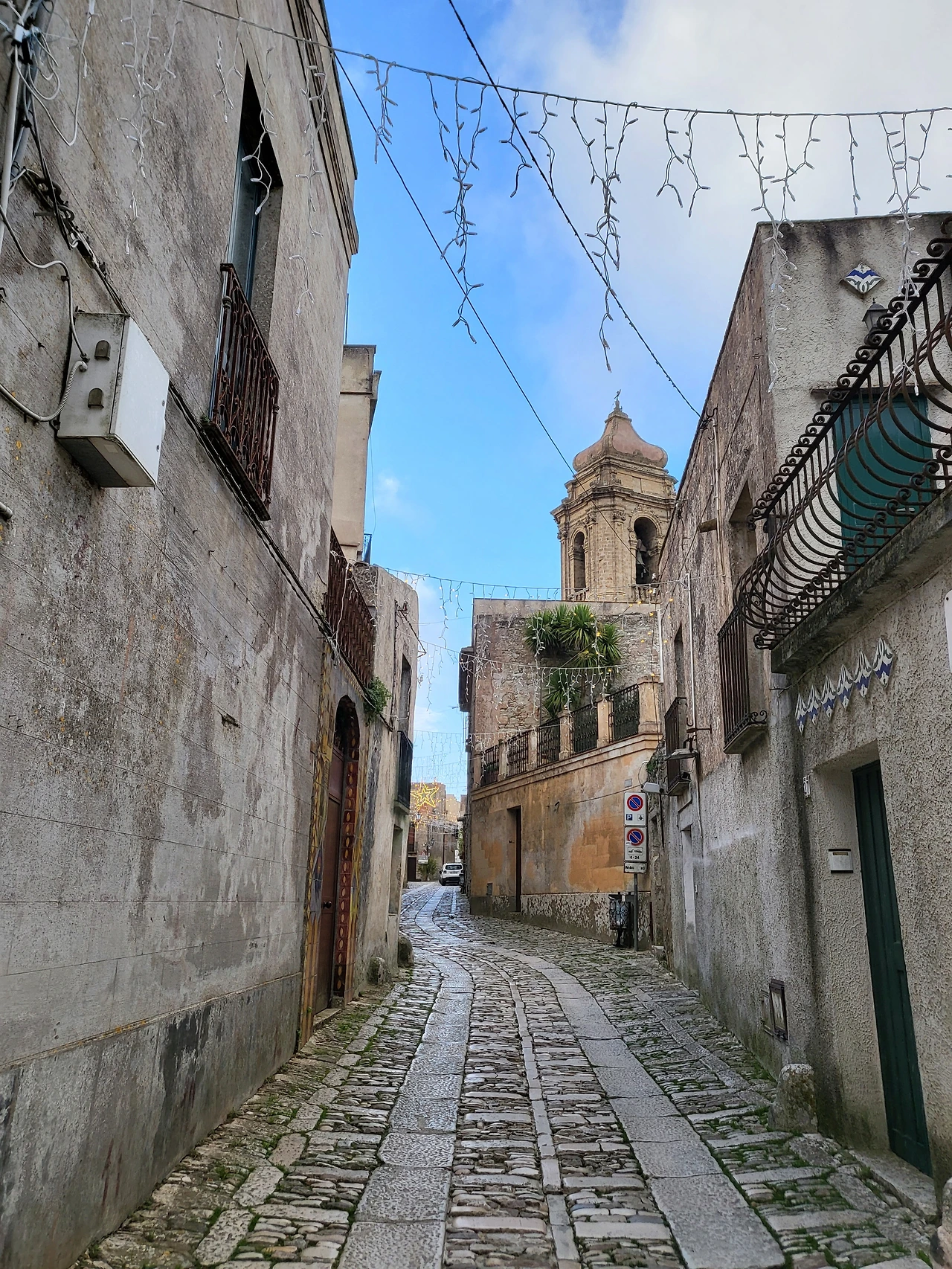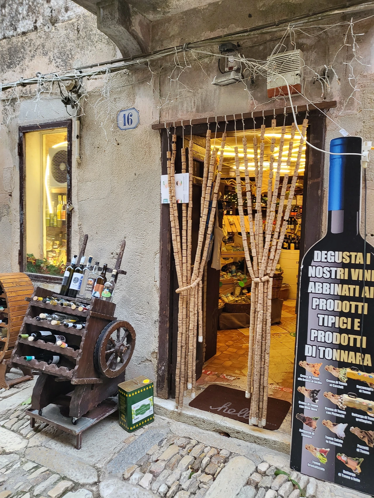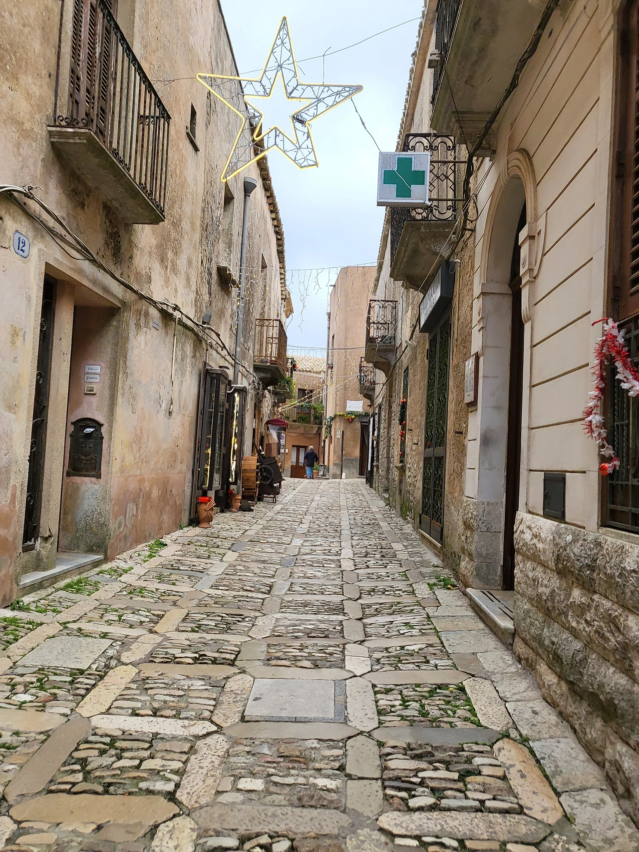 에리체의 골목길은 다정하다. 포석이 깔린 고요한 골목길을 헤매다 보면 광장이 나오고 이제 장식이 다 떼어내진 크리스마스트리가 보이기도 한다. 열려있는 기념품 가게에서 기념품을 보기도 하고 가게 안 고양이들을 쓰다듬어 주기도 하면서 천천히 에리체의 골목길을 즐겨본다. 와인 코르크로 예쁘게 발을 만들어 쳐 놓은 에노테카가 있는가 하면, 시칠리아에서 볼 수 있는 커다란 얼굴 화분을 비롯한 도자기 제품들까지 구석구석 볼거리들이 조심스레 얼굴을 내밀고 있었다.