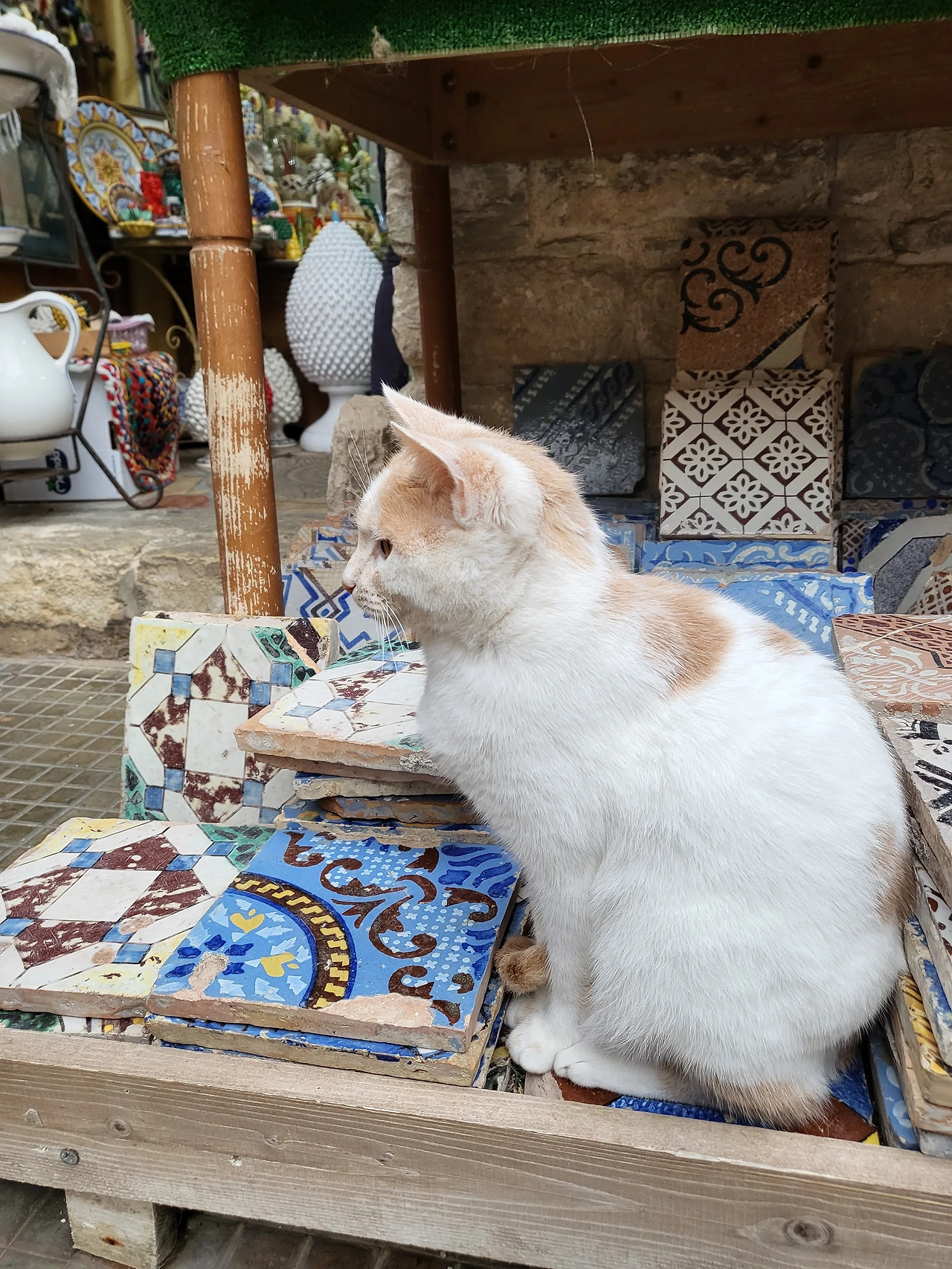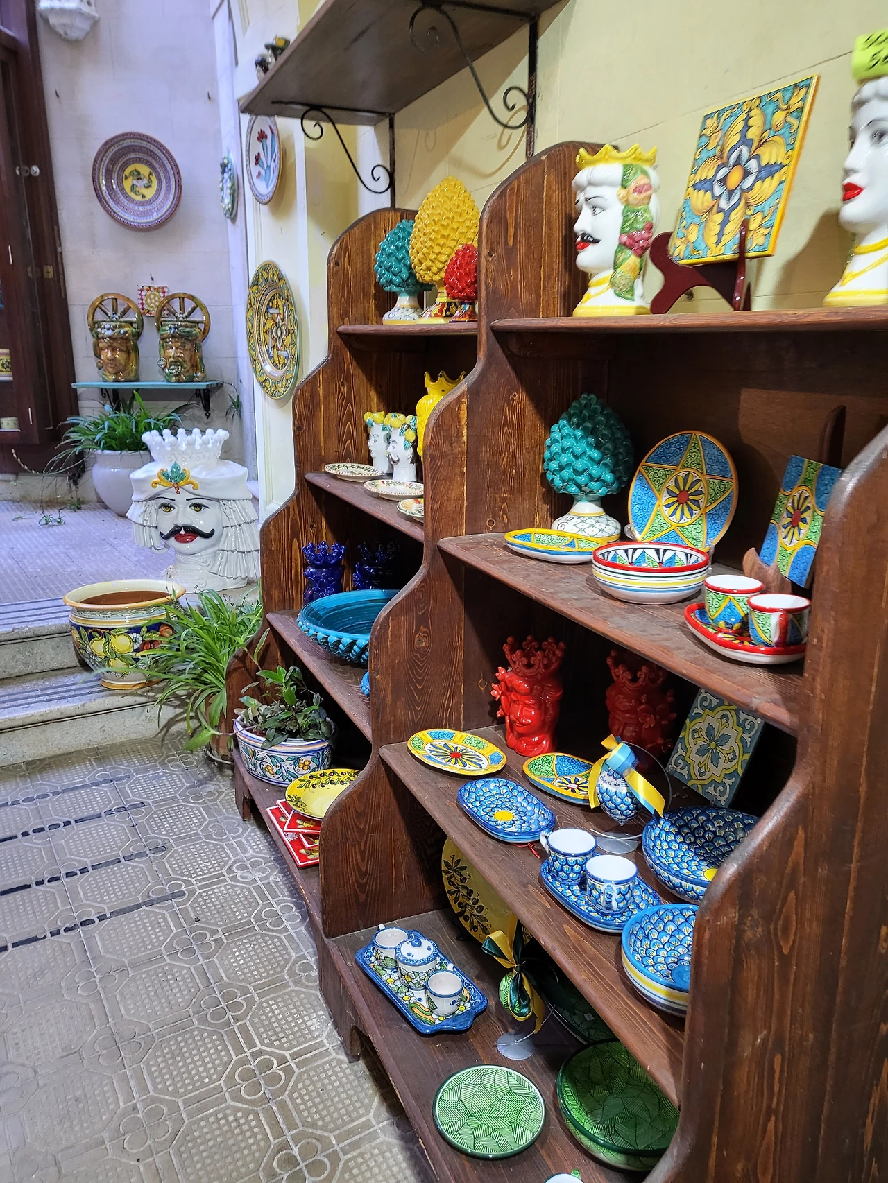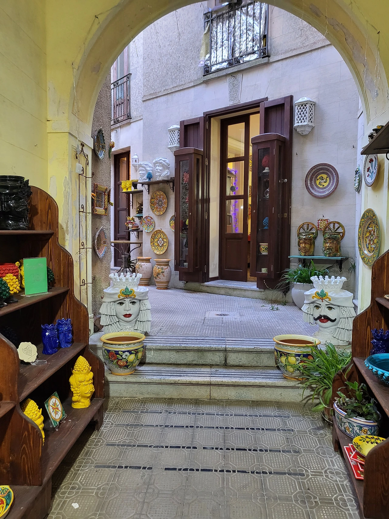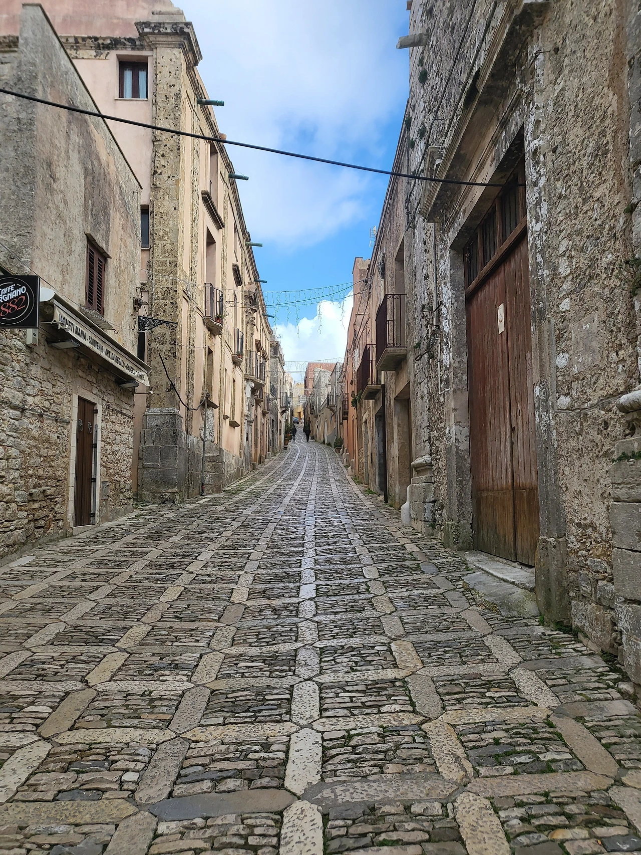 에리체의 골목길은 다정하다. 포석이 깔린 고요한 골목길을 헤매다 보면 광장이 나오고 이제 장식이 다 떼어내진 크리스마스트리가 보이기도 한다. 열려있는 기념품 가게에서 기념품을 보기도 하고 가게 안 고양이들을 쓰다듬어 주기도 하면서 천천히 에리체의 골목길을 즐겨본다. 와인 코르크로 예쁘게 발을 만들어 쳐 놓은 에노테카가 있는가 하면, 시칠리아에서 볼 수 있는 커다란 얼굴 화분을 비롯한 도자기 제품들까지 구석구석 볼거리들이 조심스레 얼굴을 내밀고 있었다.