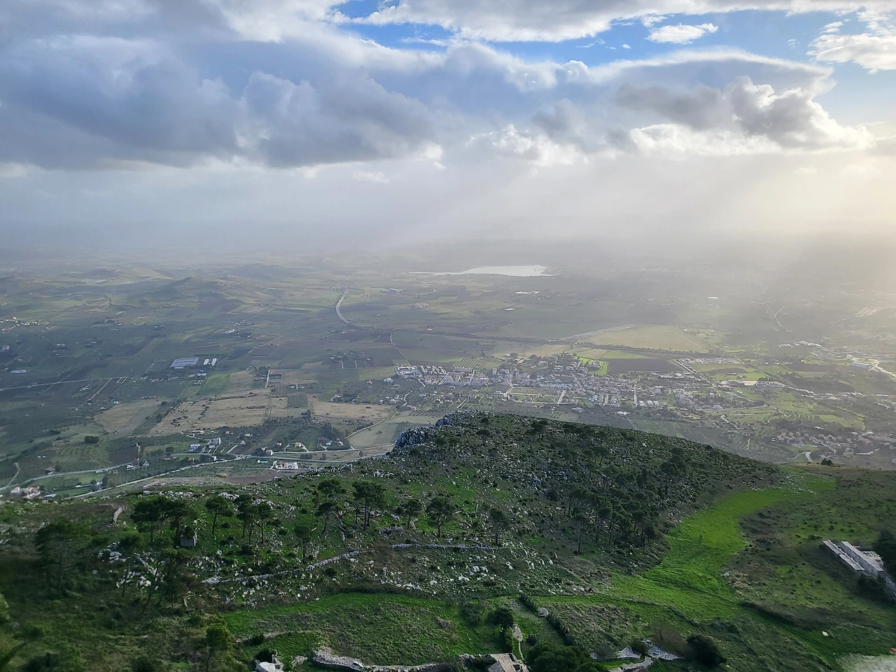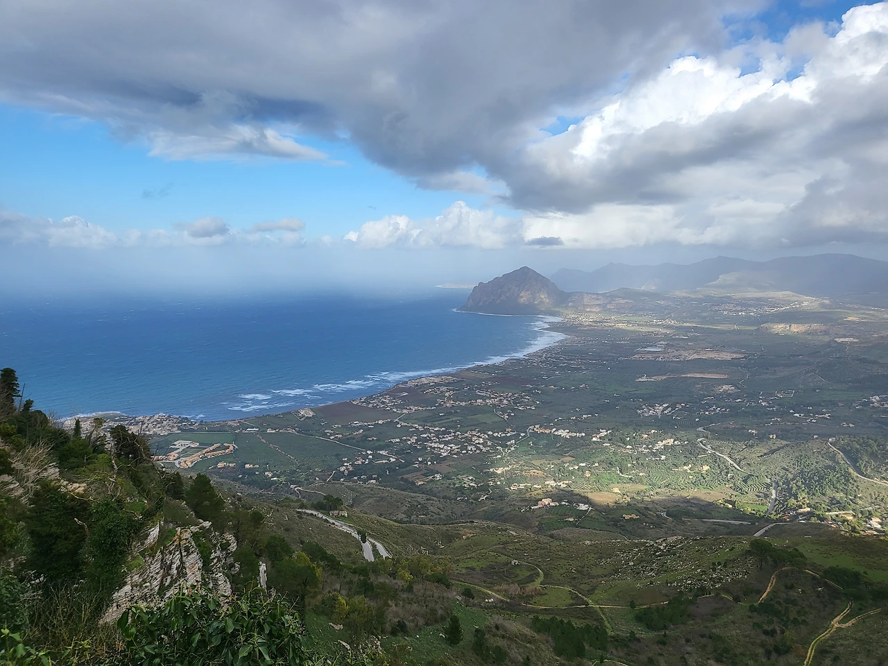 버스는 팔레르모를 떠나 트라파니로 향한다. 제주도의 14배나 되는, 지중해에서 제일 큰 섬 시칠리아는 지중해의 부엌, 신들의 식탁이라고 불린다. 아마도 그 비옥한 토지와 생산물로 인해 이 섬은 여러 세력의 침입을 받았던 것이 역사에 잘 드러나고 있다. 버스를 타고 가는 내내 푸른 들판이 끝없이 이어지고 멀리 바다도 보인다. 들판을 바라볼 때는 이곳이 섬이라는 생각이 들지 않는데 먼바다를 보면 섬이라는 실감이 난다. 버스는 트라파니 공항과 몇 개의 정류장을 지난다. 지나는 내내 비가 내렸다가 흐렸다가 해가 났다가 하는 변덕스러운 날씨가 계속되었다.