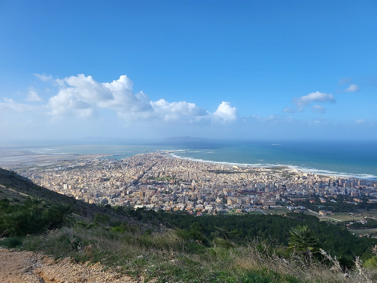 이제 산을 내려갈 일이 남았다. 내려가는 버스를 알아보니 거의 한 시간쯤 뒤에나 올 예정인데, 이 버스가 제시간에 올지 어떨지는 잘 모르는 일. 그래서 그냥 왔던 길로 되돌아 내려가기로 했다. 올라온 길을 내려가는 것이니 길을 잃어버릴 염려도 없고, 내려가는 길은 올라오는 길보다는 쉬운 편이니까. 올라올 때 등 뒤로 점점 더 멀어졌던 트라파니가 내려갈 때는 점점 가까워지고 선명해졌다. 산길이 끝나고 포장도로가 시작되니 오히려 마음은 편했다.