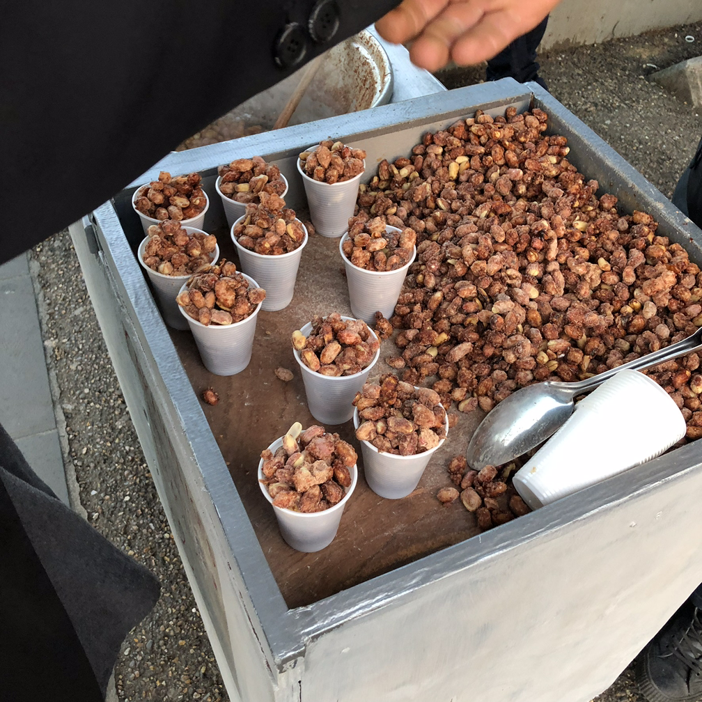 템즈 강을 따라 걷다 보면 어디선가 달콤한 향기가 나기 시작하는데, 이것은 바로 노점상들이 금속 철판 위에서 따뜻하게 구워내고 있는 캐러멜 땅콩의 냄새다.