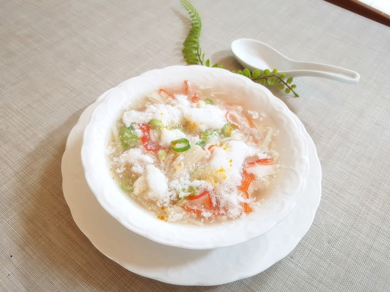 마음이 붕 뜨고 불안해지는 날엔 집에서 게살 대신 게맛살을 찢어 게살수프를 만든다.