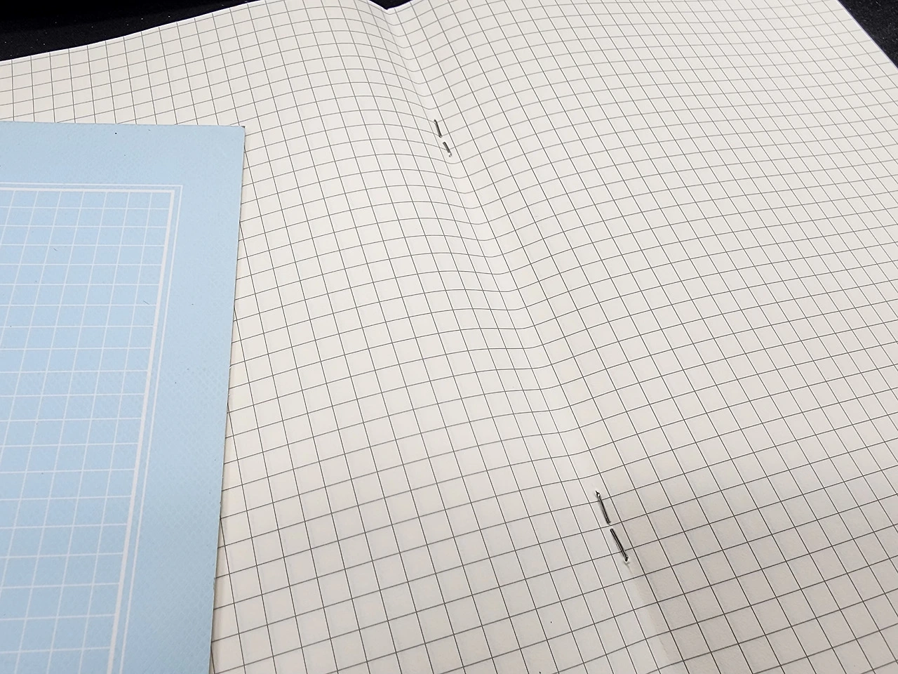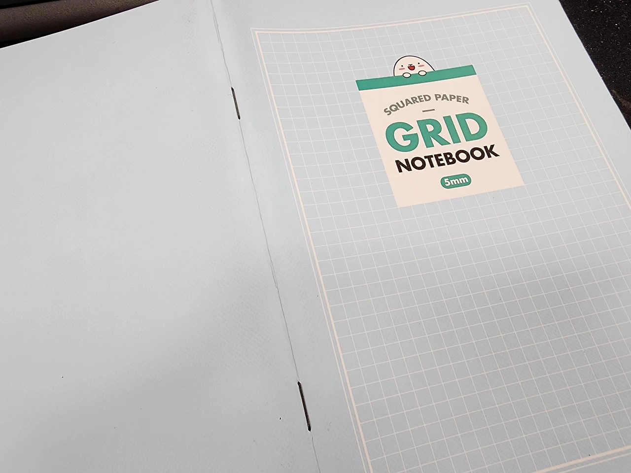 중철제본이 되어있는 노트_ 왼쪽이 표지면, 오른쪽이 내지