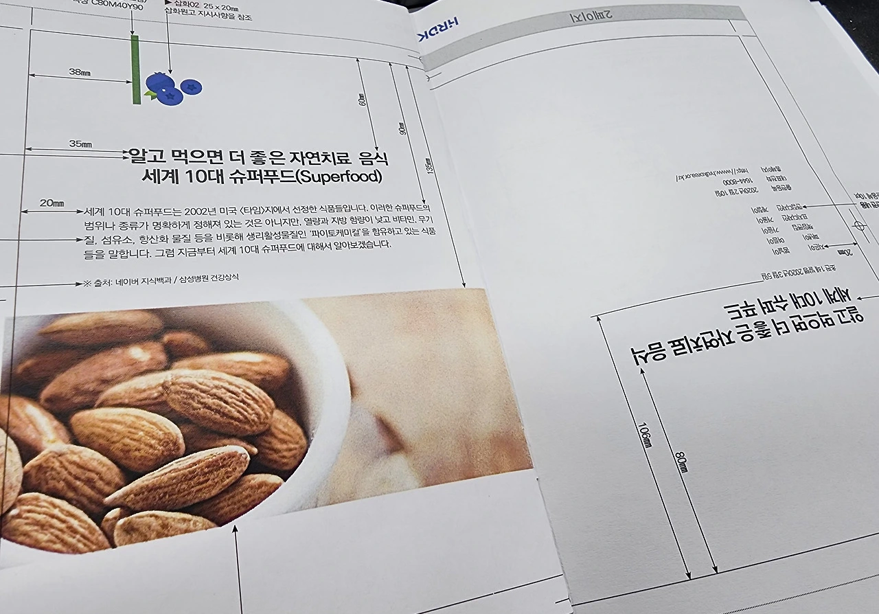 ★양면출력을 설정했는데 위아래가 뒤집혀 나올 경우가 있다. 이렇게 출력된 A3용지를 중철제본하면 아래 사진처럼 왼쪽은 정상, 오른쪽은 페이지가 뒤집히게 된다. 이것도 실격! 하지만 이 경우에는 기회가 한번 더 있다. 실기시험 시 1인당 A3용지 4매가 지급되기 때문이다.