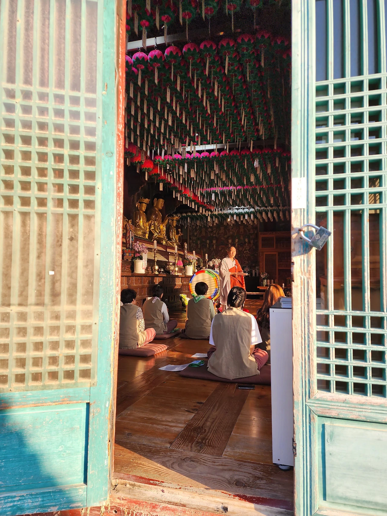 목어와 범종 법고, 그리고 처음 보았던 운판. 이 모든 것이 갑사의 범종각 위에 자리 잡고 있었다. 그간 관계자 외 출입금지 은빛 쇠줄이 나를 가로막았었는데 어제는 발을 들일 수 있었다. 살포시 범종을 쳐보고, 꿀밤을 때려 범고도 울려보았다. 범종의 울림은 은은하게 오래도록 지속되었고, 법고의 소리는 약한 꿀밤에 웅장한 파동으로 화답했다. 범종각의 오색찬란한 지붕아래 서서 나지막이 기도를 드리며, 범종과 법고의 소리가 브런치 마을에도 평온함으로 울려 퍼지길 바라본다.