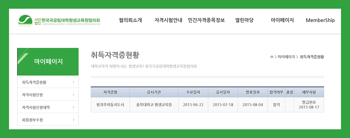 한국국공립대학평생교육원협의회_ 방과후아동지도사 자격취득_ 2015년